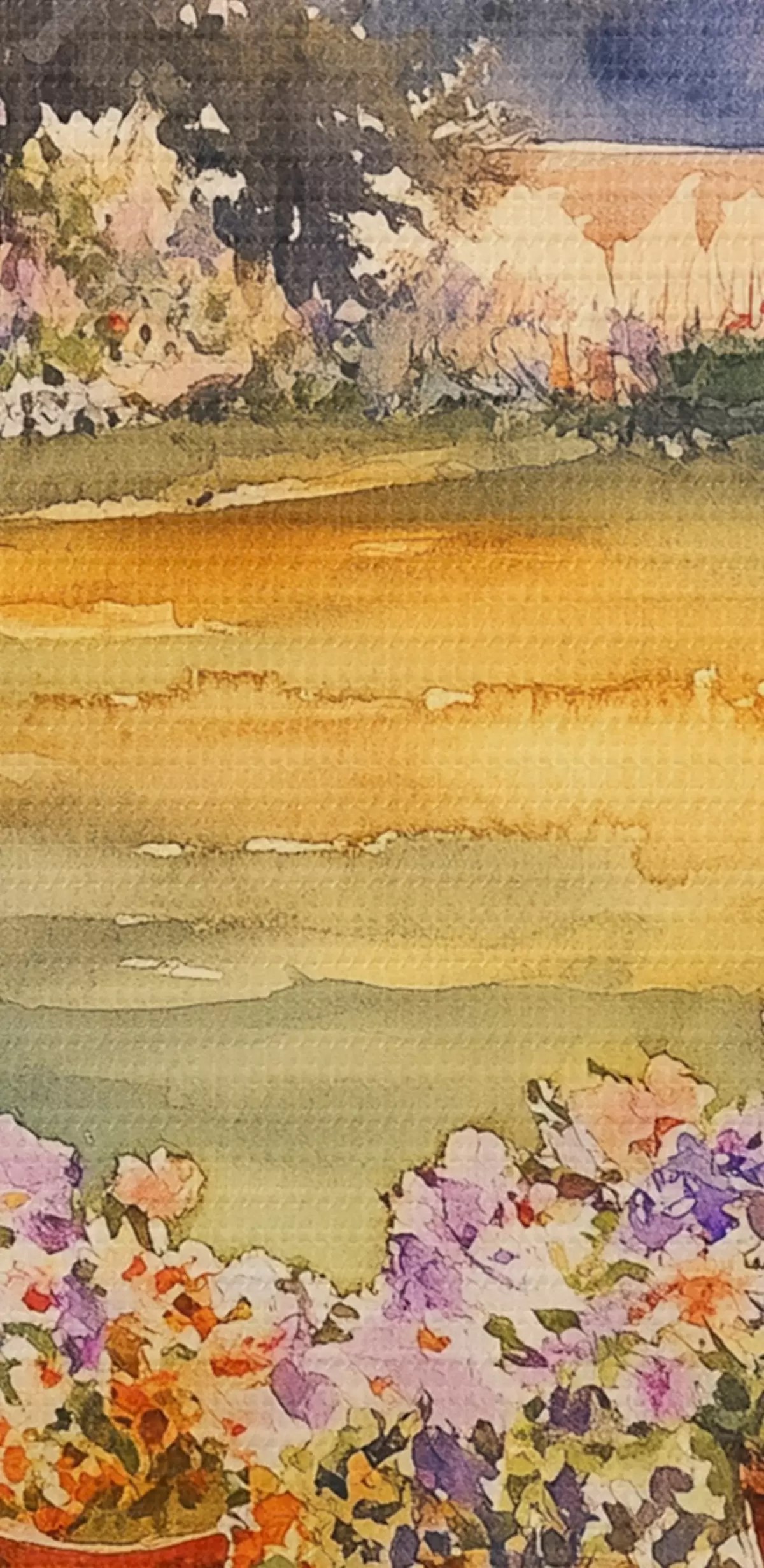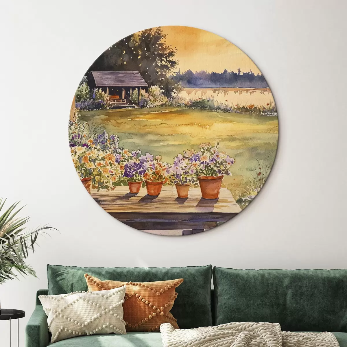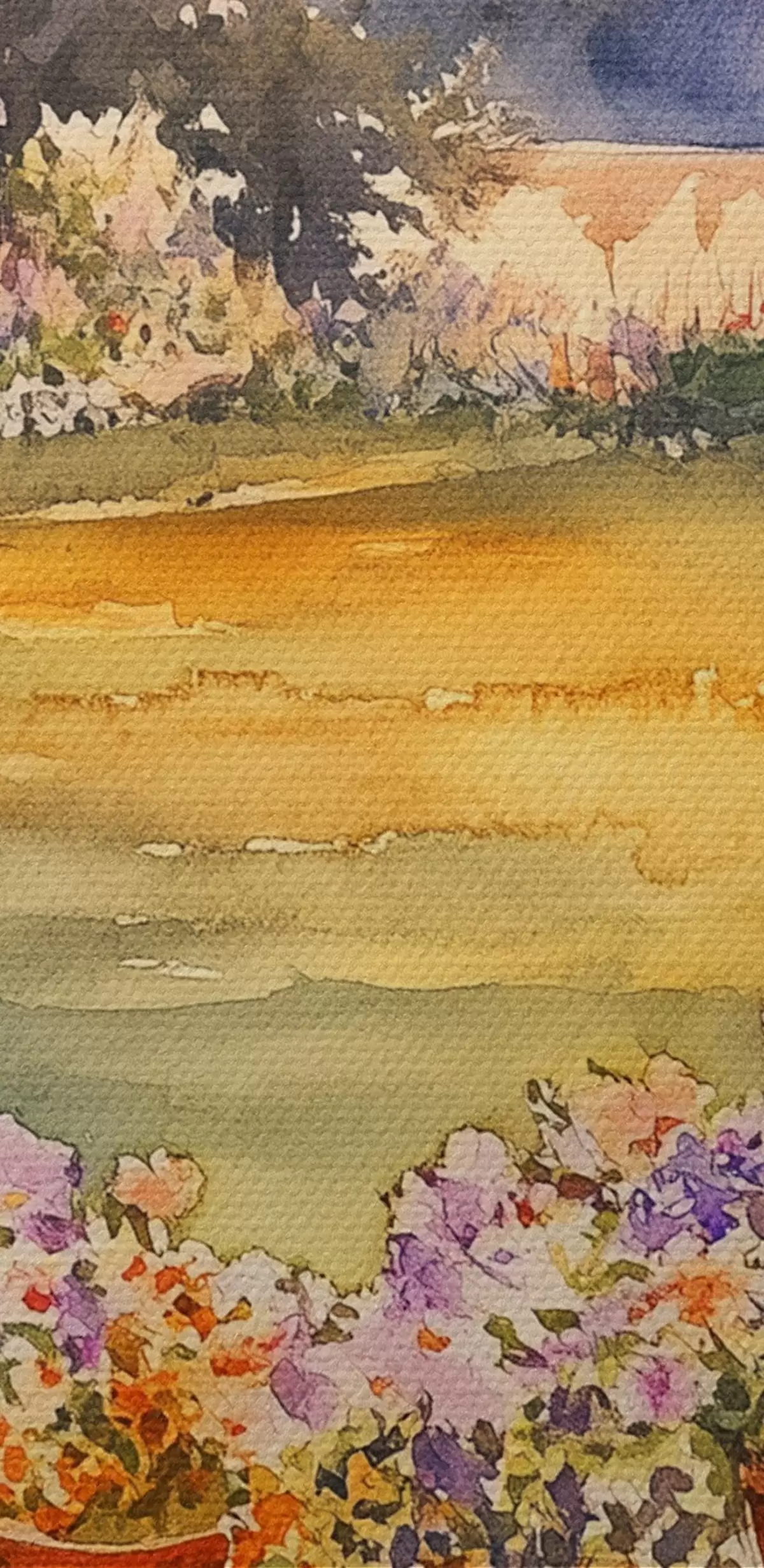 Nuotrauka Gėlės kaimo sode, saulėlydžio spalvos, akvarelės stilius Nr r44019