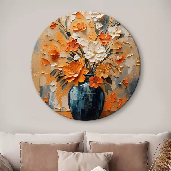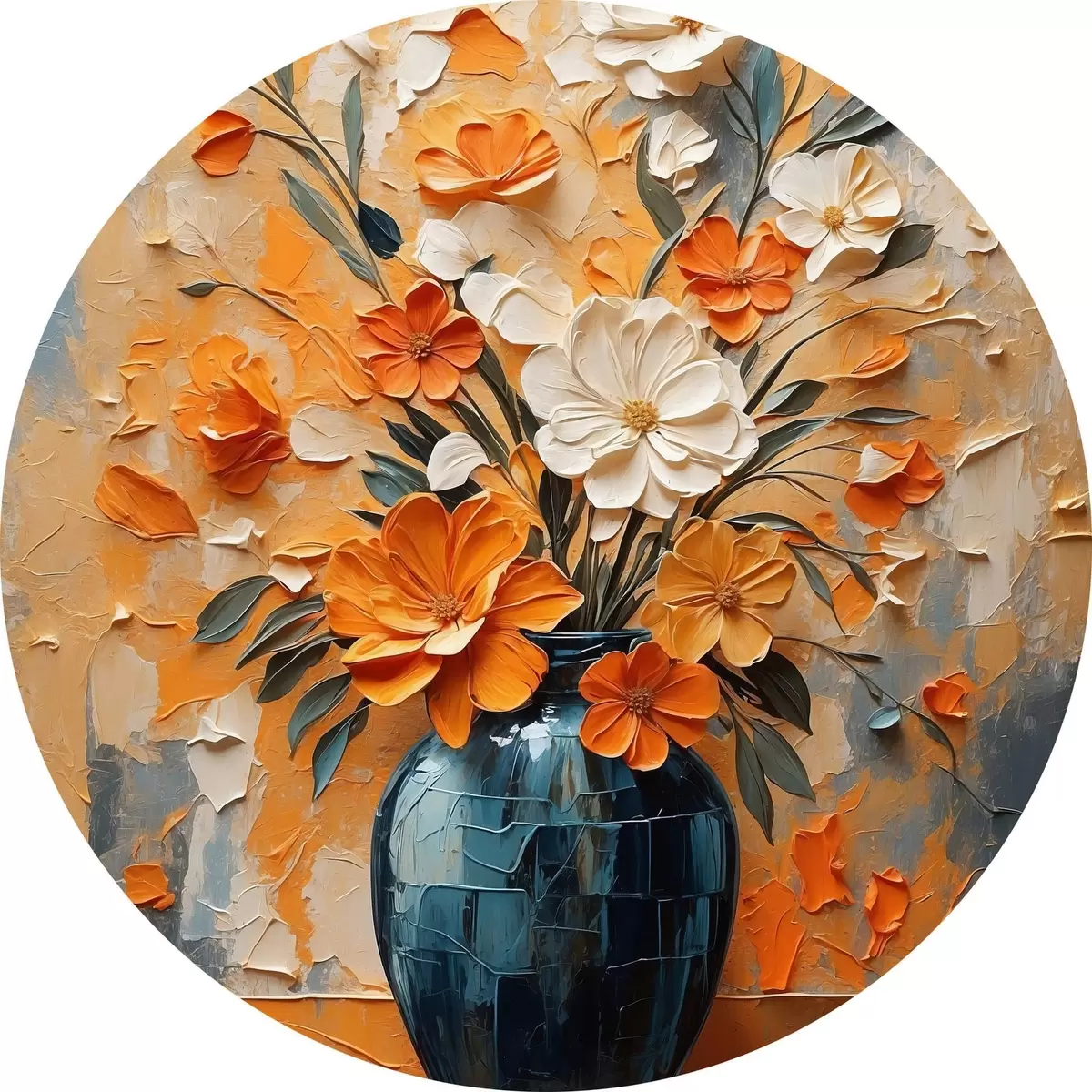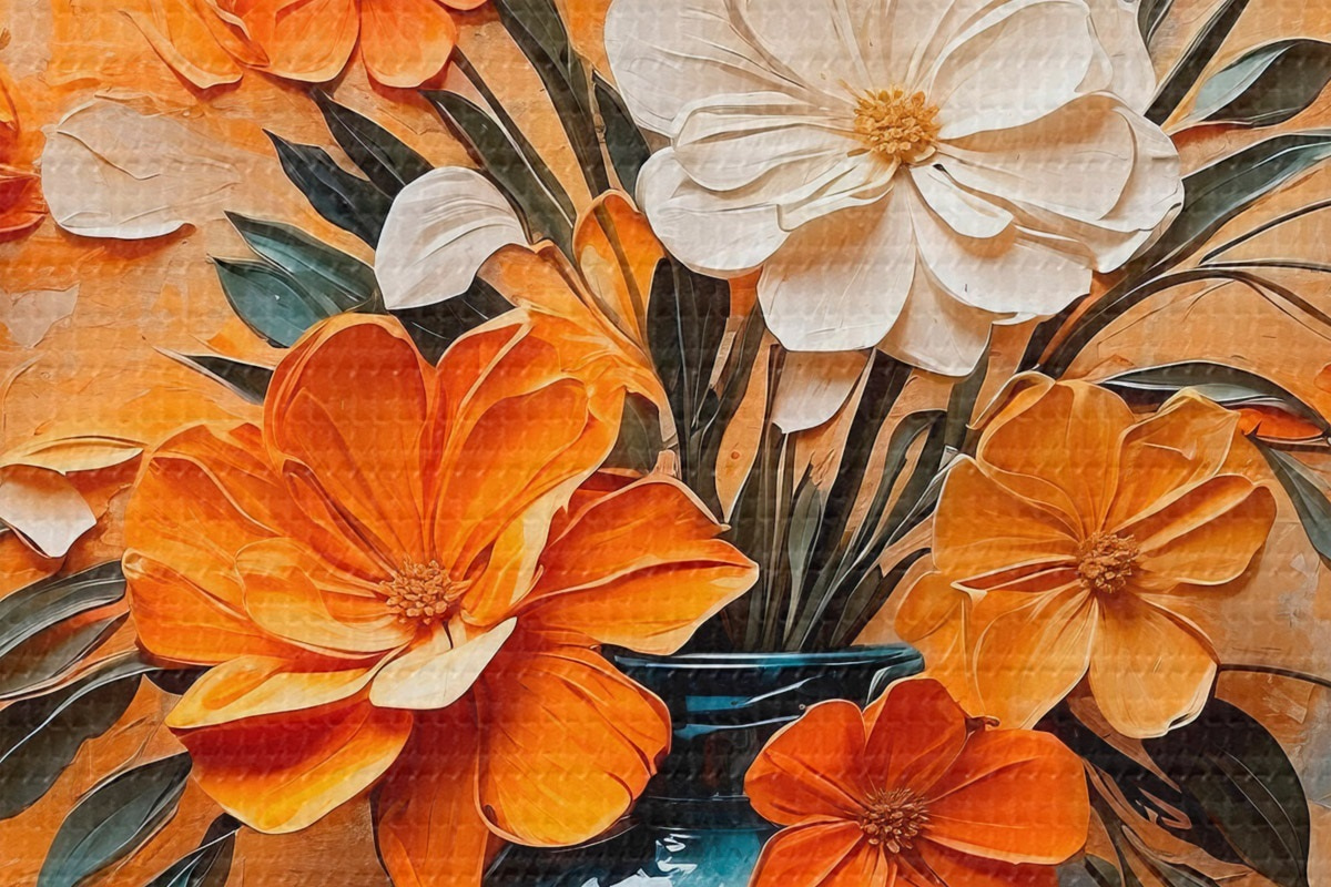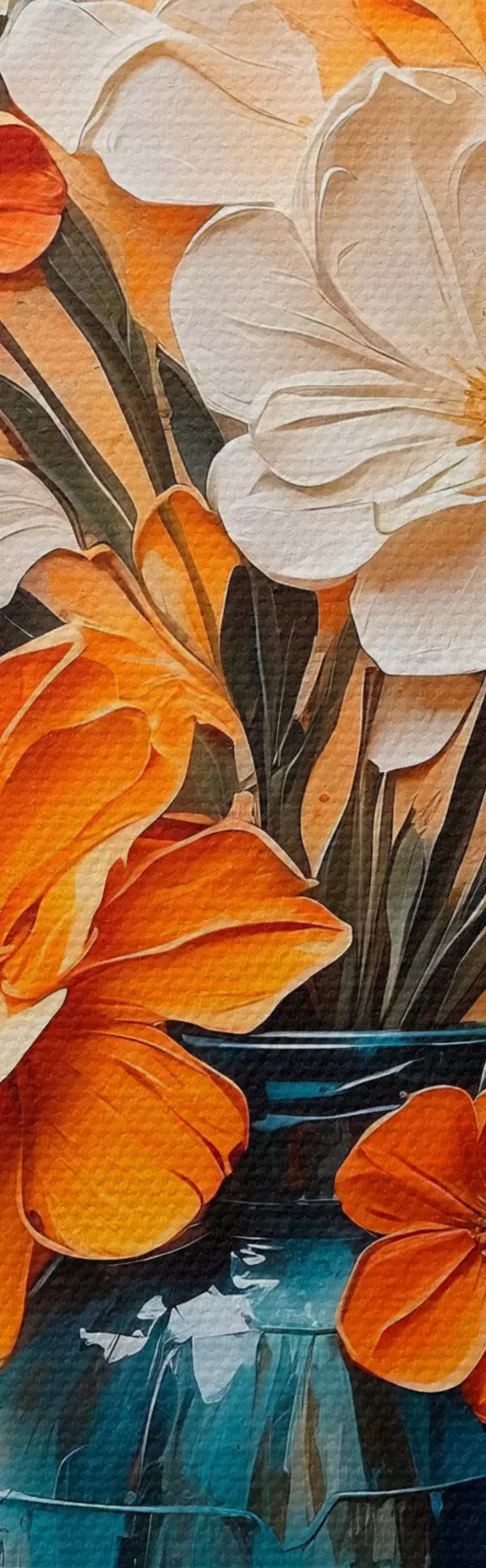 Nuotrauka Baltos ir oranžinės gėlės vazoje aliejinės tapybos stiliumi Nr r44059