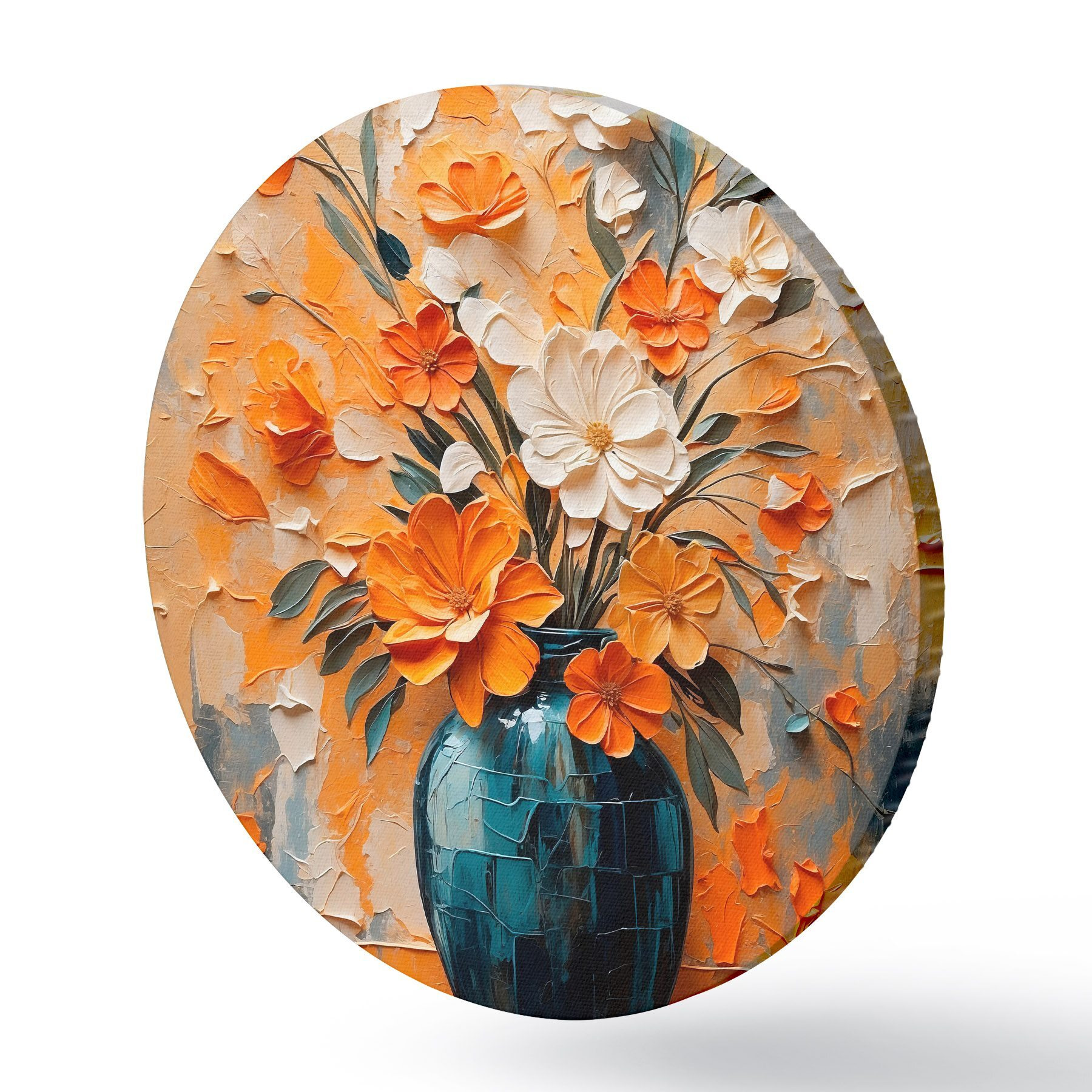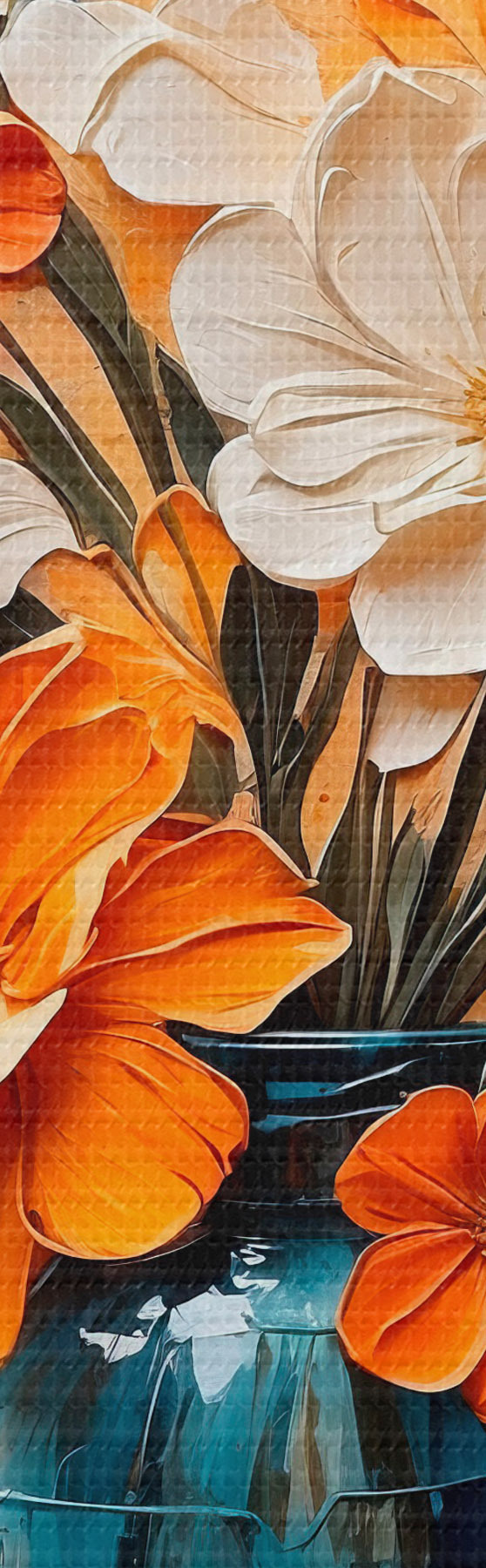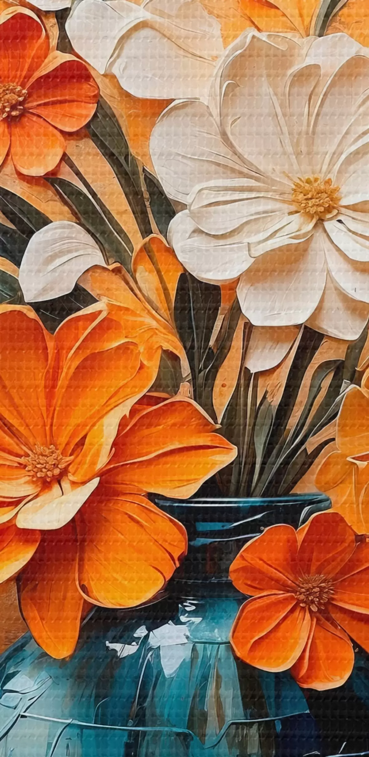 Nuotrauka Baltos ir oranžinės gėlės vazoje aliejinės tapybos stiliumi Nr r44059