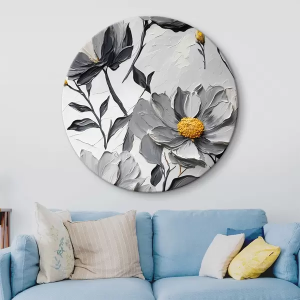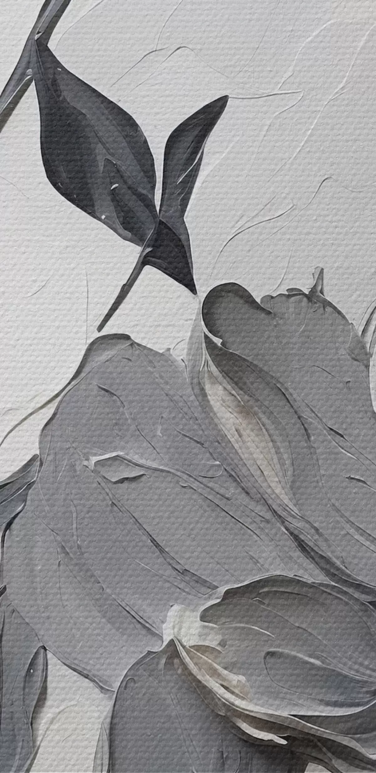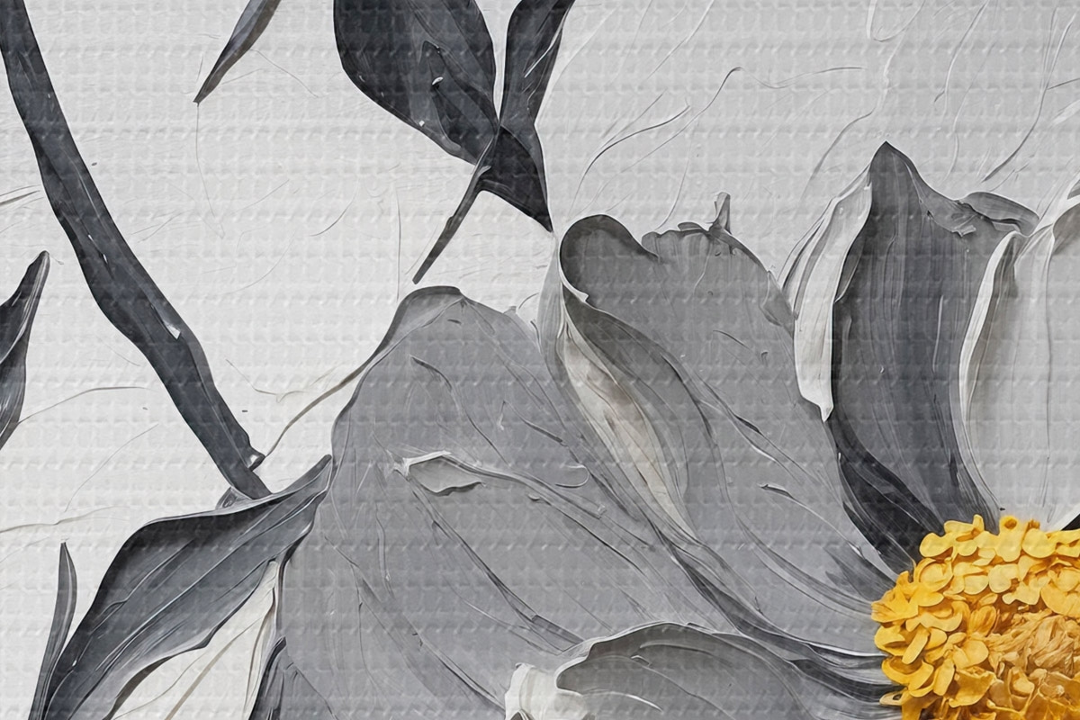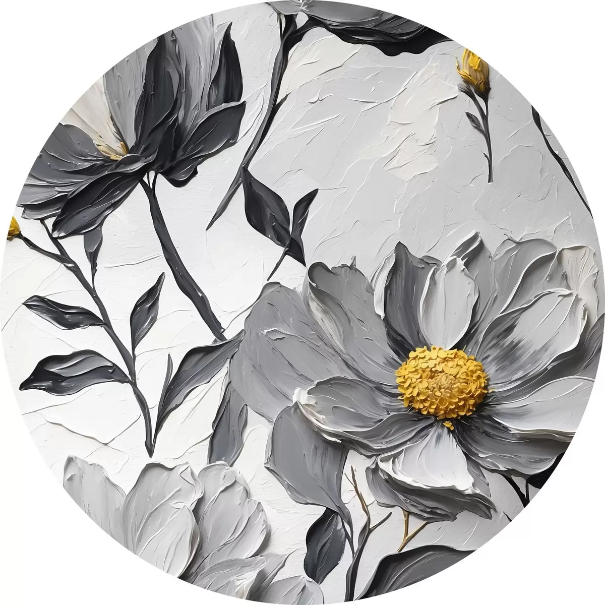 Nuotrauka Pilkos gėlės pilkame fone aliejinės tapybos stiliumi Nr r44080