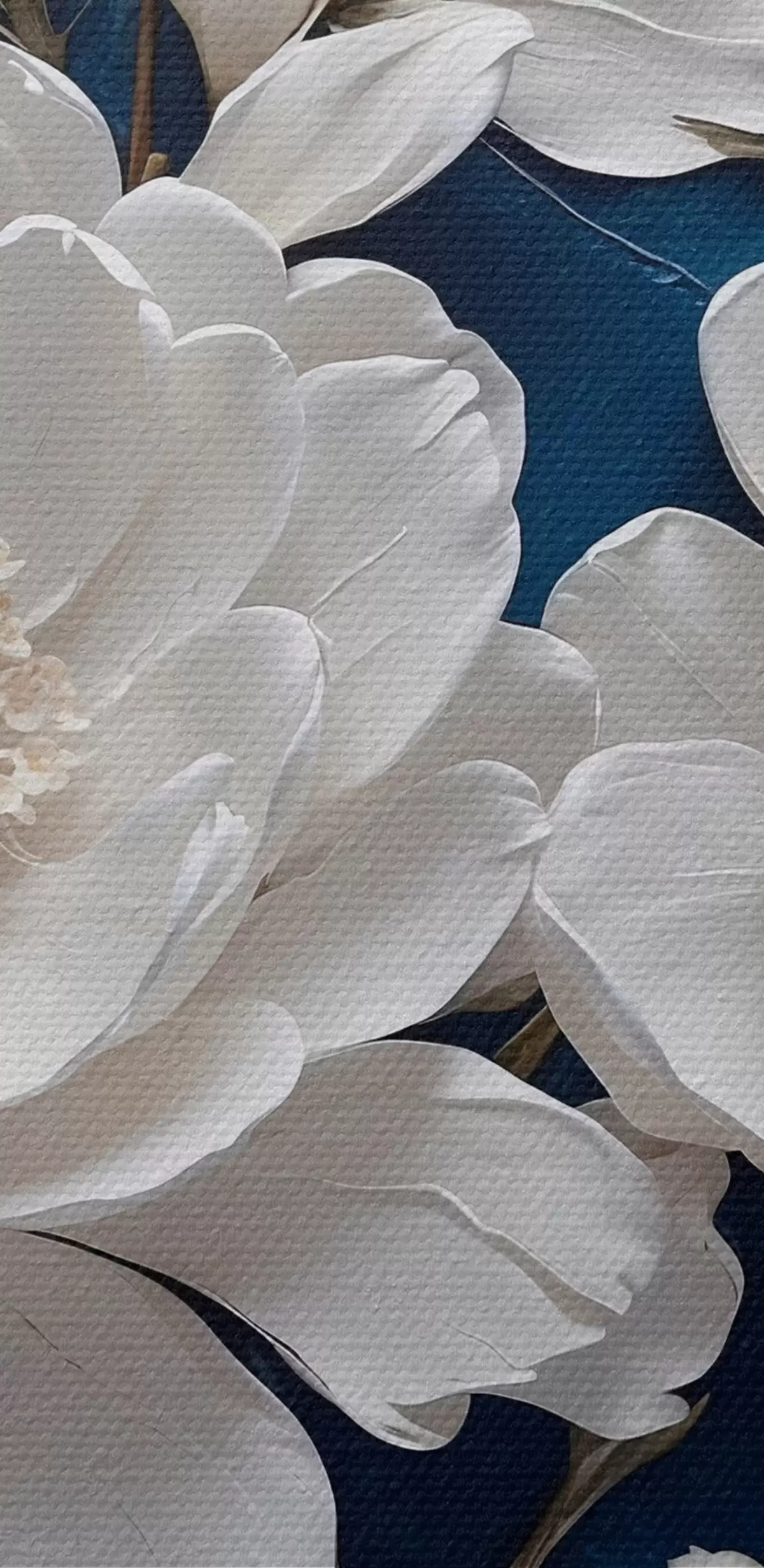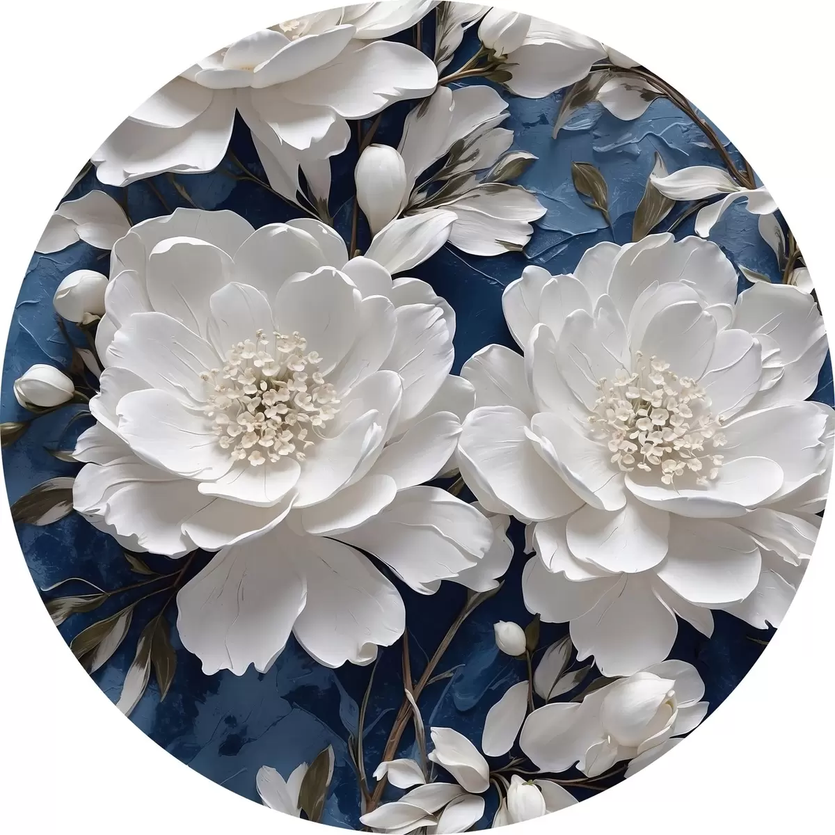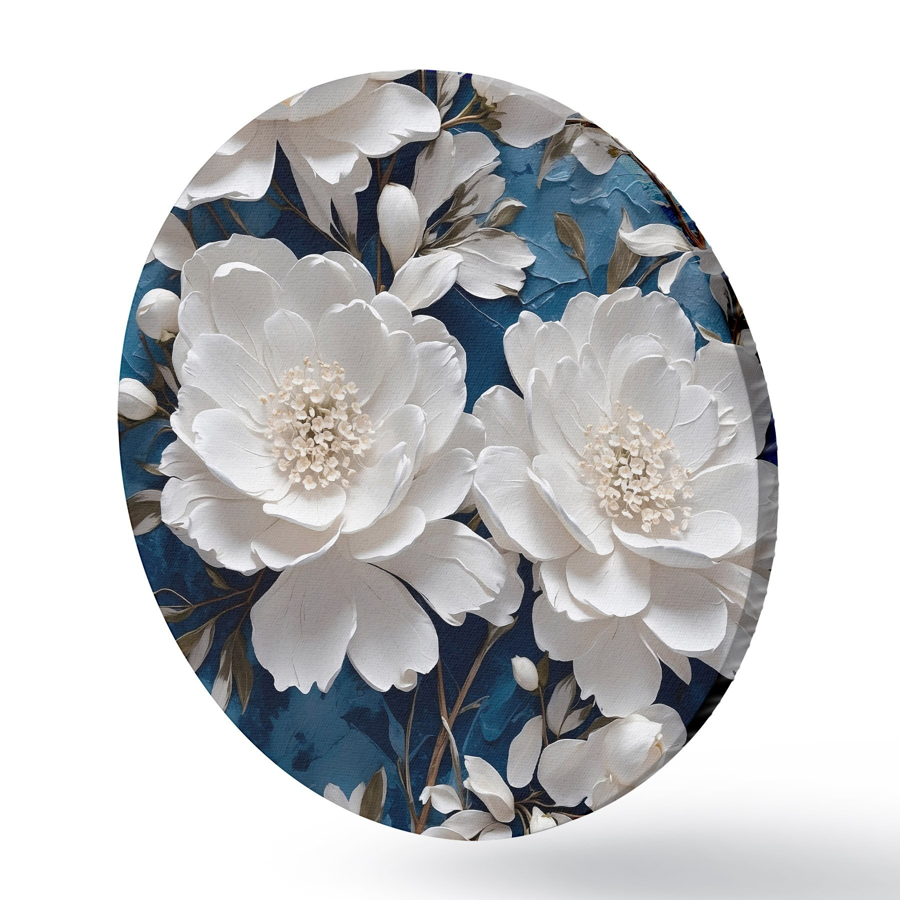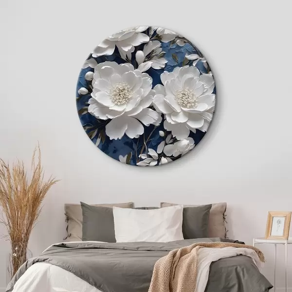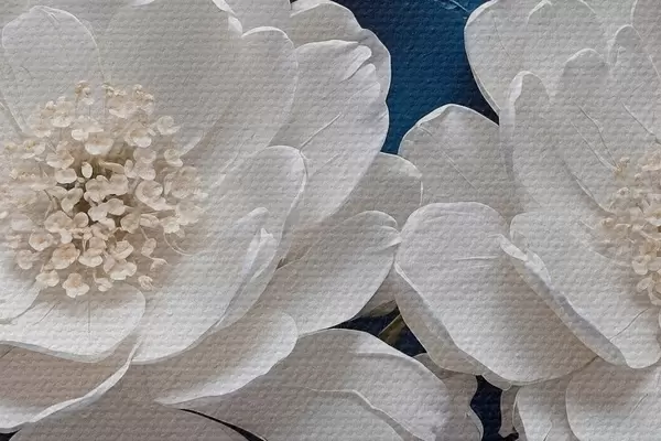 Nuotrauka Baltos gėlės ant mėlyno aliejaus tapybai fono Nr r44091