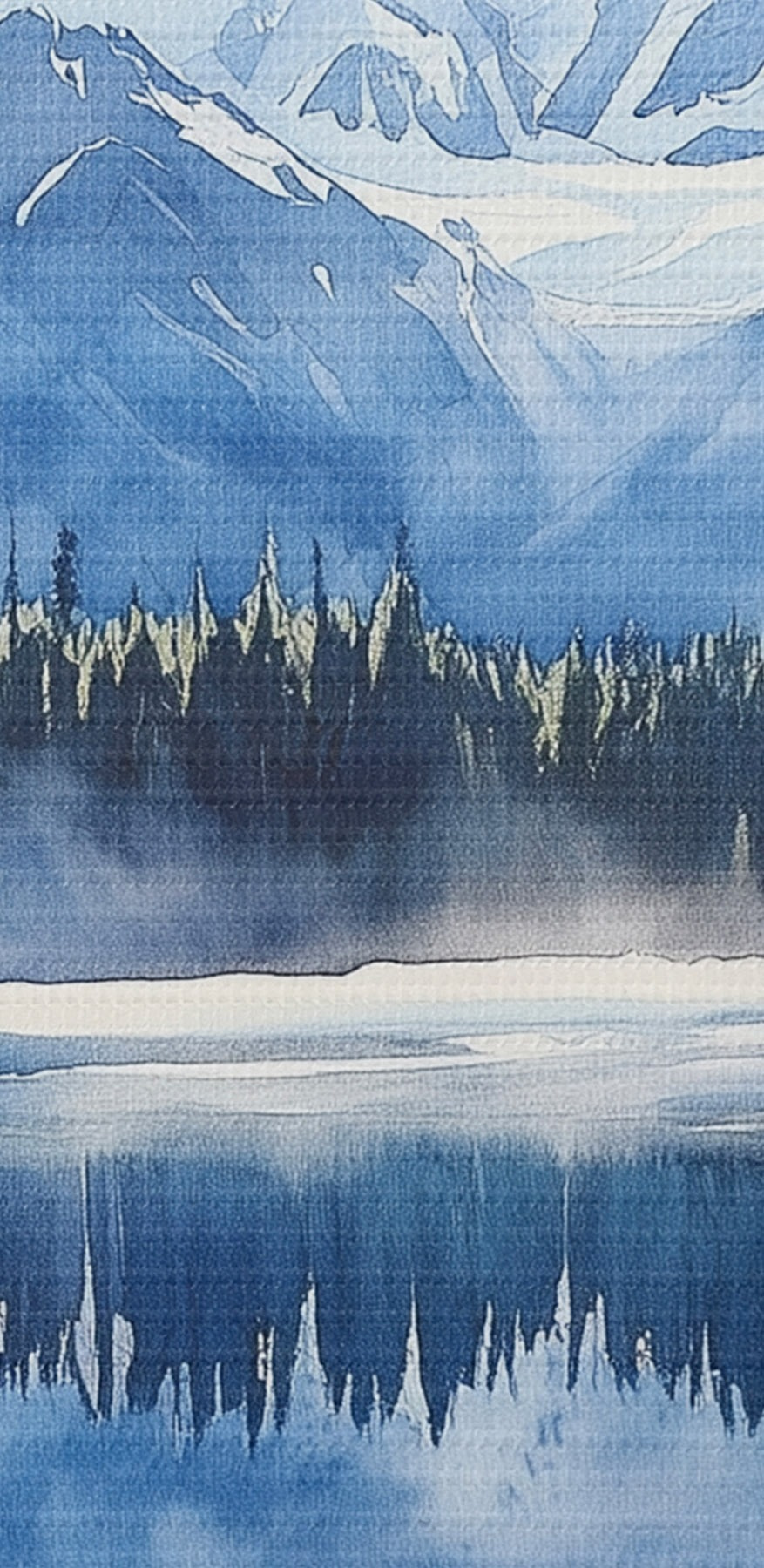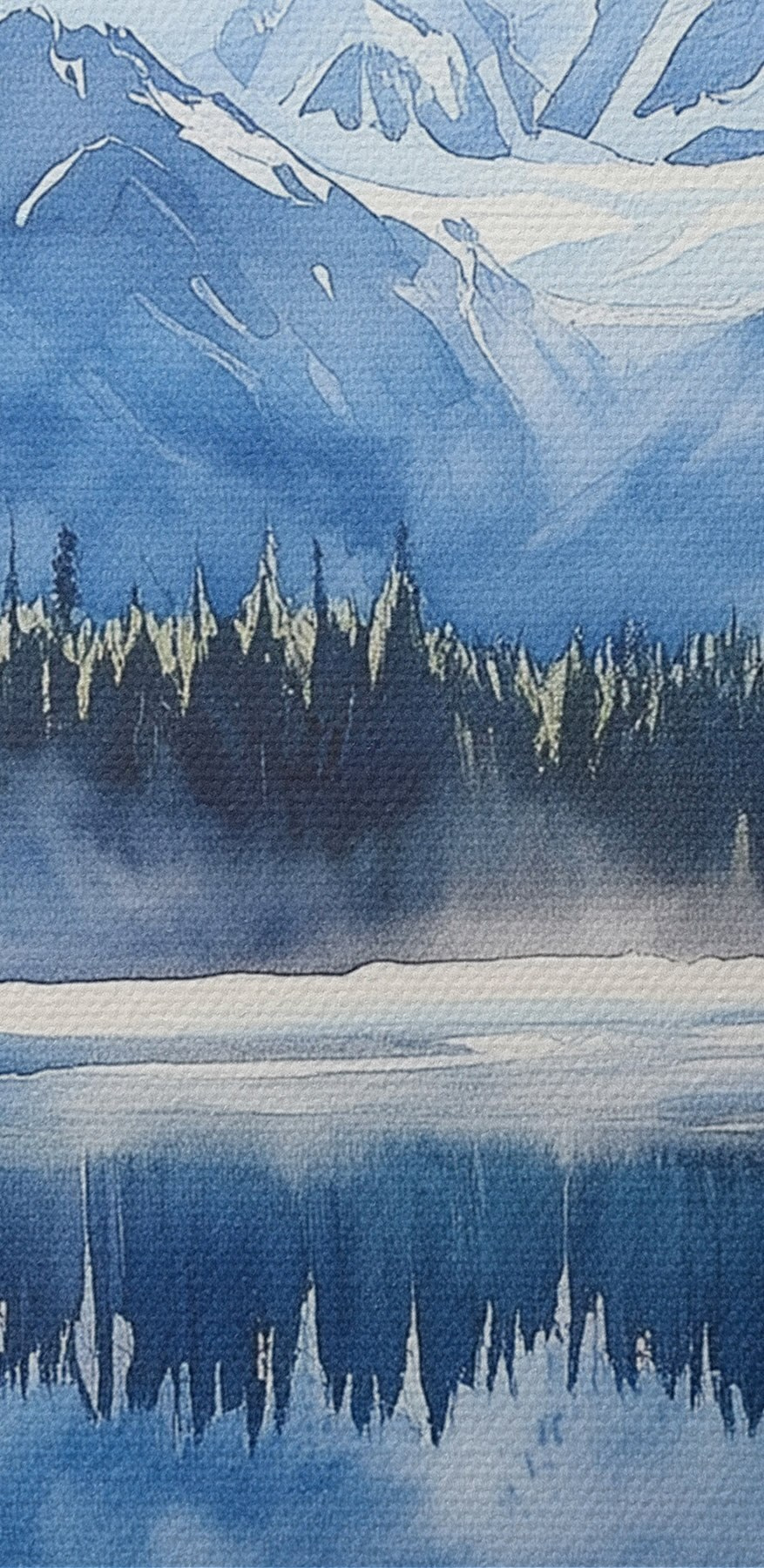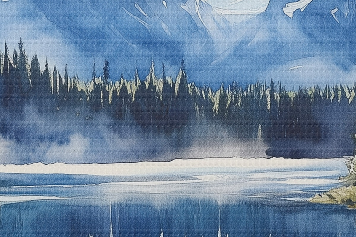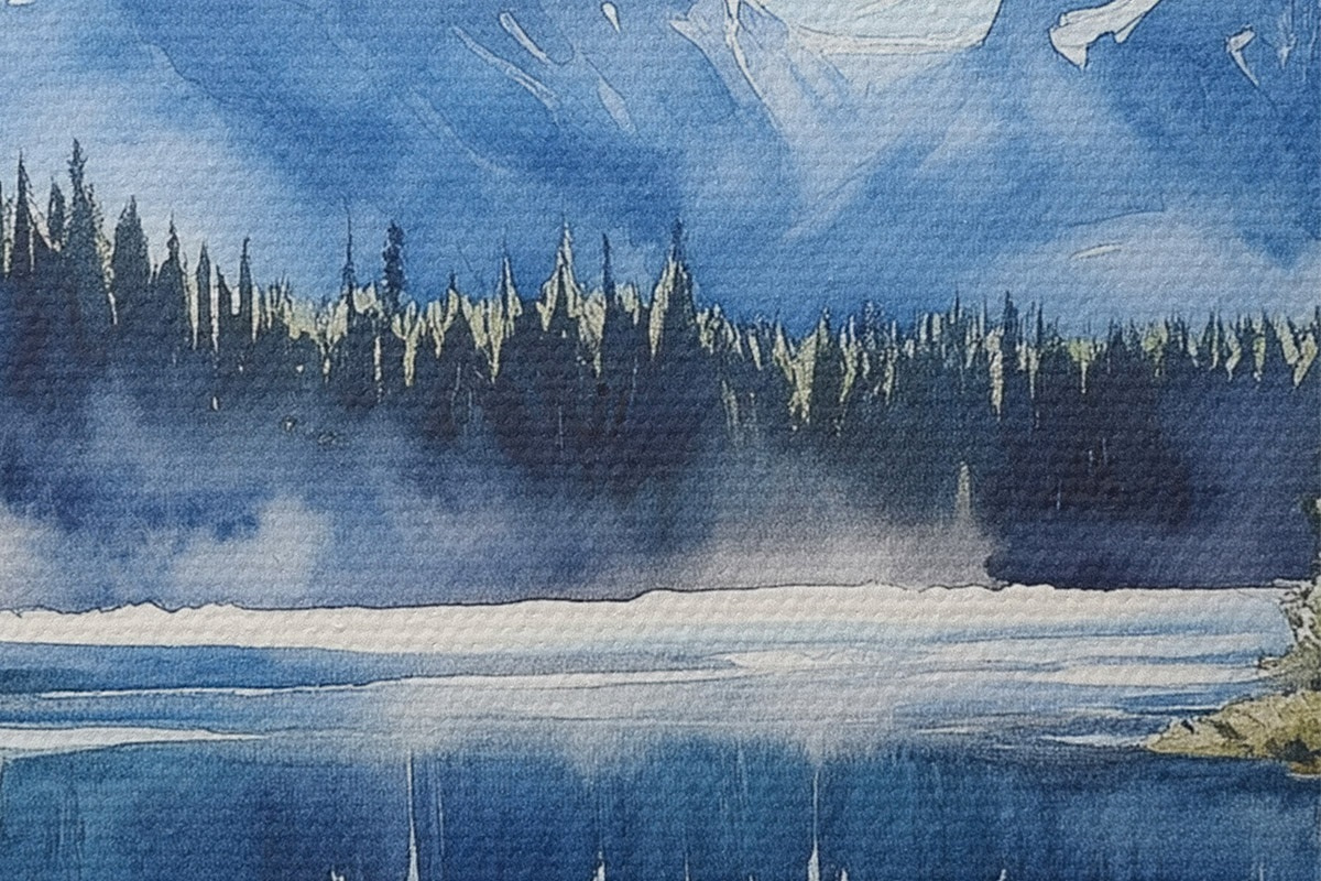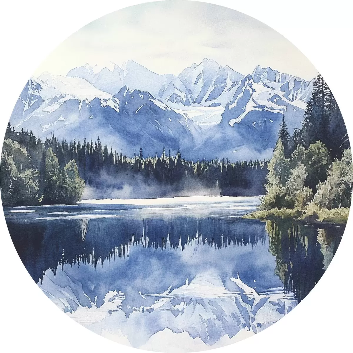 Nuotrauka Gražūs kalnai Naujojoje Zelandijoje, akvarelės stilius, ežeras, miškas Nr r44144