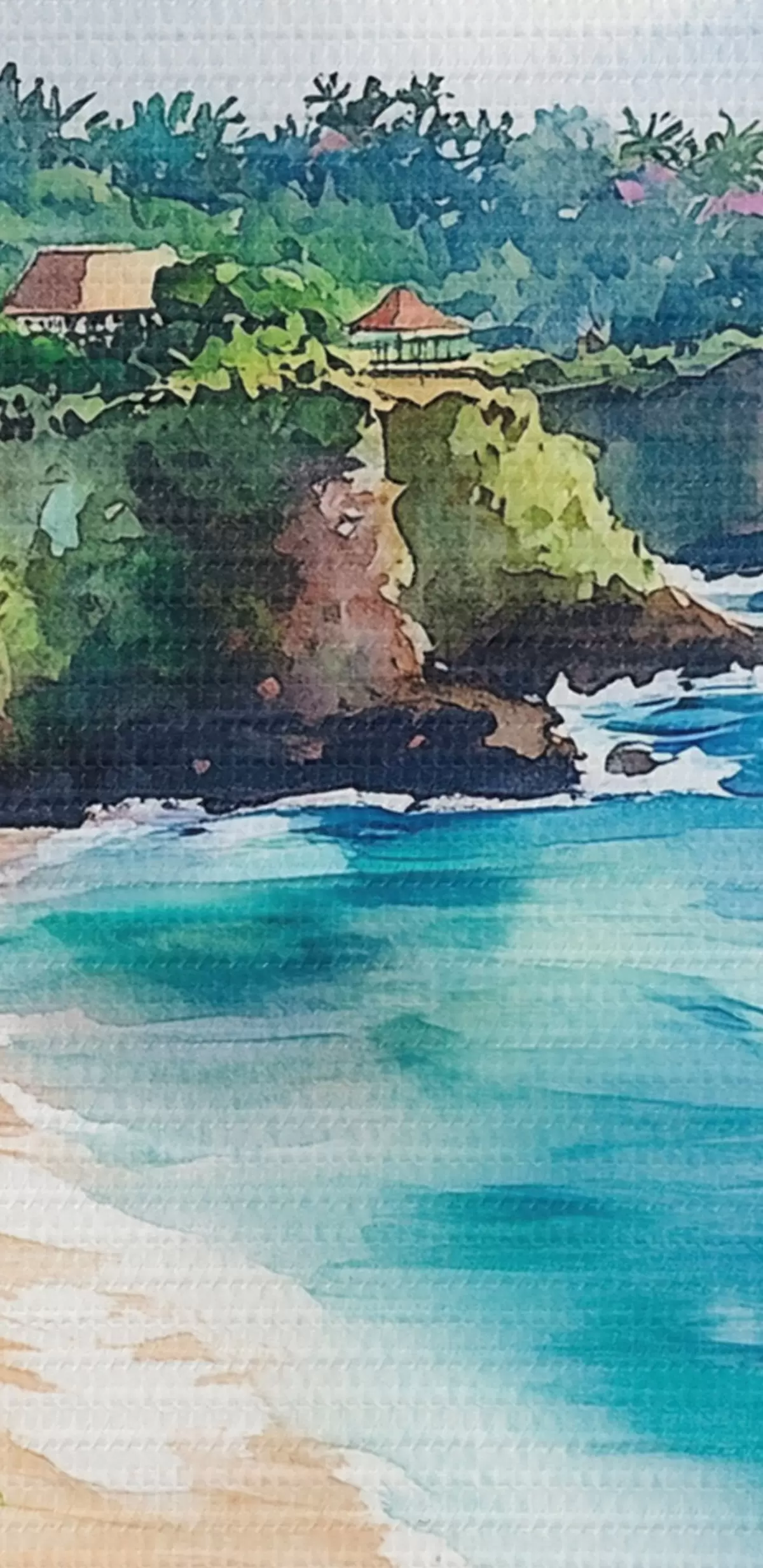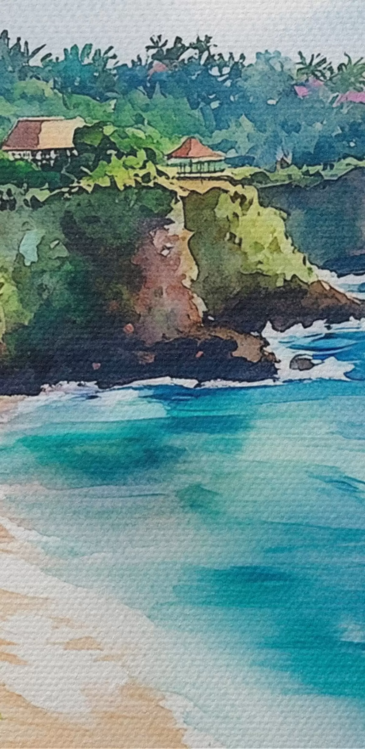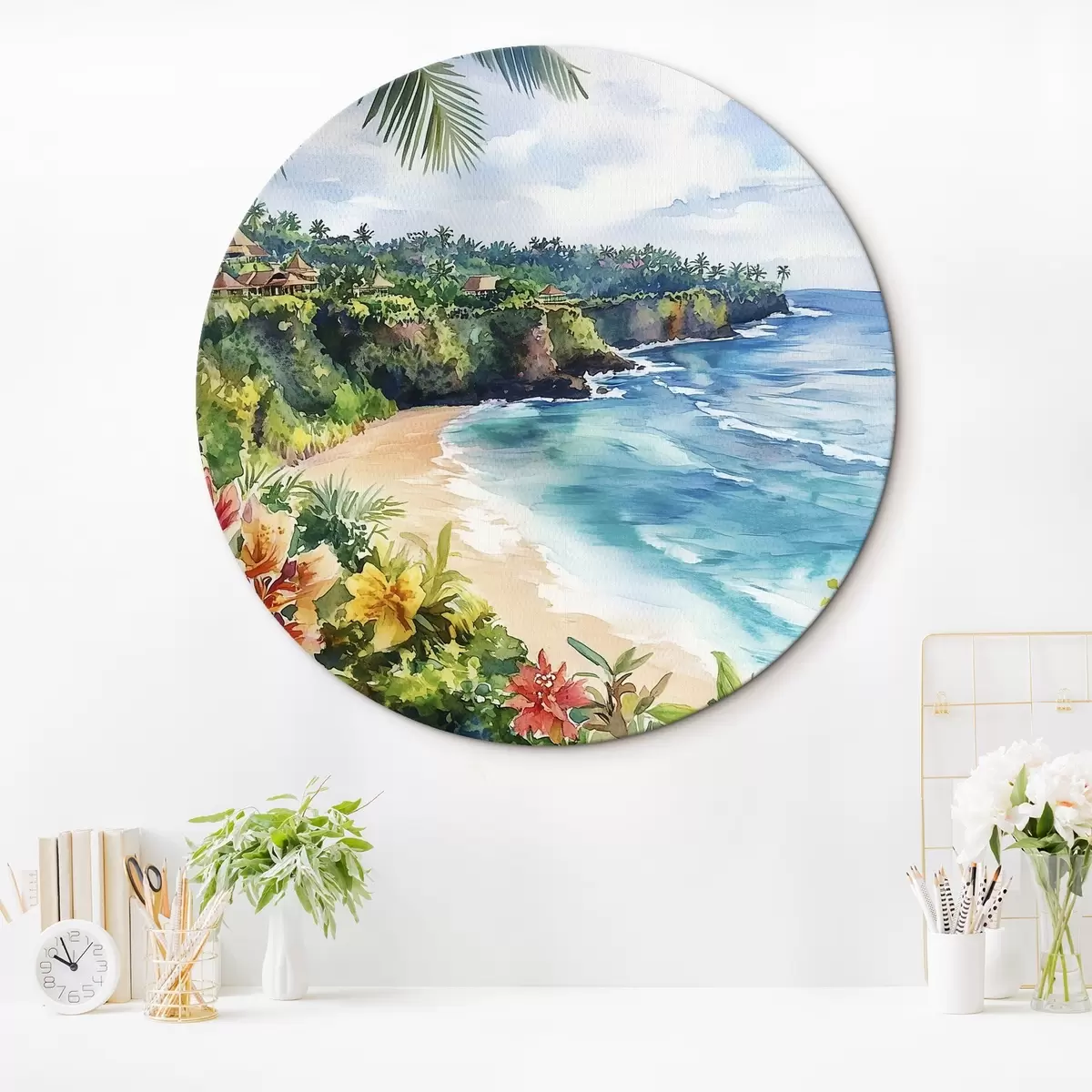 Nuotrauka Atogrąžų vandenyno paplūdimys, palmės, gėlės, akvarelės stilius Nr r44145
