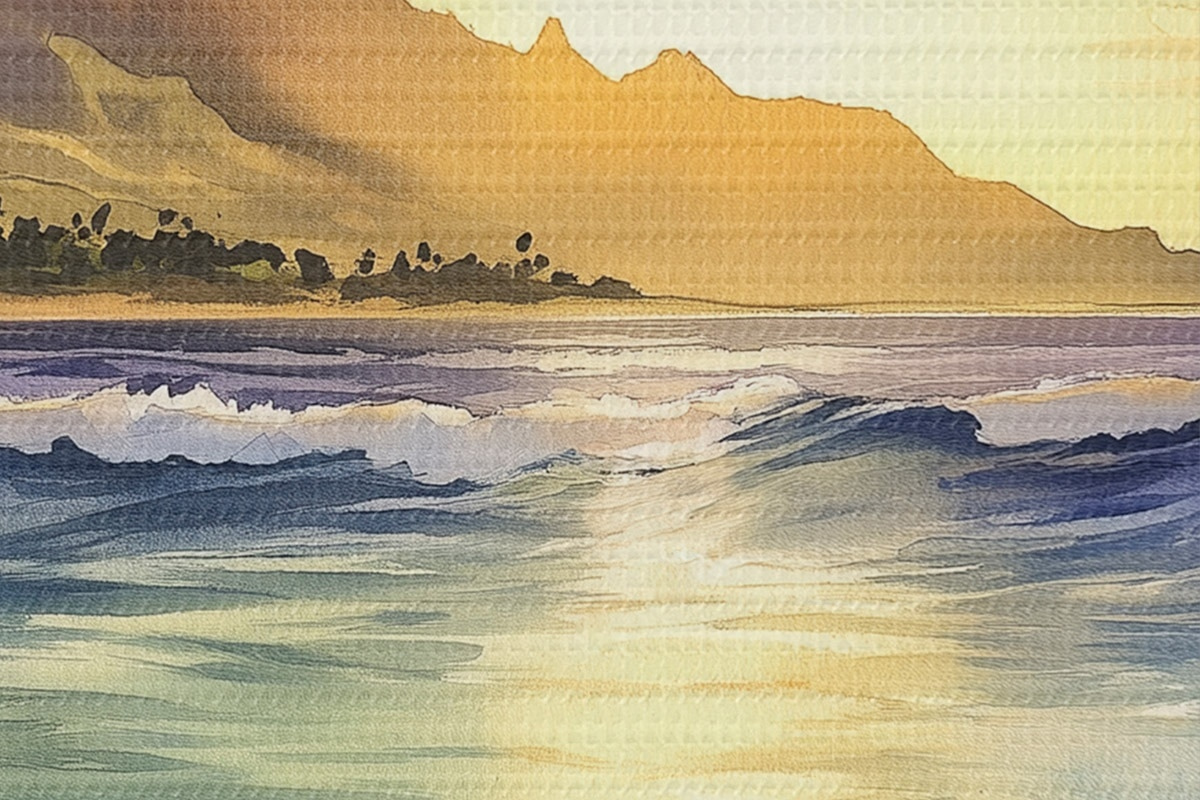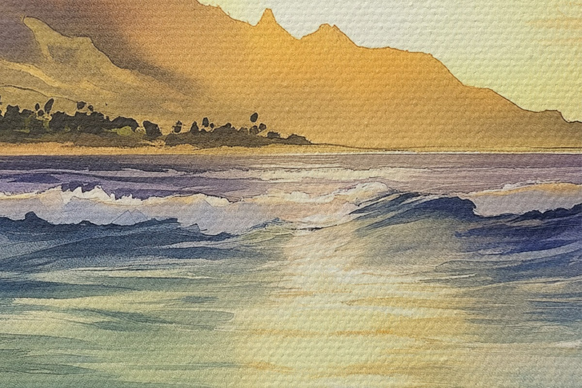 Nuotrauka Vandenyno bangos, saulėlydis, akvarelės stilius, gamta Nr r44147
