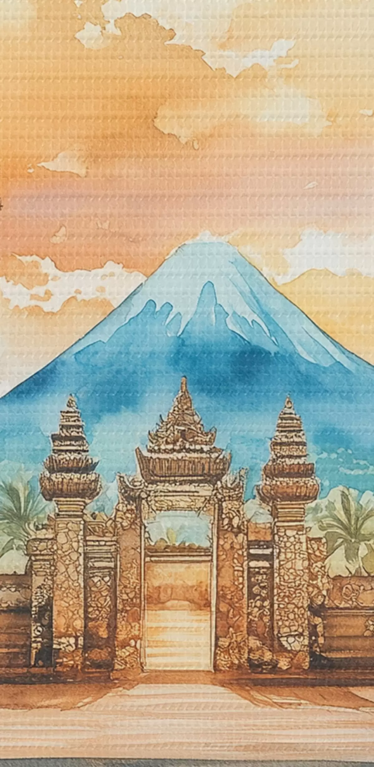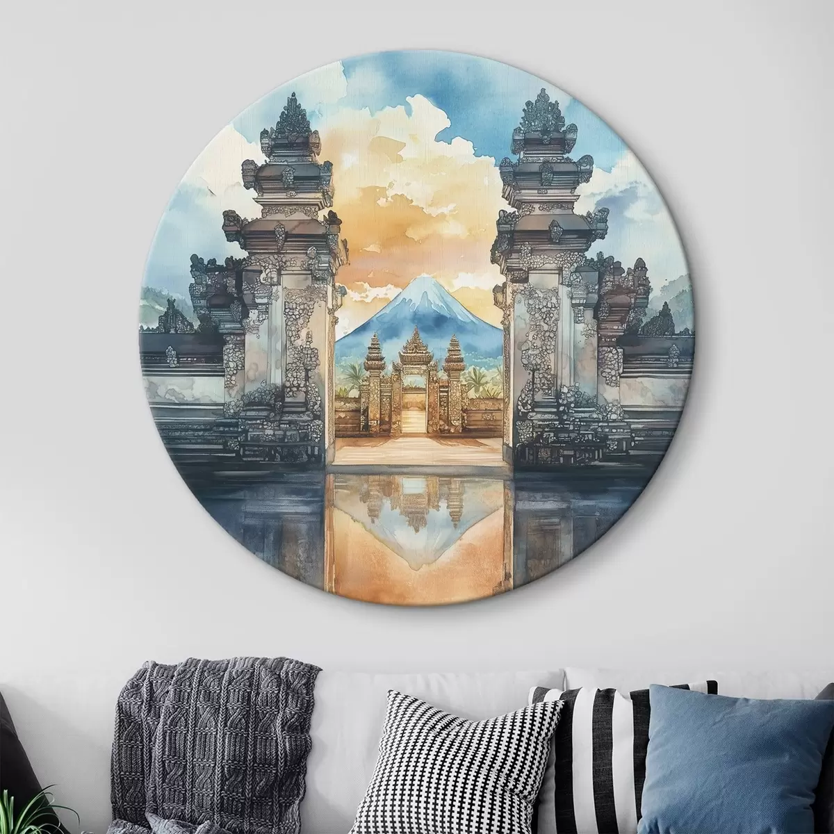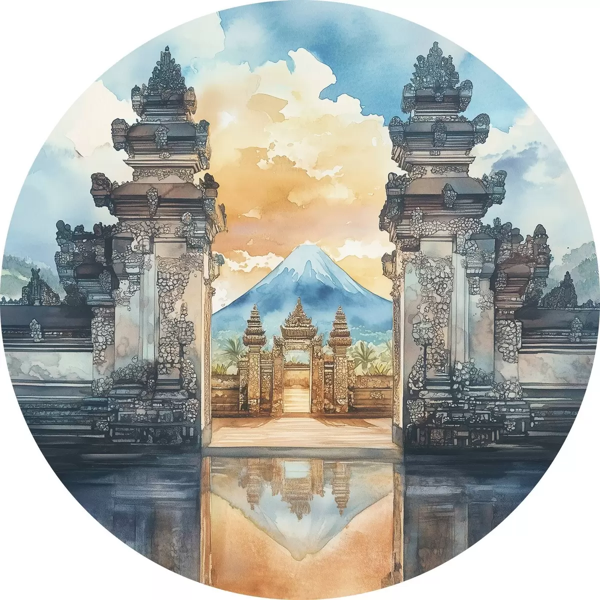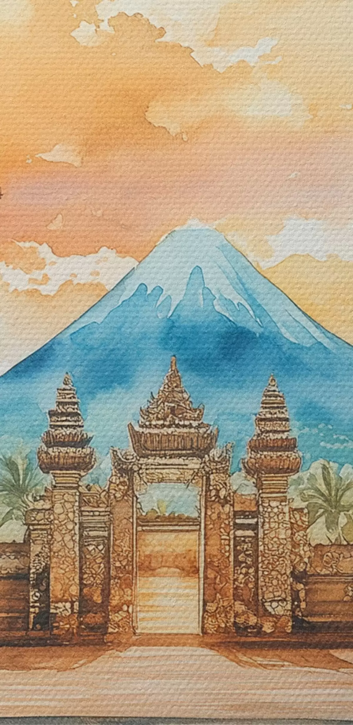 Nuotrauka Balio estetika, šventykla, saulėlydžio dangus, atogrąžų gamta, akvarelės stilius Nr r44149