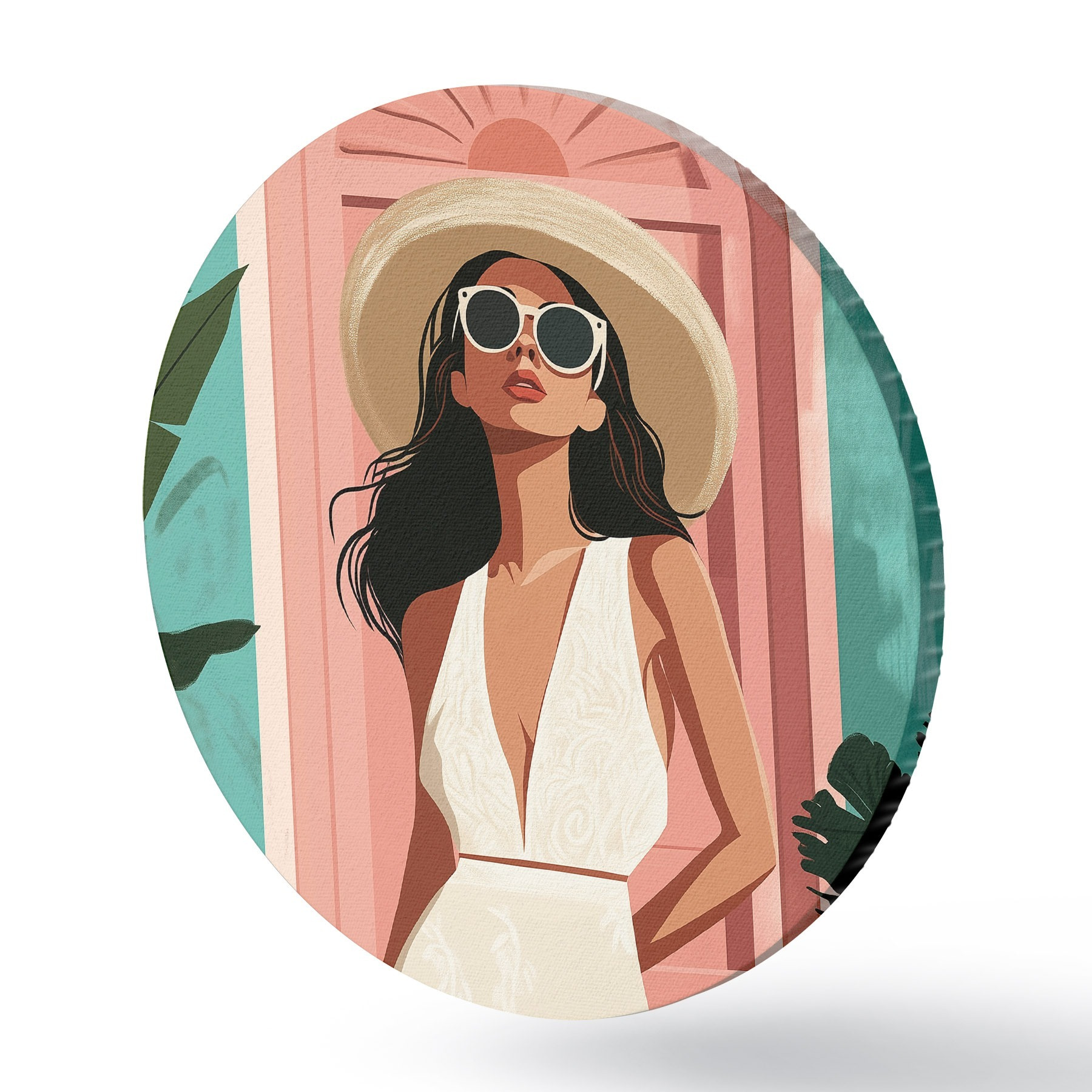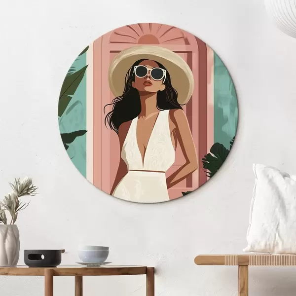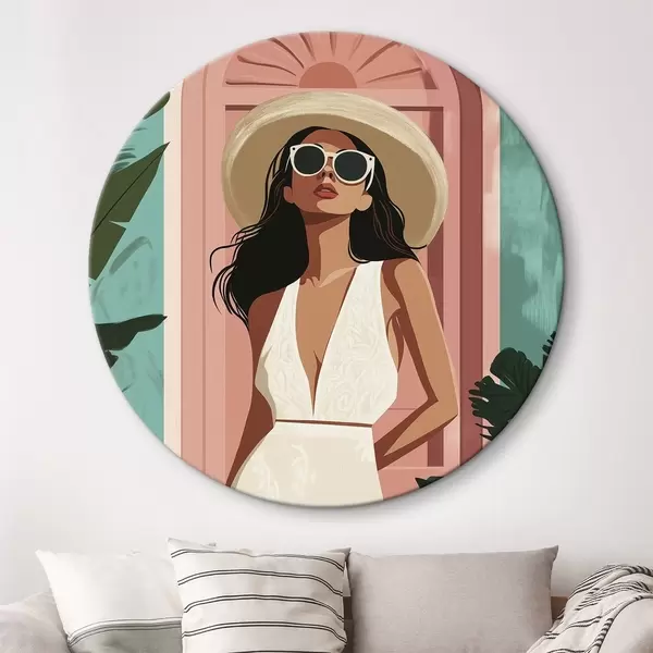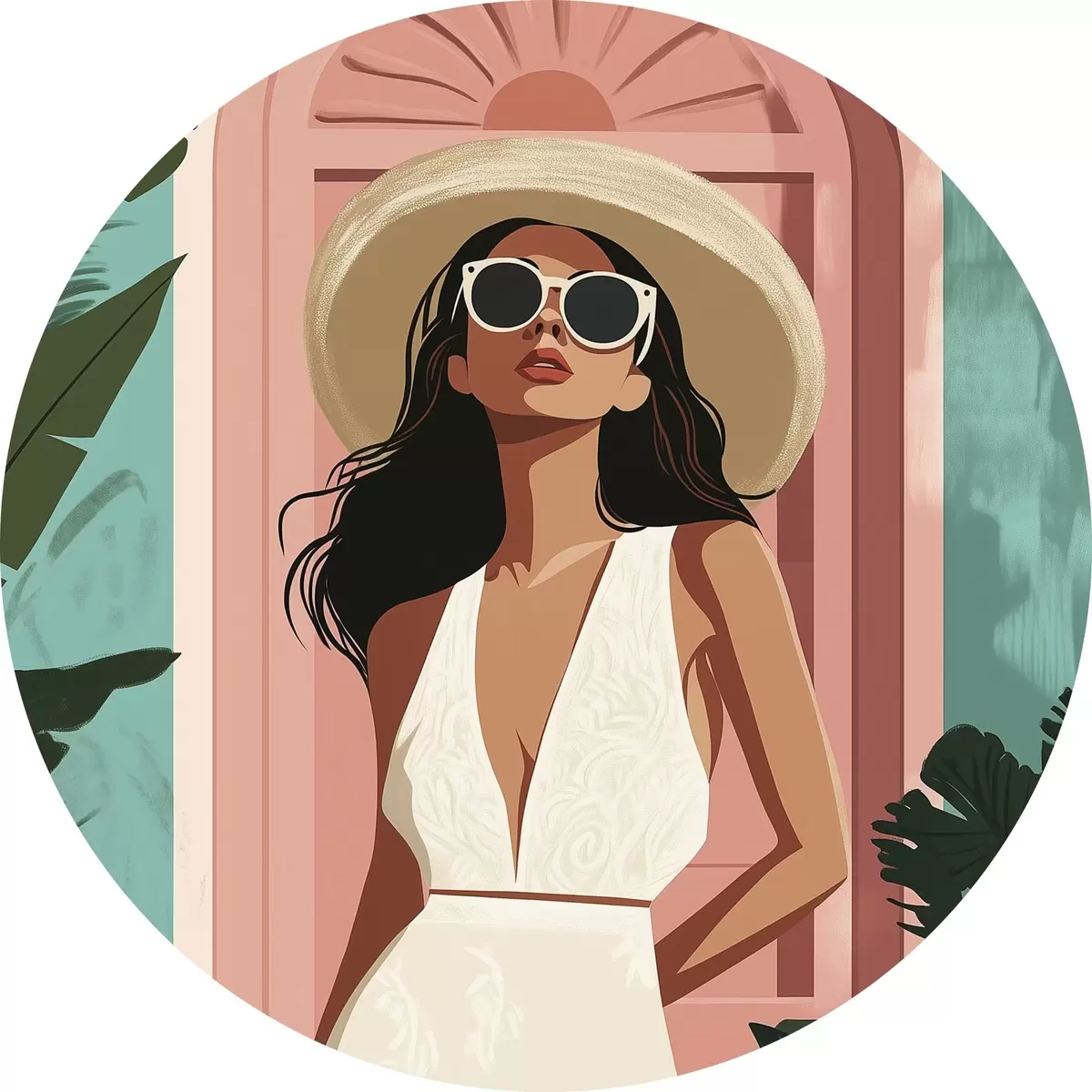 Nuotrauka Moteris su akiniais nuo saulės ir skrybėle, atogrąžų gamta, architektūra Nr r44152
