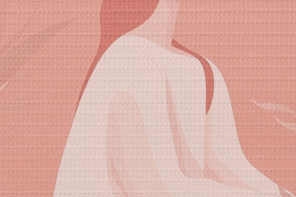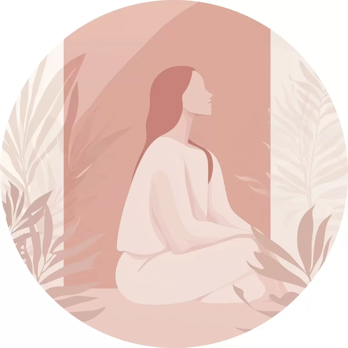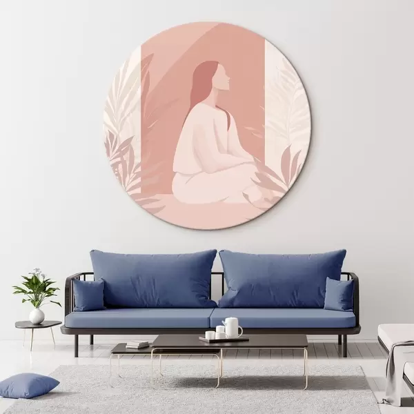 Nuotrauka Moteris meditacijoje, plokščias stilius, atogrąžų augalai, rožinės spalvos Nr r44154