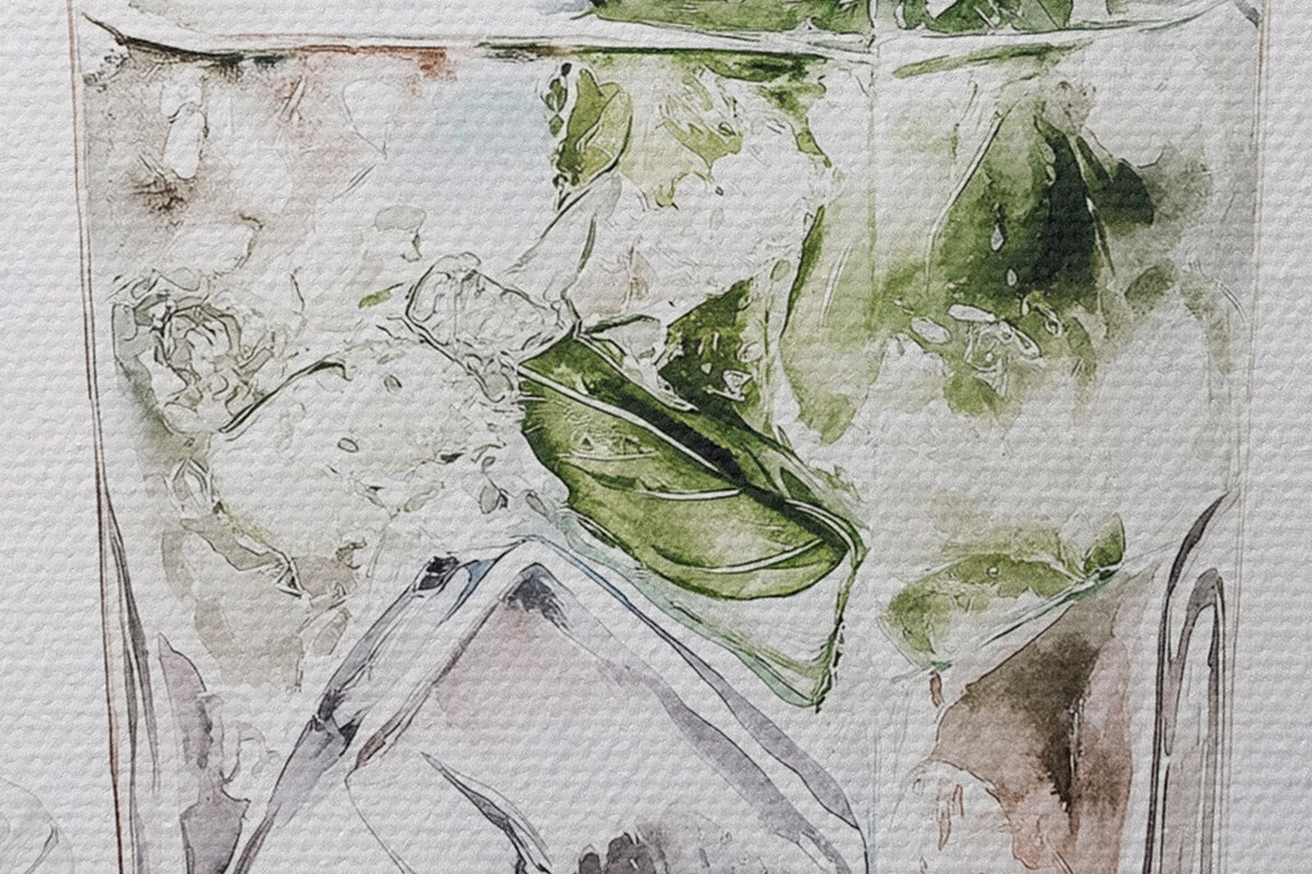 Nuotrauka Mojito kokteilis, akvarelės stiliaus gėrimai, mėta Nr r44302