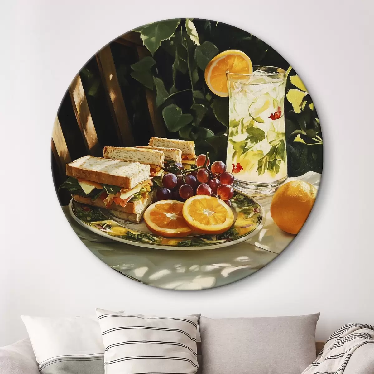 Nuotrauka Estetiškas piknikas vasaros sode, sumuštiniai, apelsinai, limonadas Nr r44306