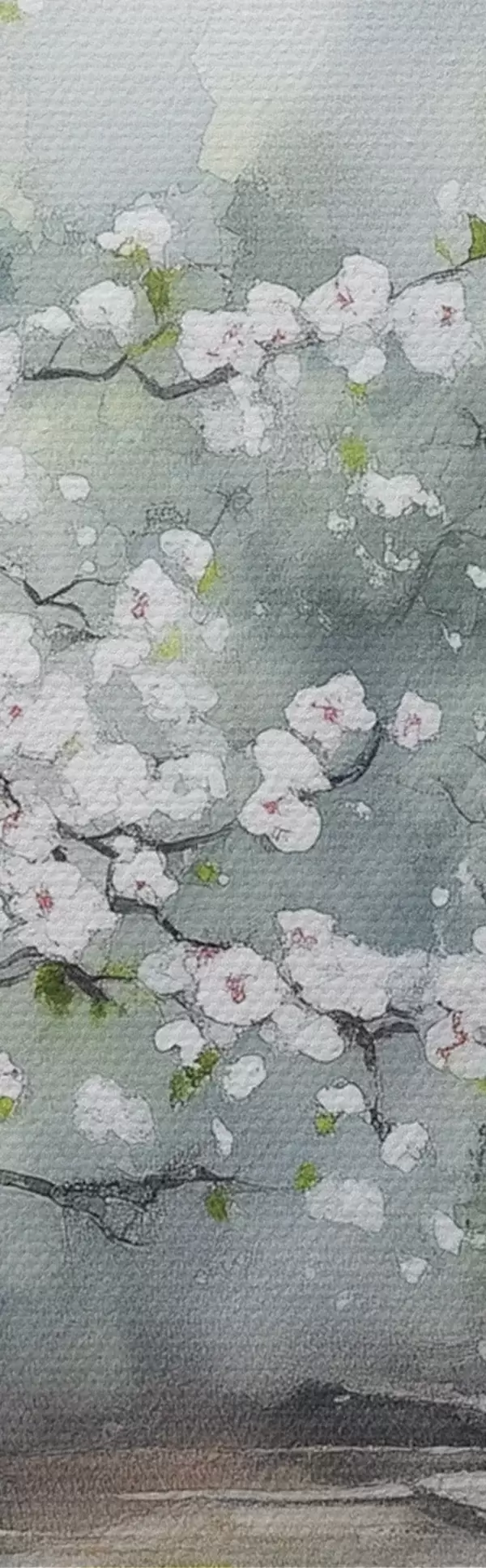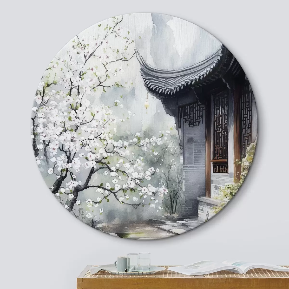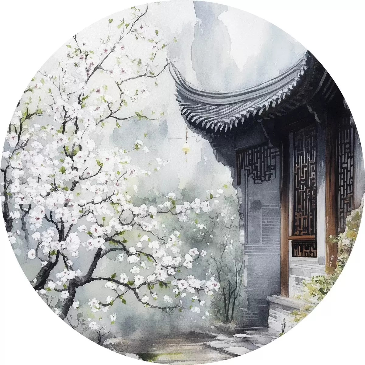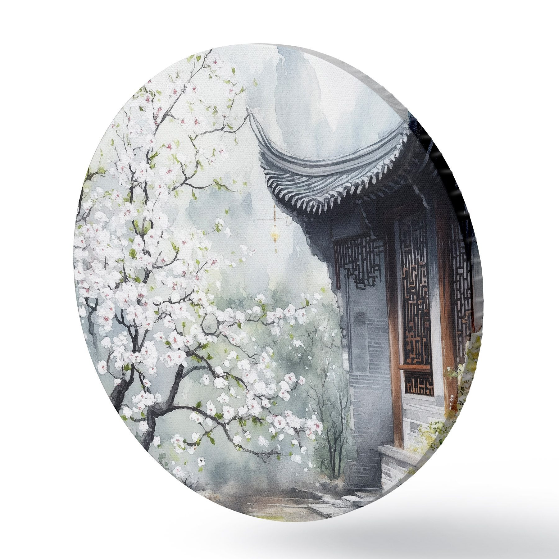 Nuotrauka Japonijos sodas su vyšnia ir namu, rytietiškas, akvarelės stilius Nr r44309