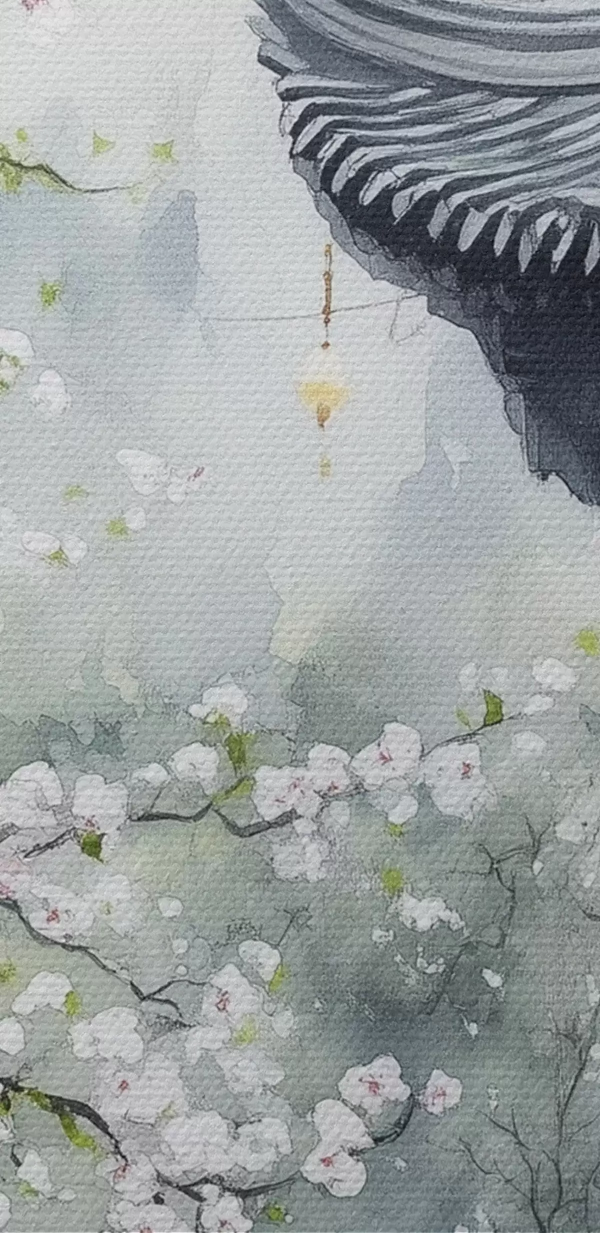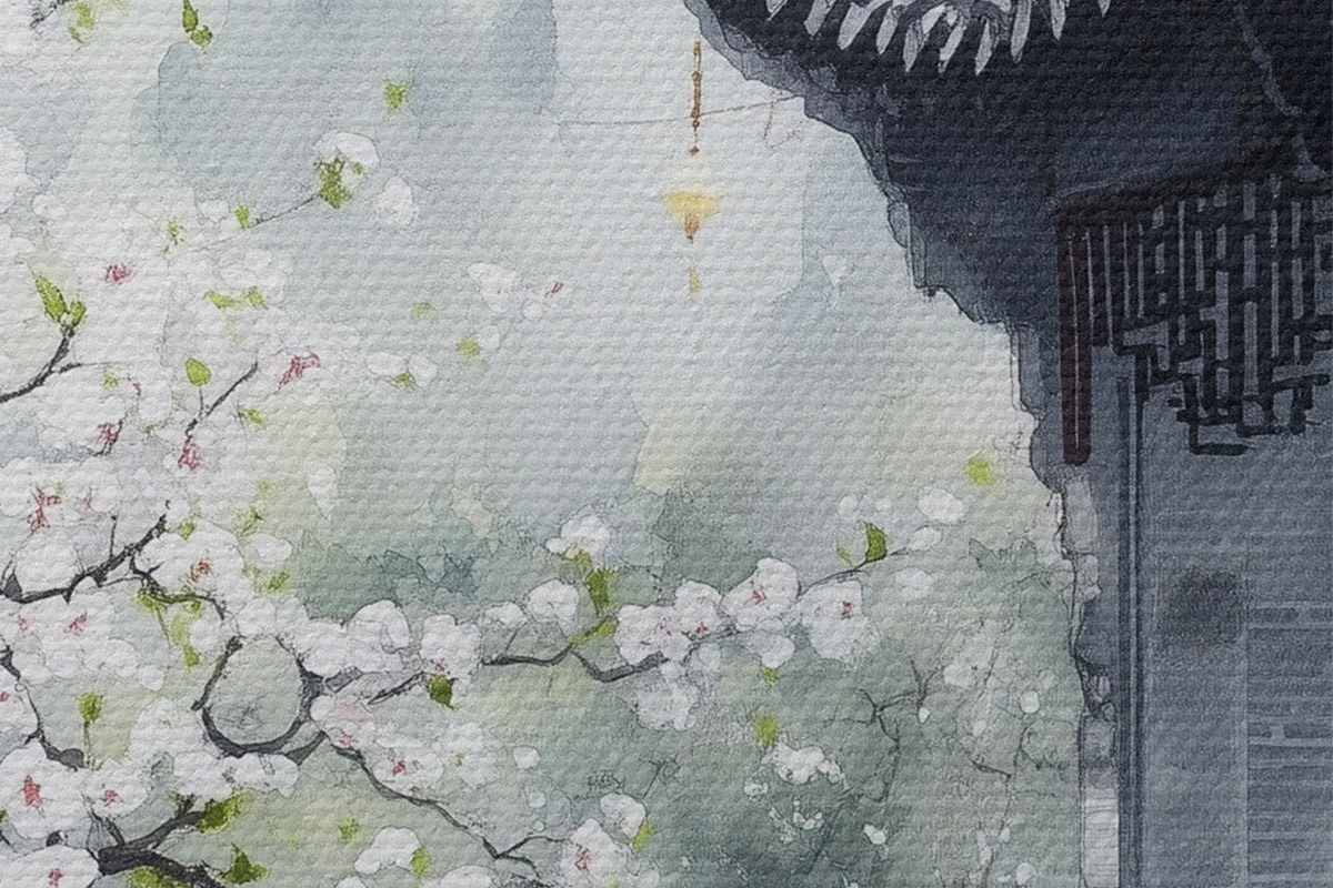 Nuotrauka Japonijos sodas su vyšnia ir namu, rytietiškas, akvarelės stilius Nr r44309