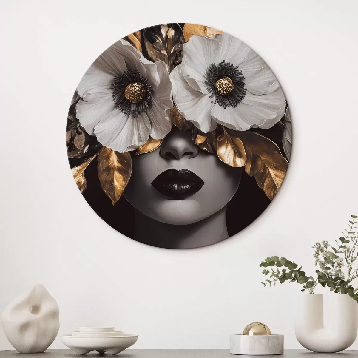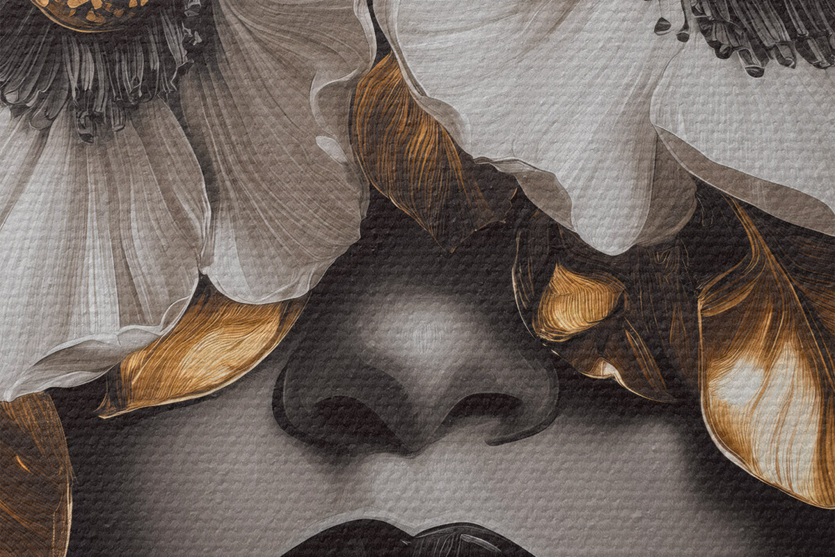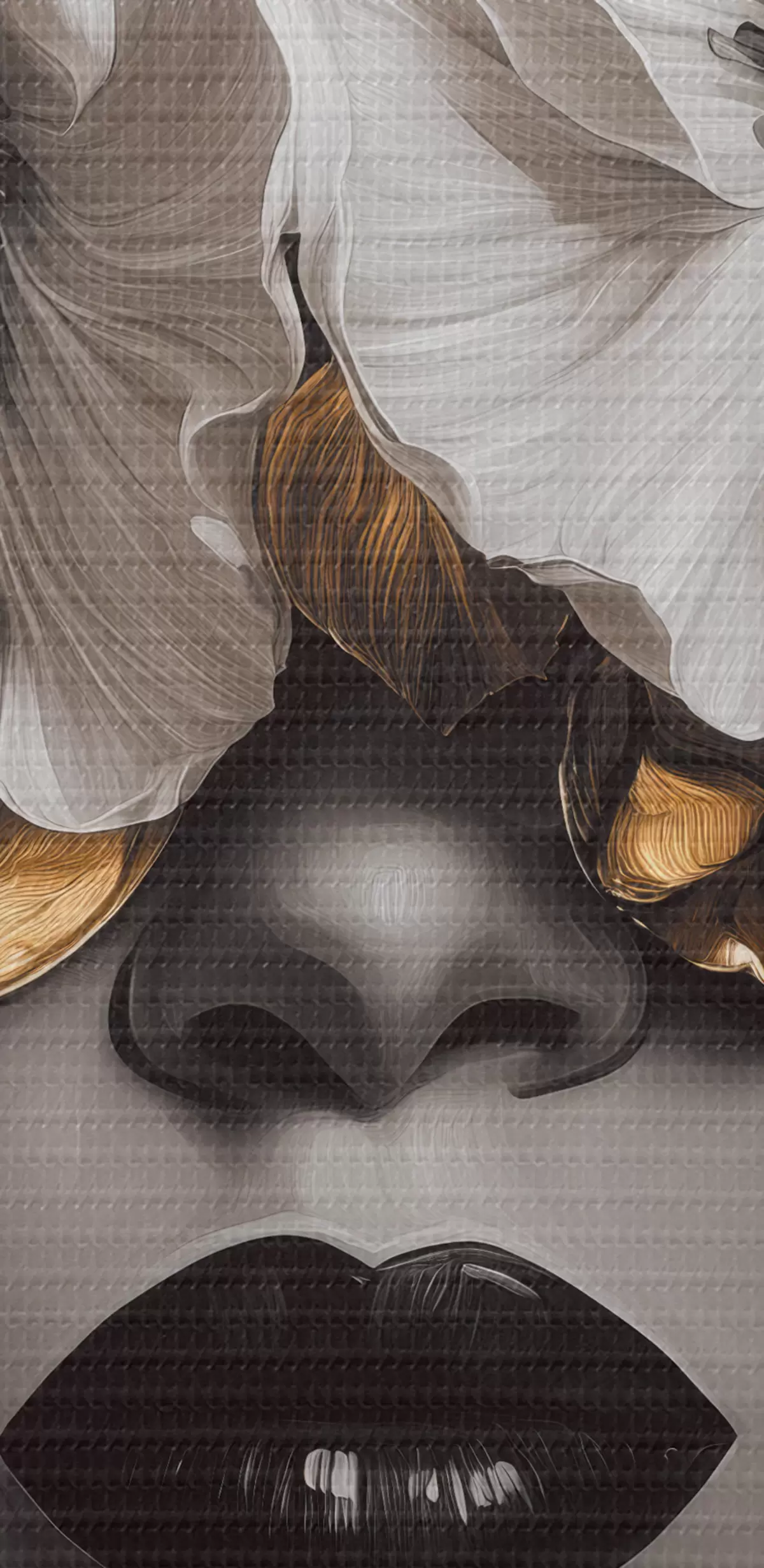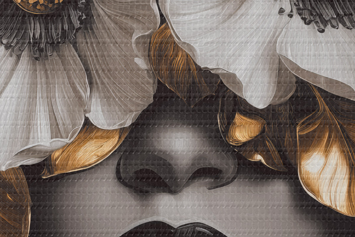 Nuotrauka Pusiau abstraktus moters su gėlėmis portretas Nr r44365