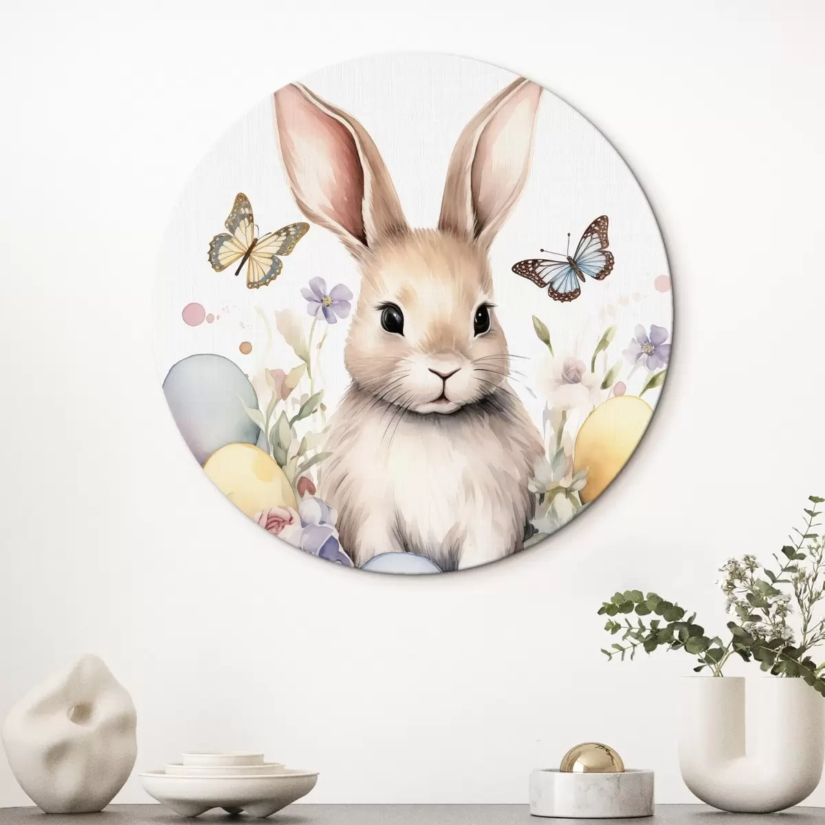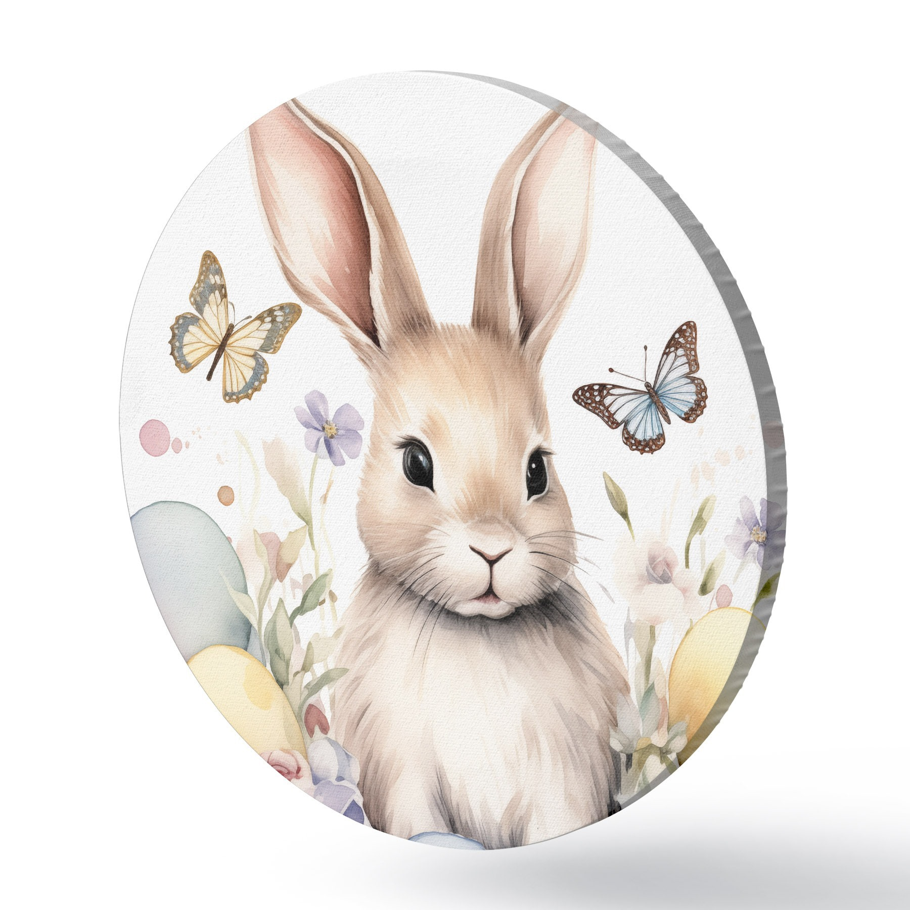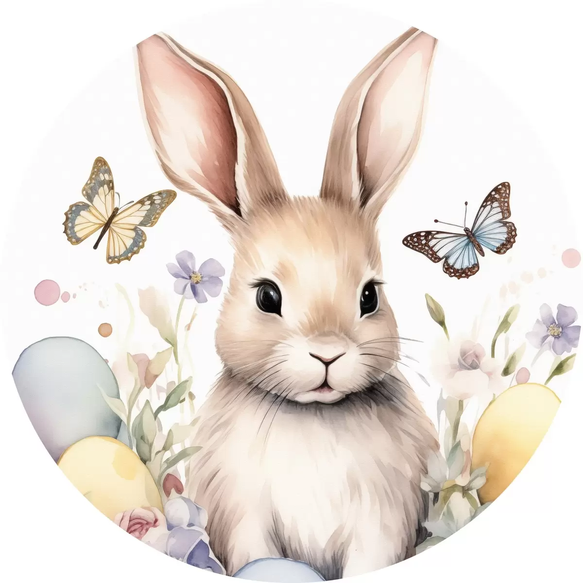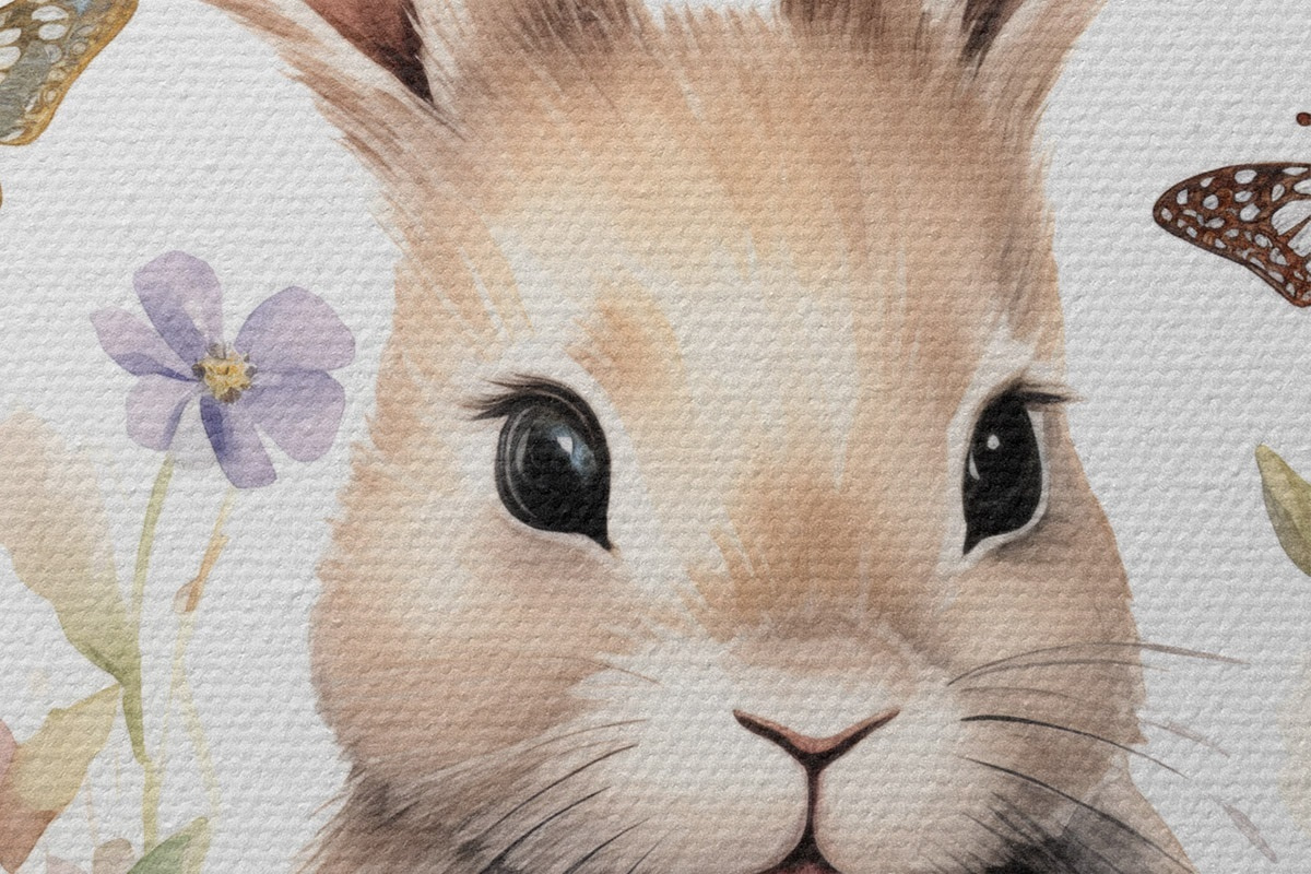 Nuotrauka Mielas akvarelės stiliaus zuikutis gėlėse su drugeliais Nr r44388