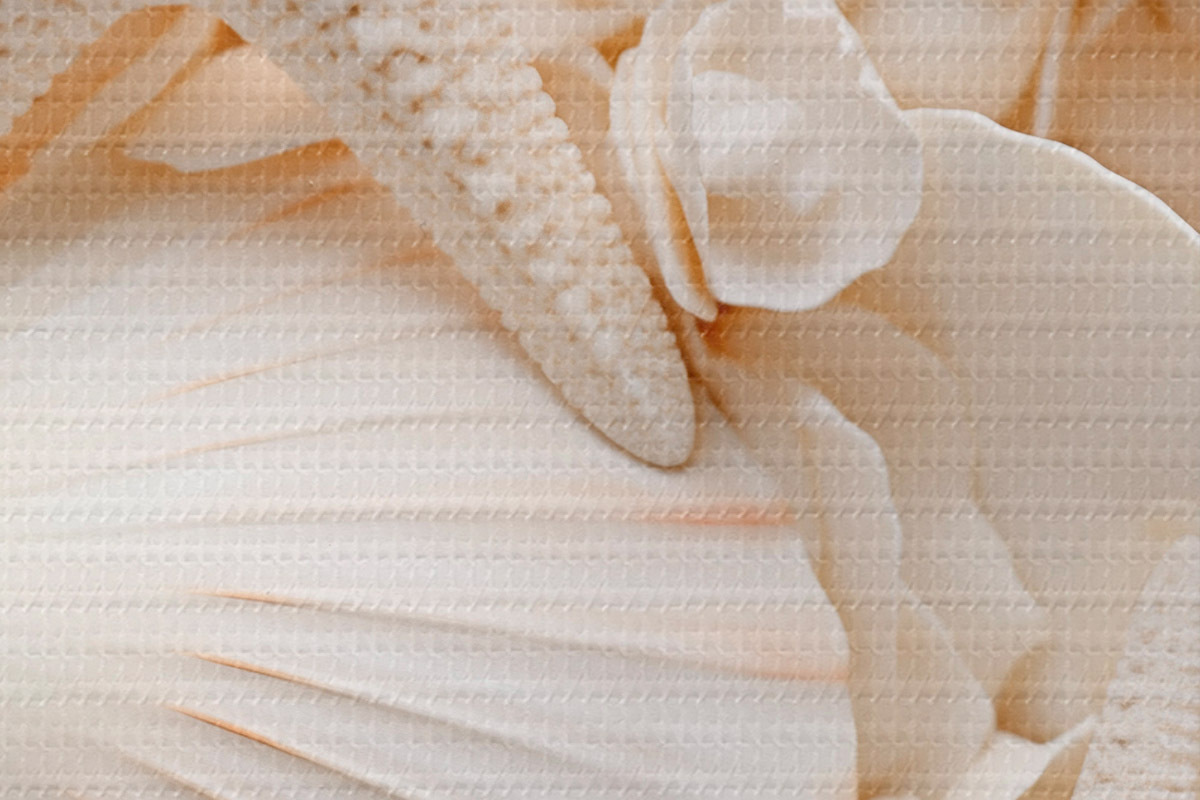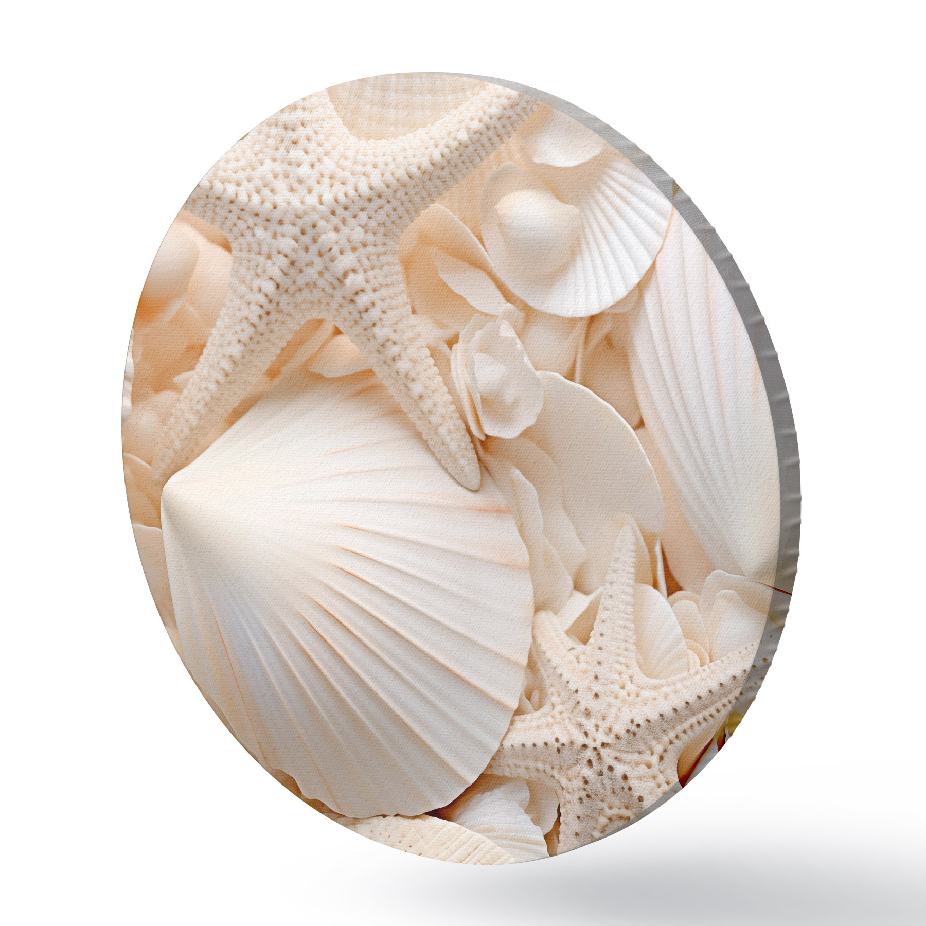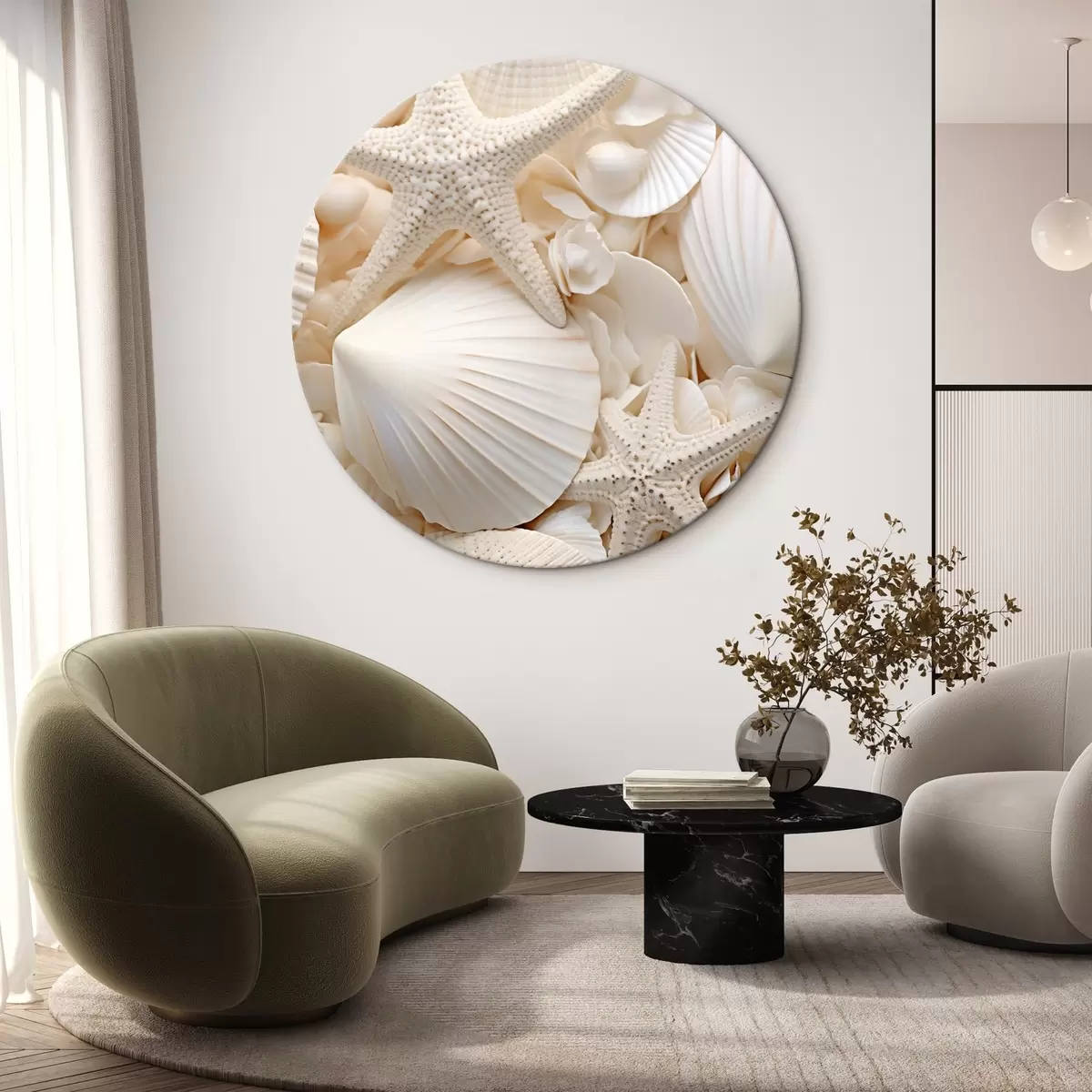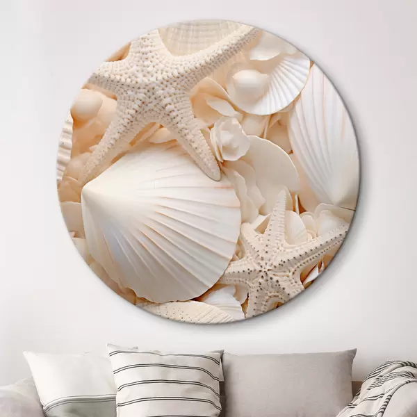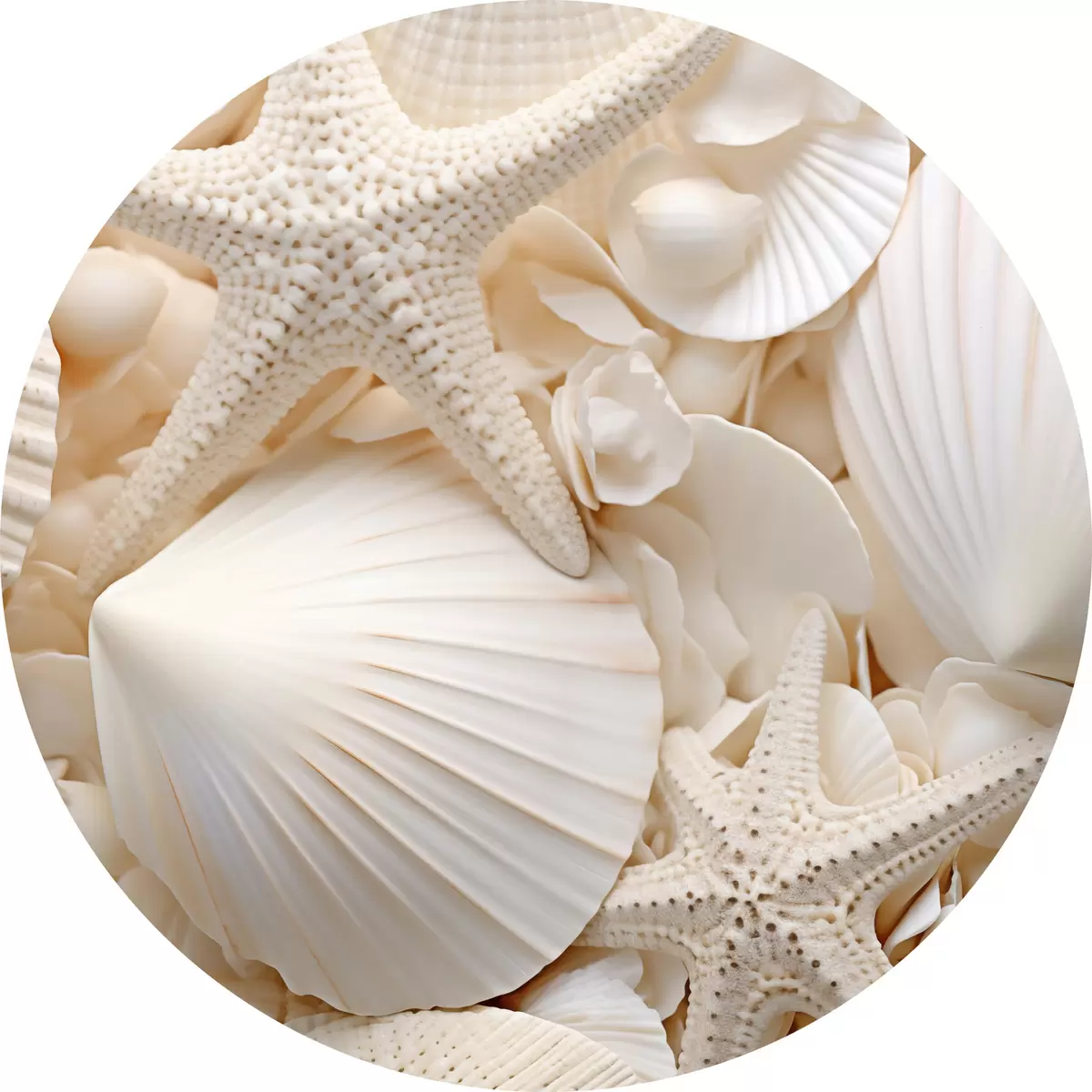 Nuotrauka Dekoratyvinės baltos kriauklės ir jūrų žvaigždės, sukuriančios faktūrinę vienspalvę kompoziciją Nr r44392