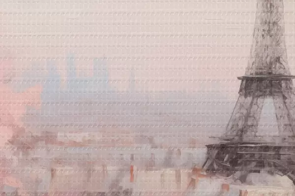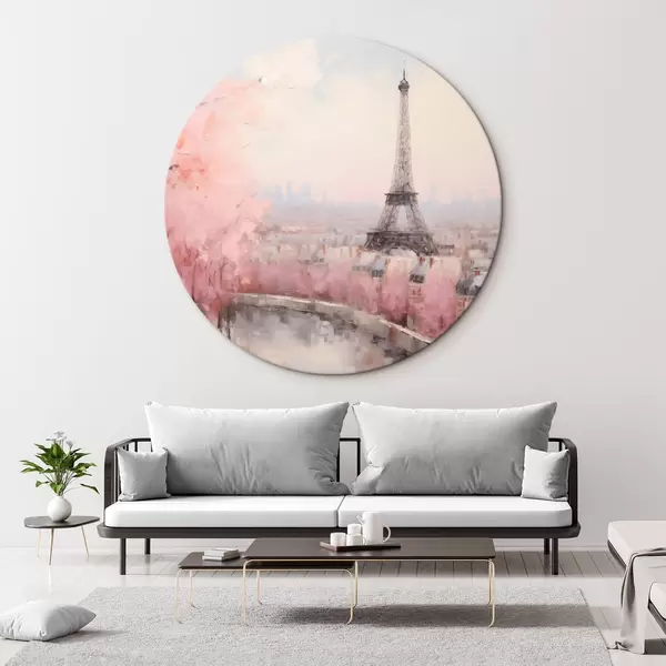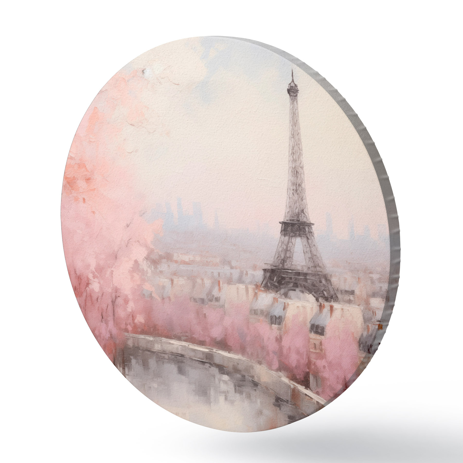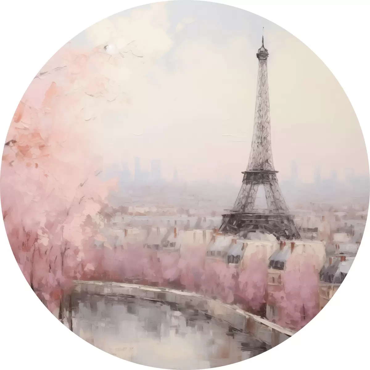 Nuotrauka Eifelio bokštas Paryžiuje su pavasarį žydinčiomis vyšniomis, švelnios pastelinės spalvos Nr r44398