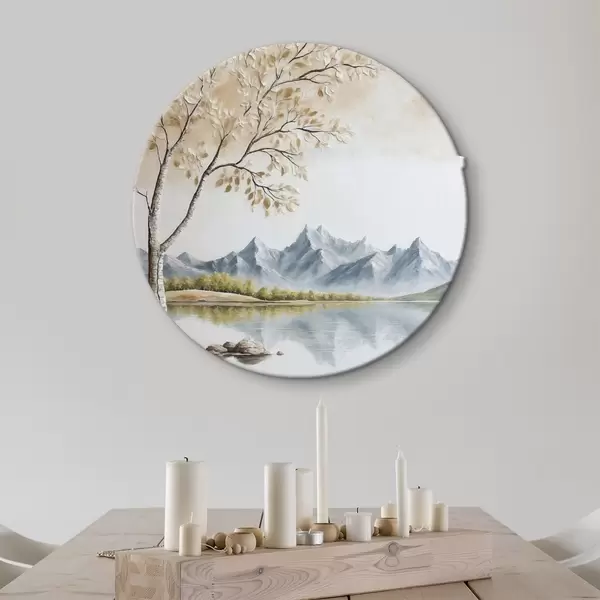 Nuotrauka Medis ant ežero ir snieguotų kalnų fone Nr r44459