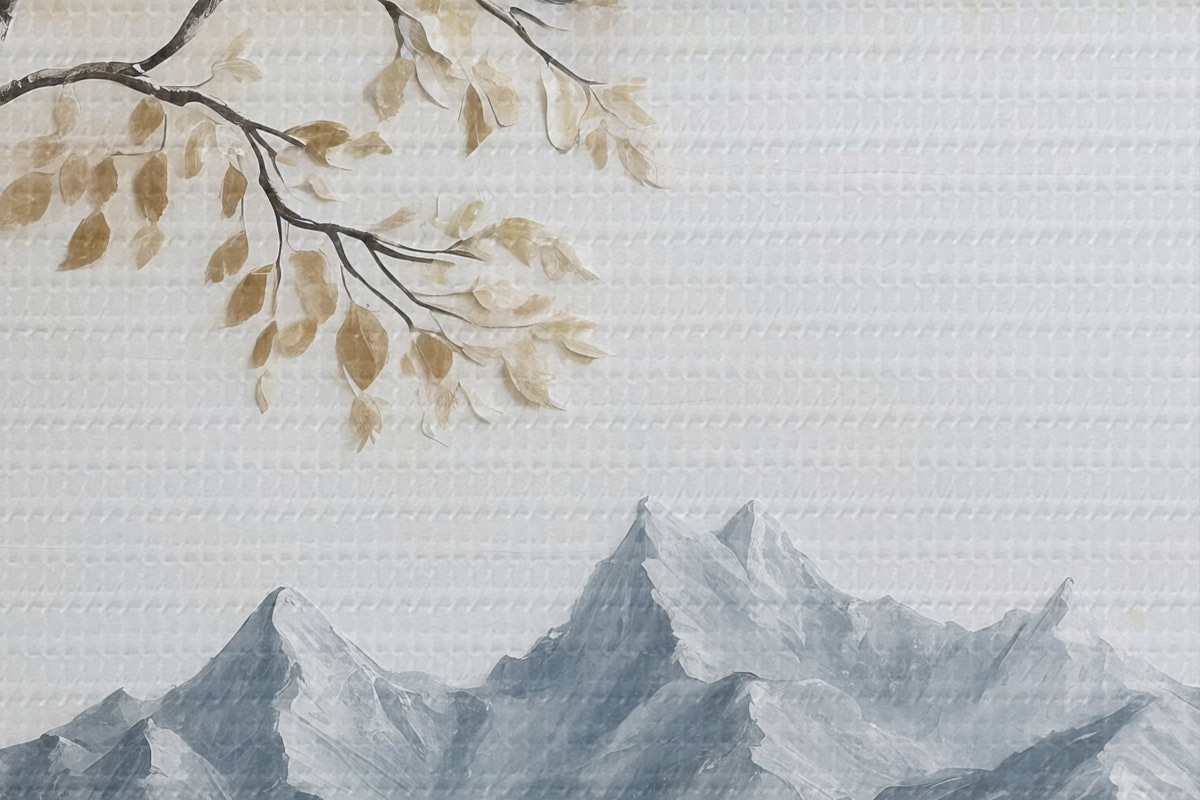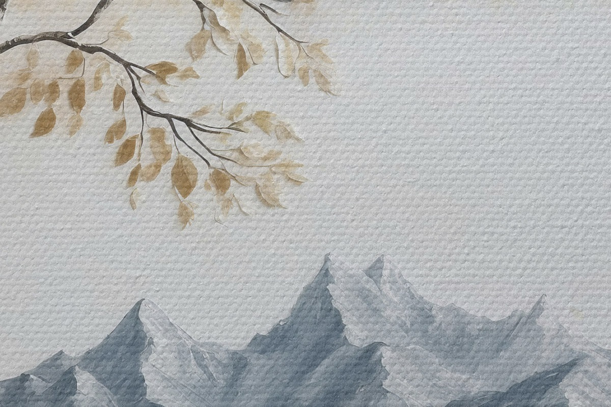 Nuotrauka Medis ant ežero ir snieguotų kalnų fone Nr r44459