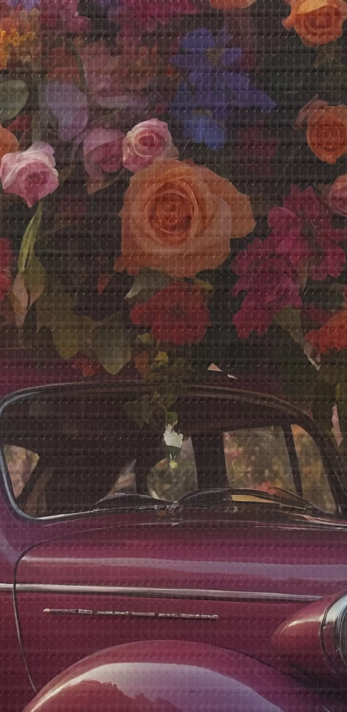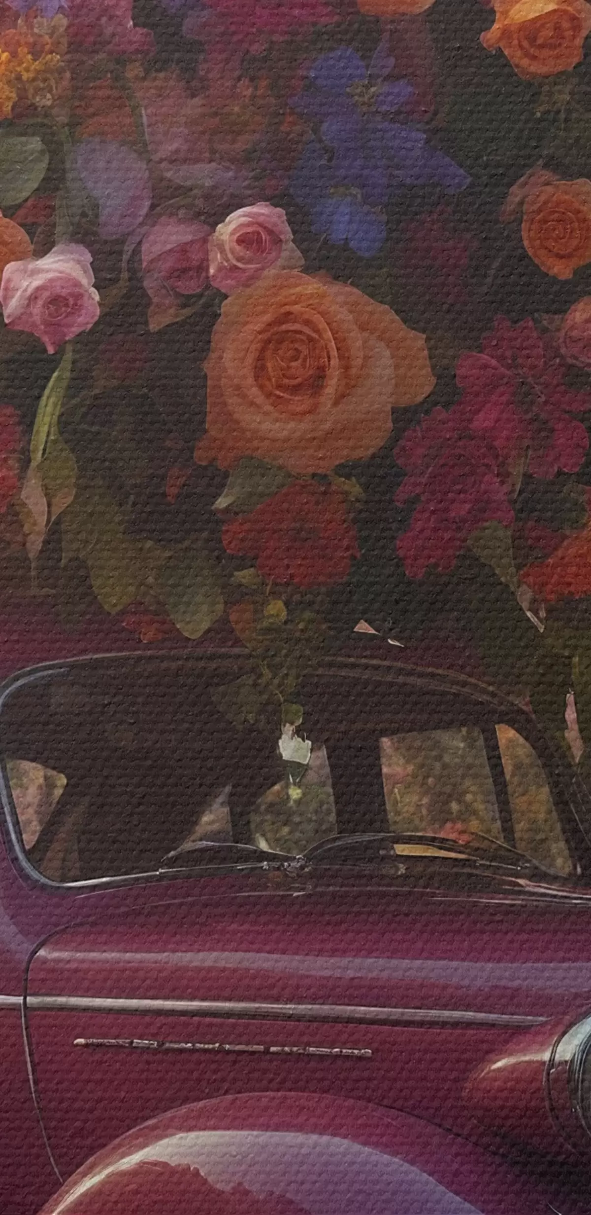 Nuotrauka Retro automobilis ir didžiulė gėlių puokštė Nr r44471