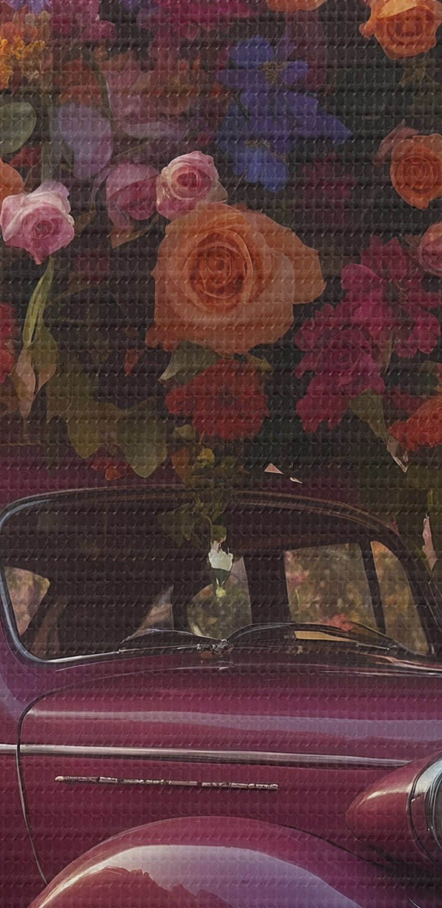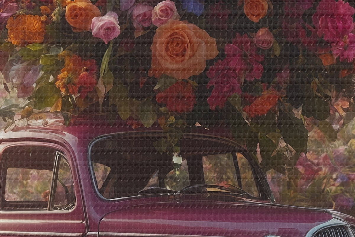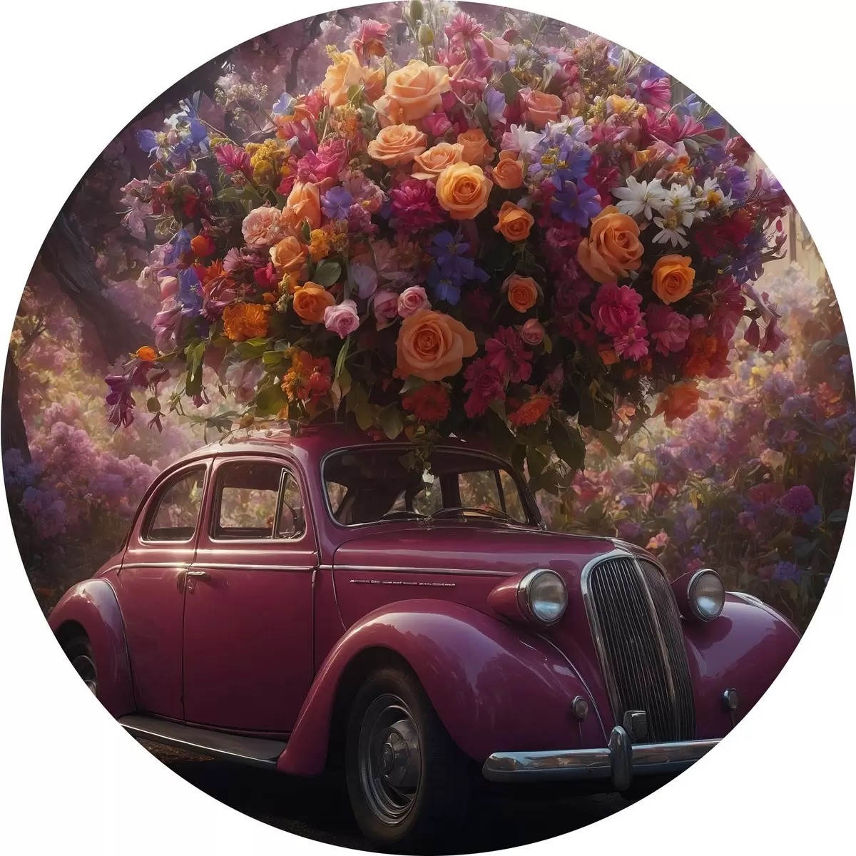 Nuotrauka Retro automobilis ir didžiulė gėlių puokštė Nr r44471