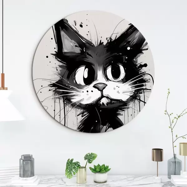 Apvalūs paveikslai Katė eskizo stiliumi su dažų purslais r44483