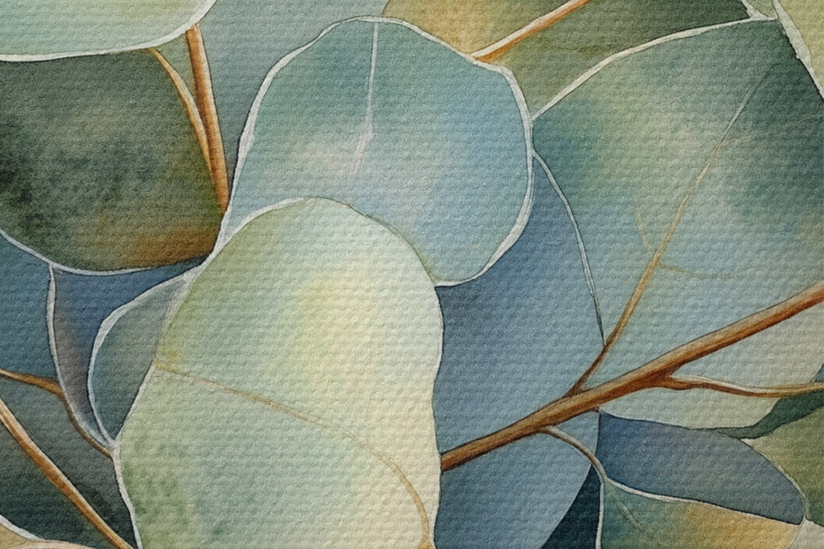 Nuotrauka Eukaliptų lapai, akvarelės stilius, gamta Nr r44502