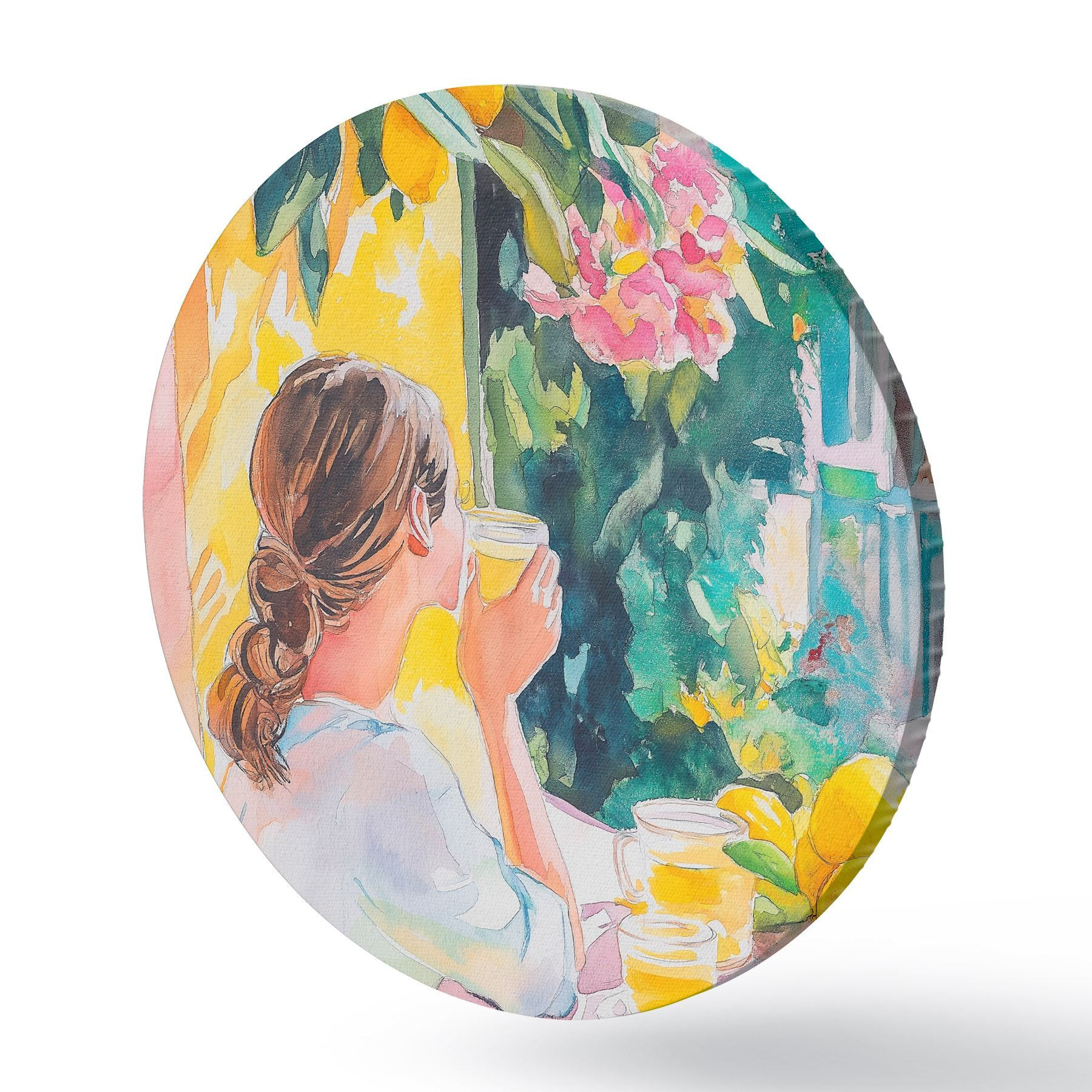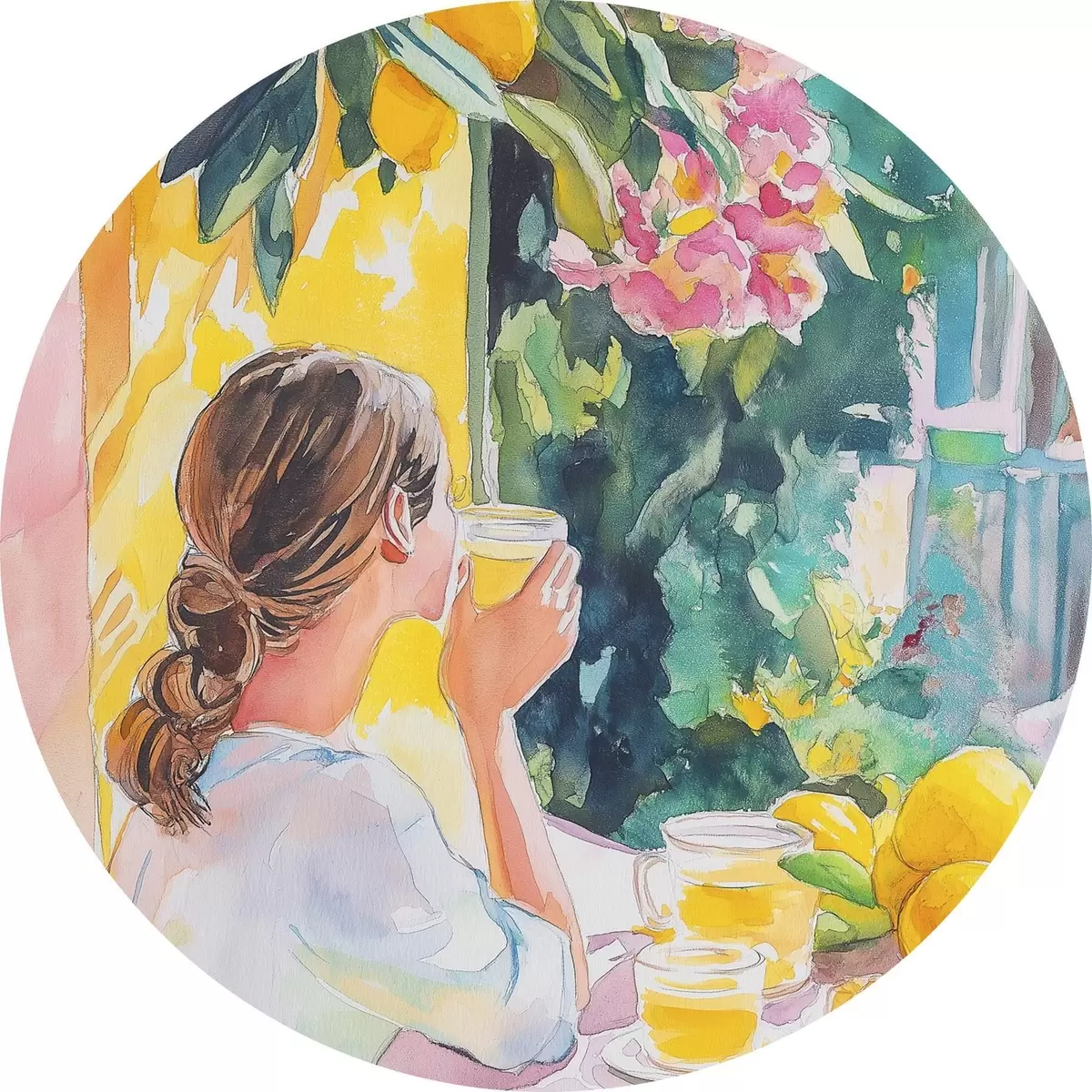 Nuotrauka Vasaros nuotaikos, mergina kavinėje, limoncello, Italija, akvarelės stilius Nr r44505