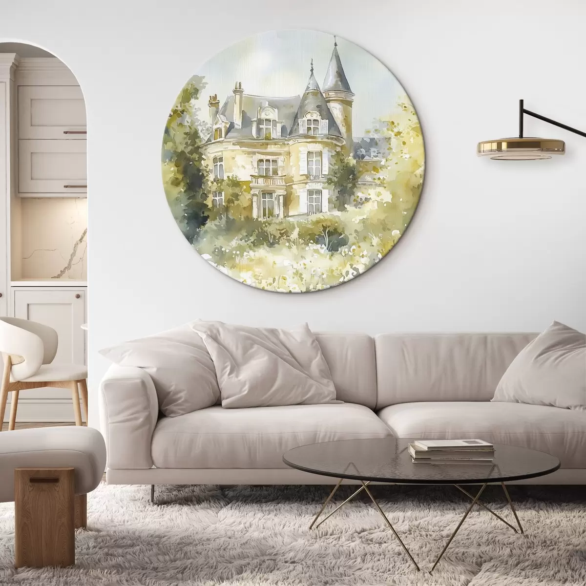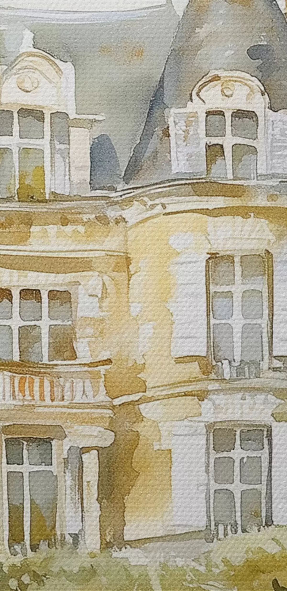 Nuotrauka Gražus pilis su žaluma ir baltomis gėlėmis, akvarelės stilius Nr r44506
