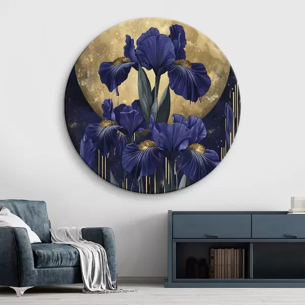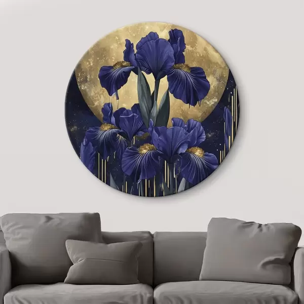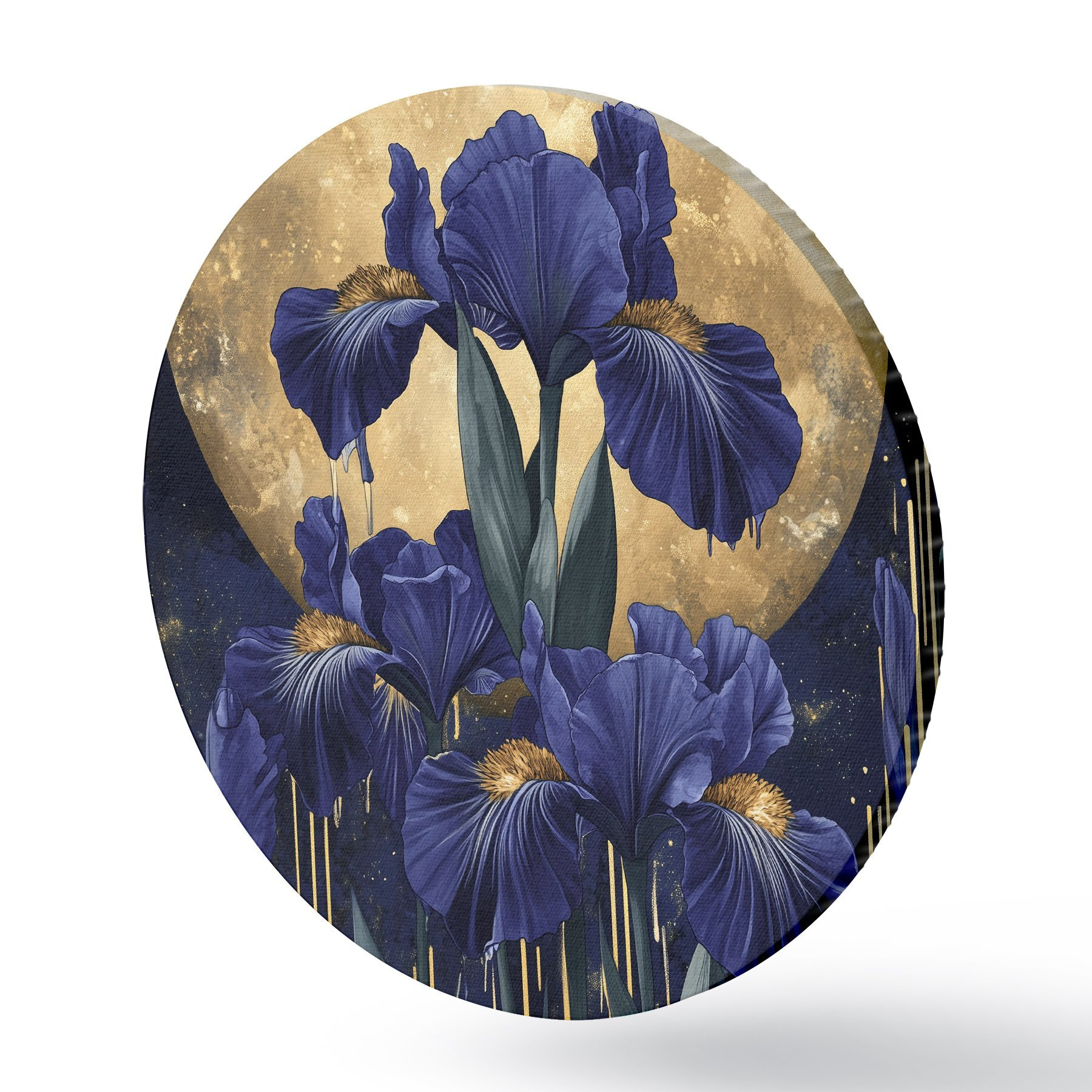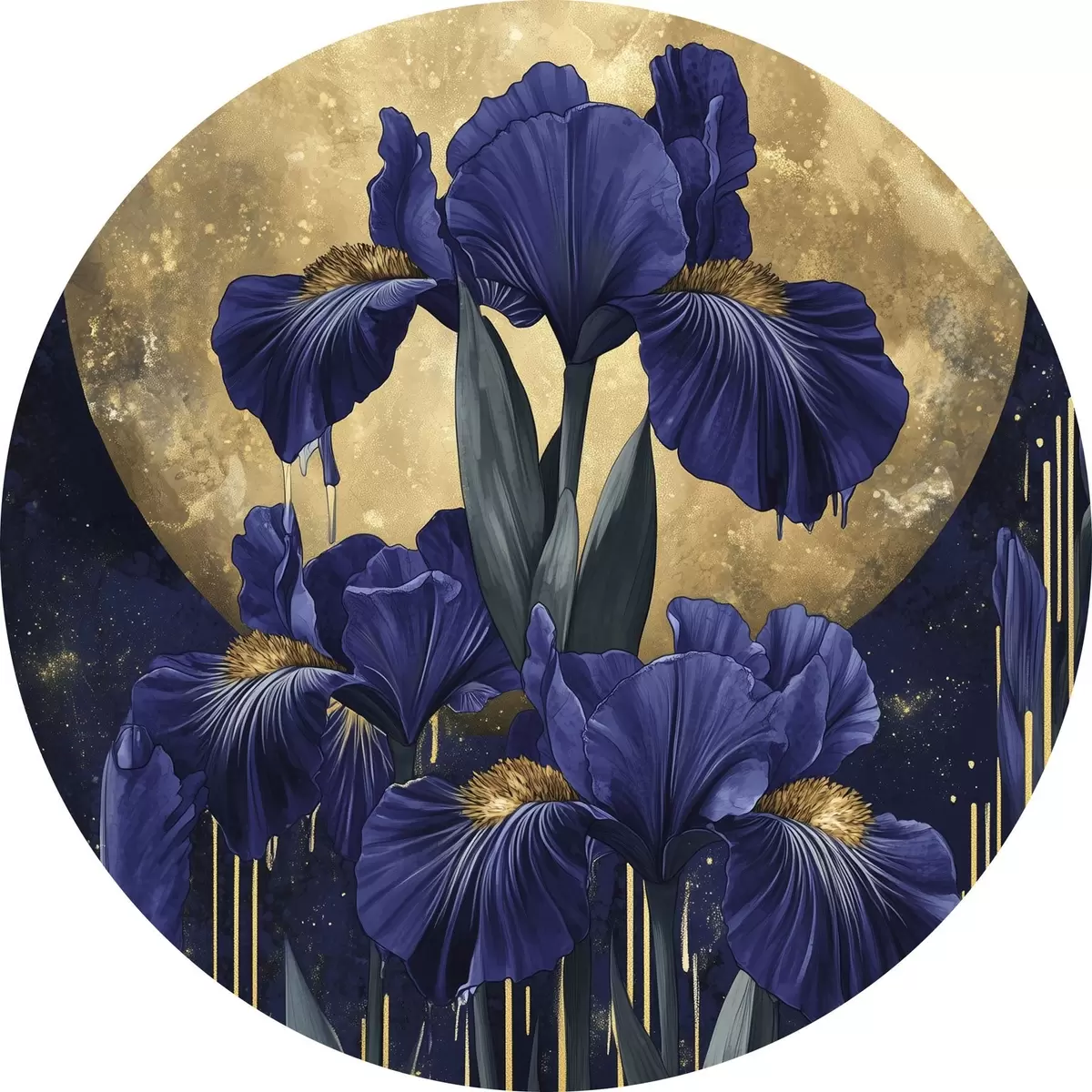 Nuotrauka Irisų gėlės, šviečiantis mėnulis, naktinis dangus, mėlynos spalvos Nr r44510