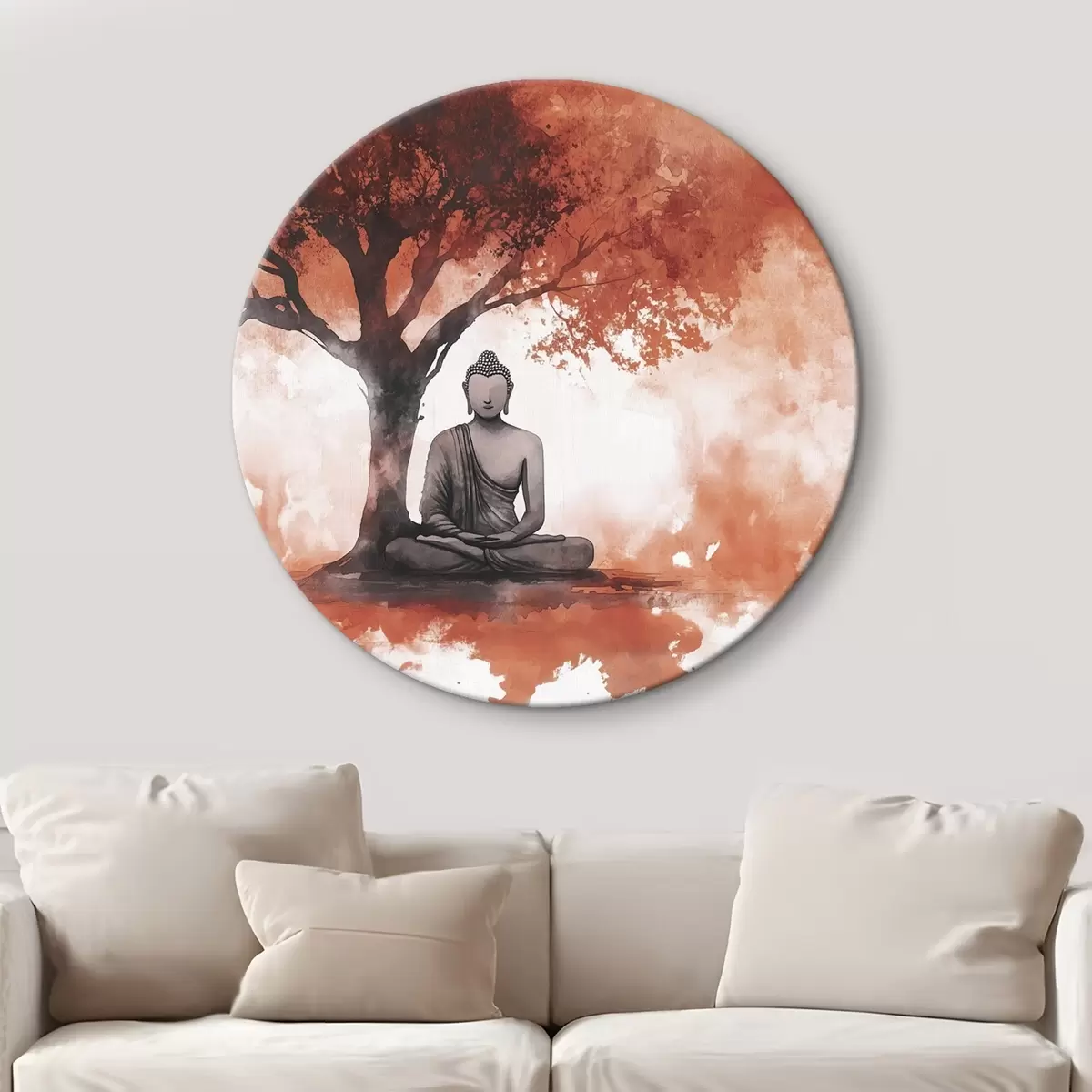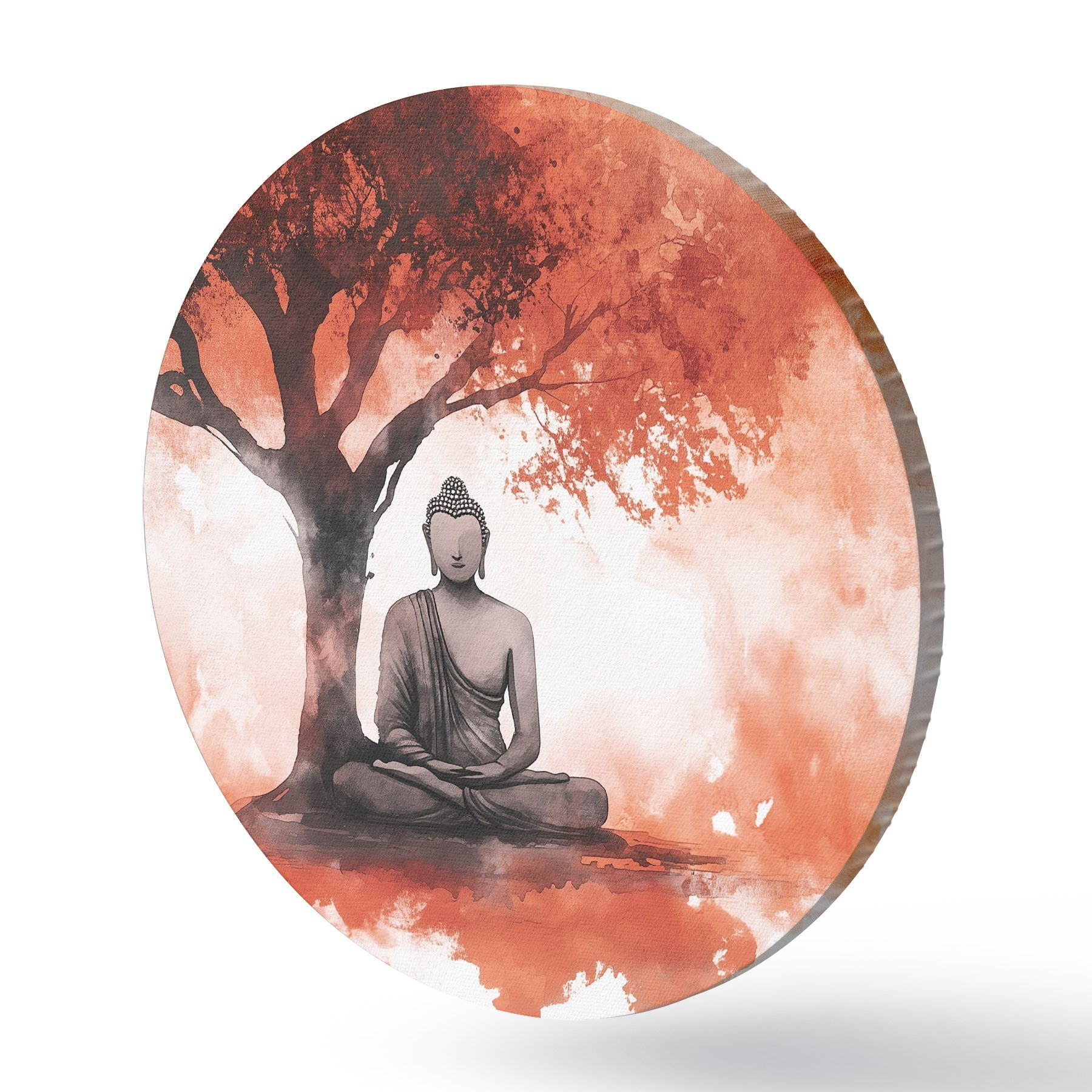 Apvalūs paveikslai Buda sėdi po medžiu, meditacija, dvasinis, oranžinės spalvos r44512