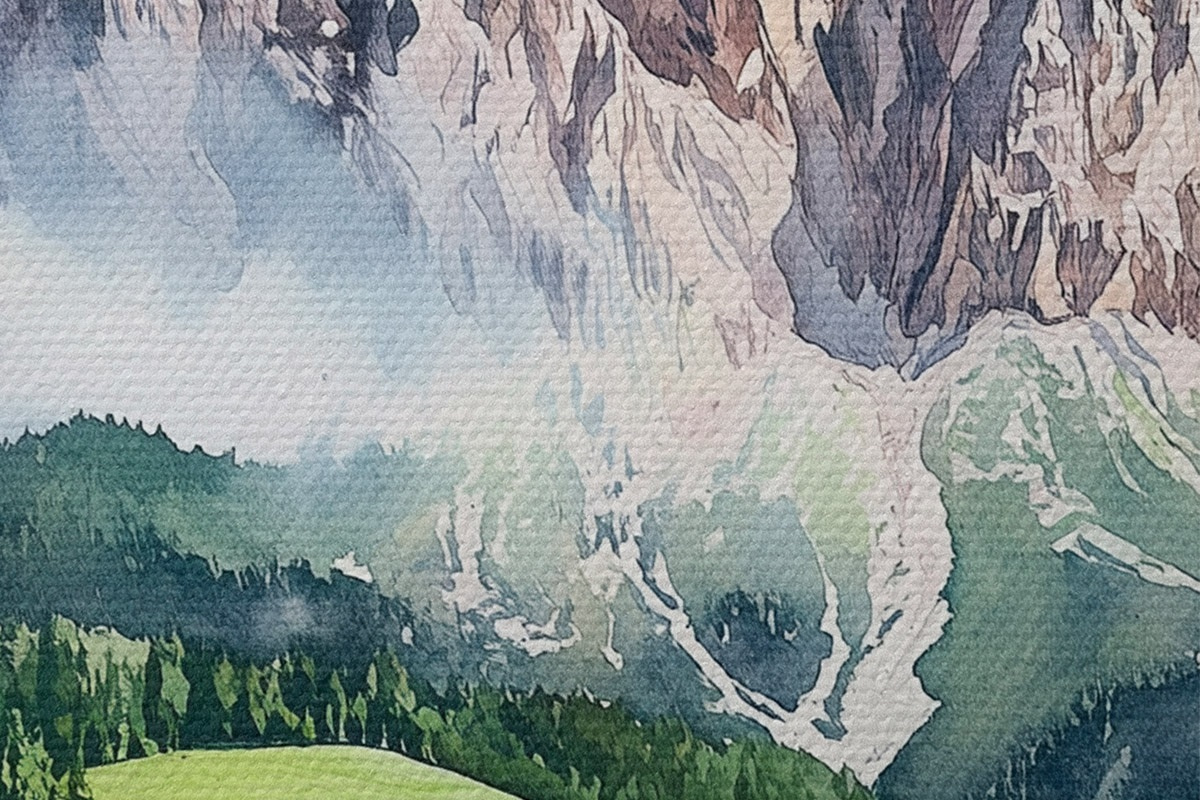 Nuotrauka Dolomitai, Alpių kalnai, Italija, kraštovaizdis, akvarelės stilius Nr r44601