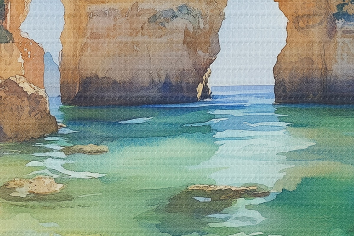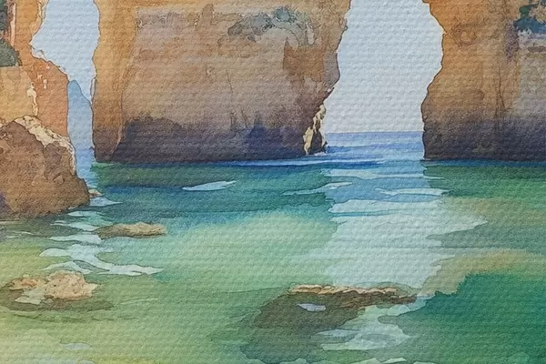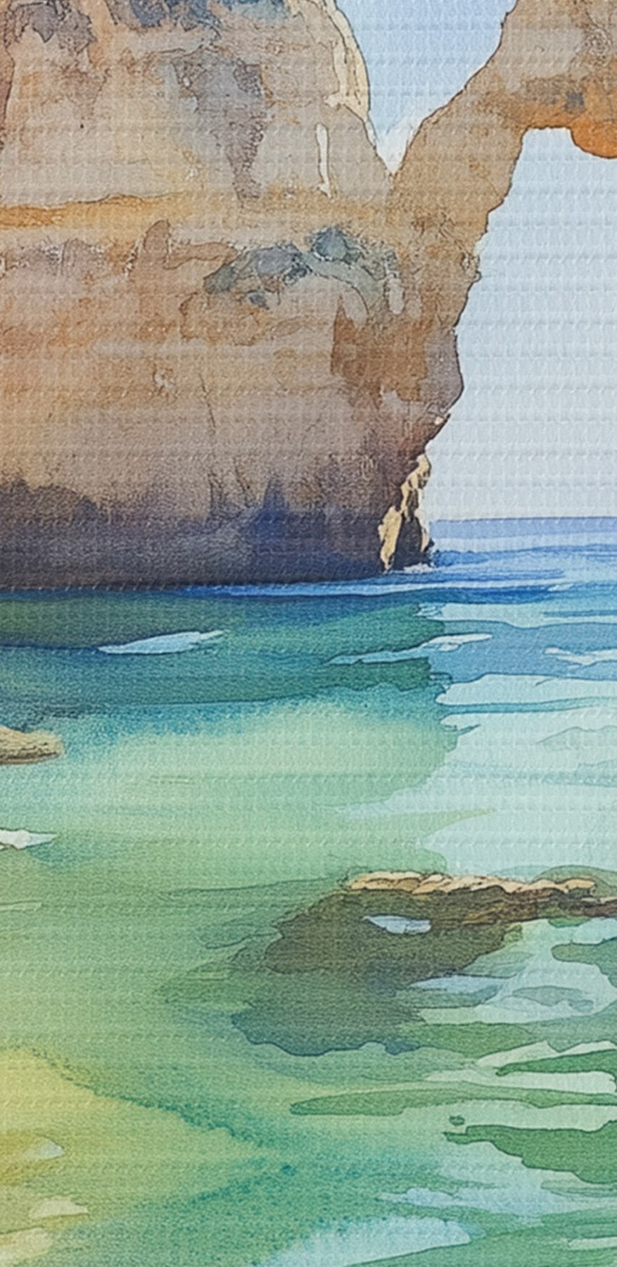 Nuotrauka Vandenyno paplūdimys su uolomis, Portugalija, vasara, akvamarinas Nr r44608