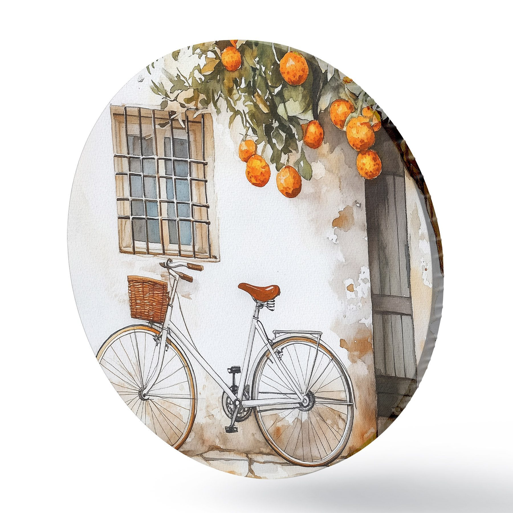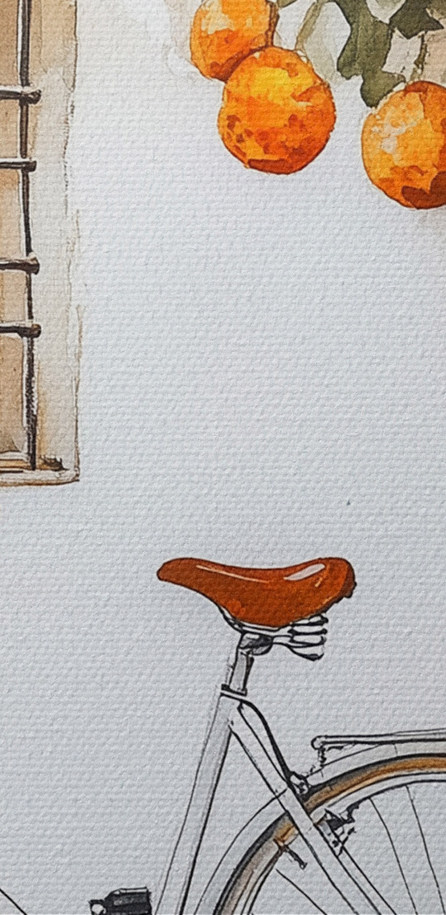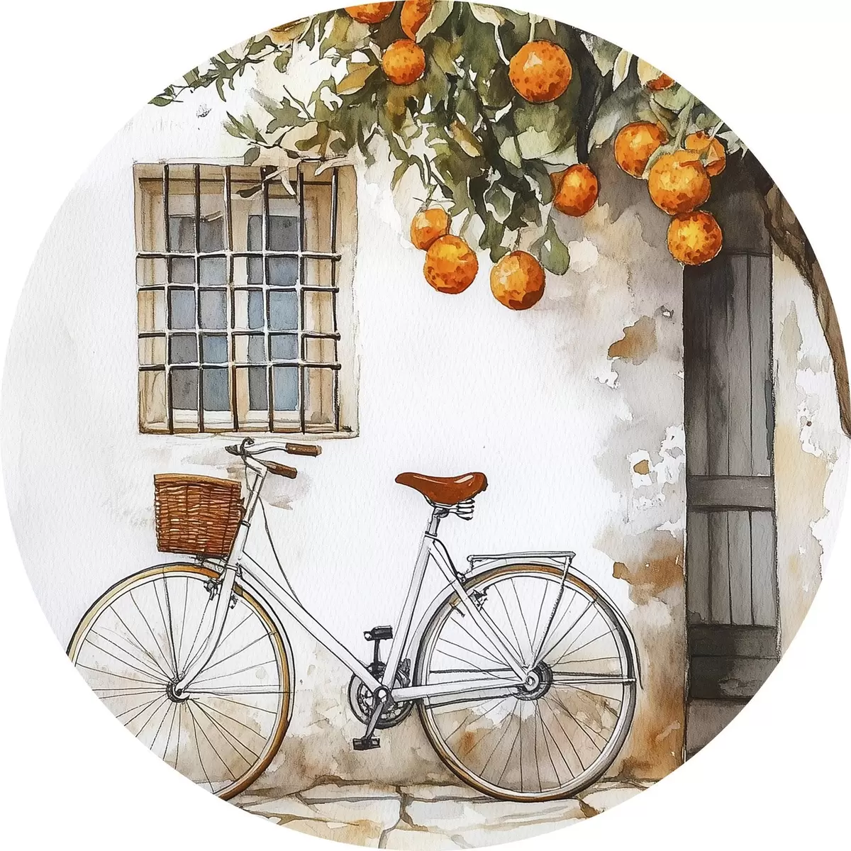 Nuotrauka Viduržemio jūros regiono baltas namas su apelsinmedžiu ir dviračiu Nr r44610