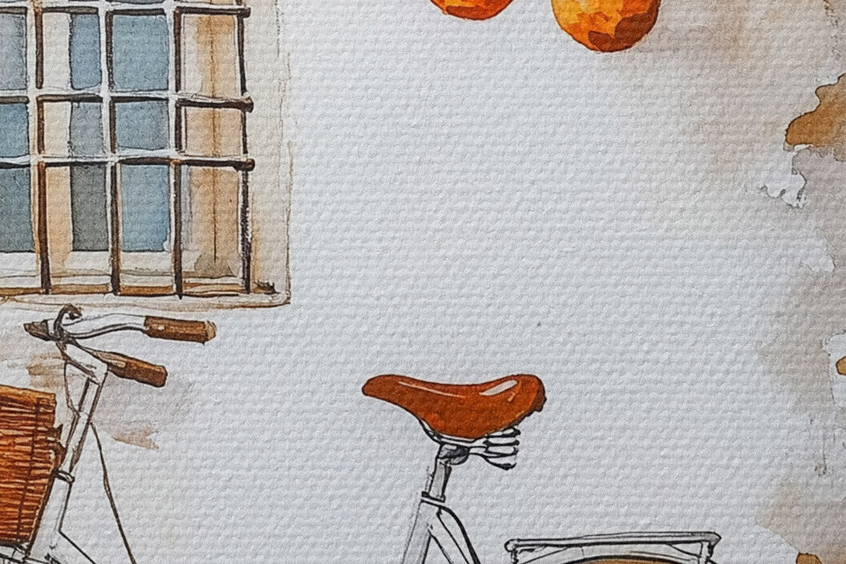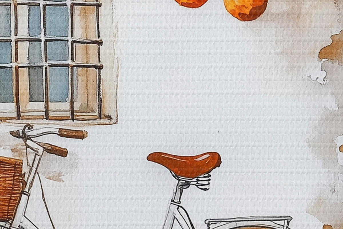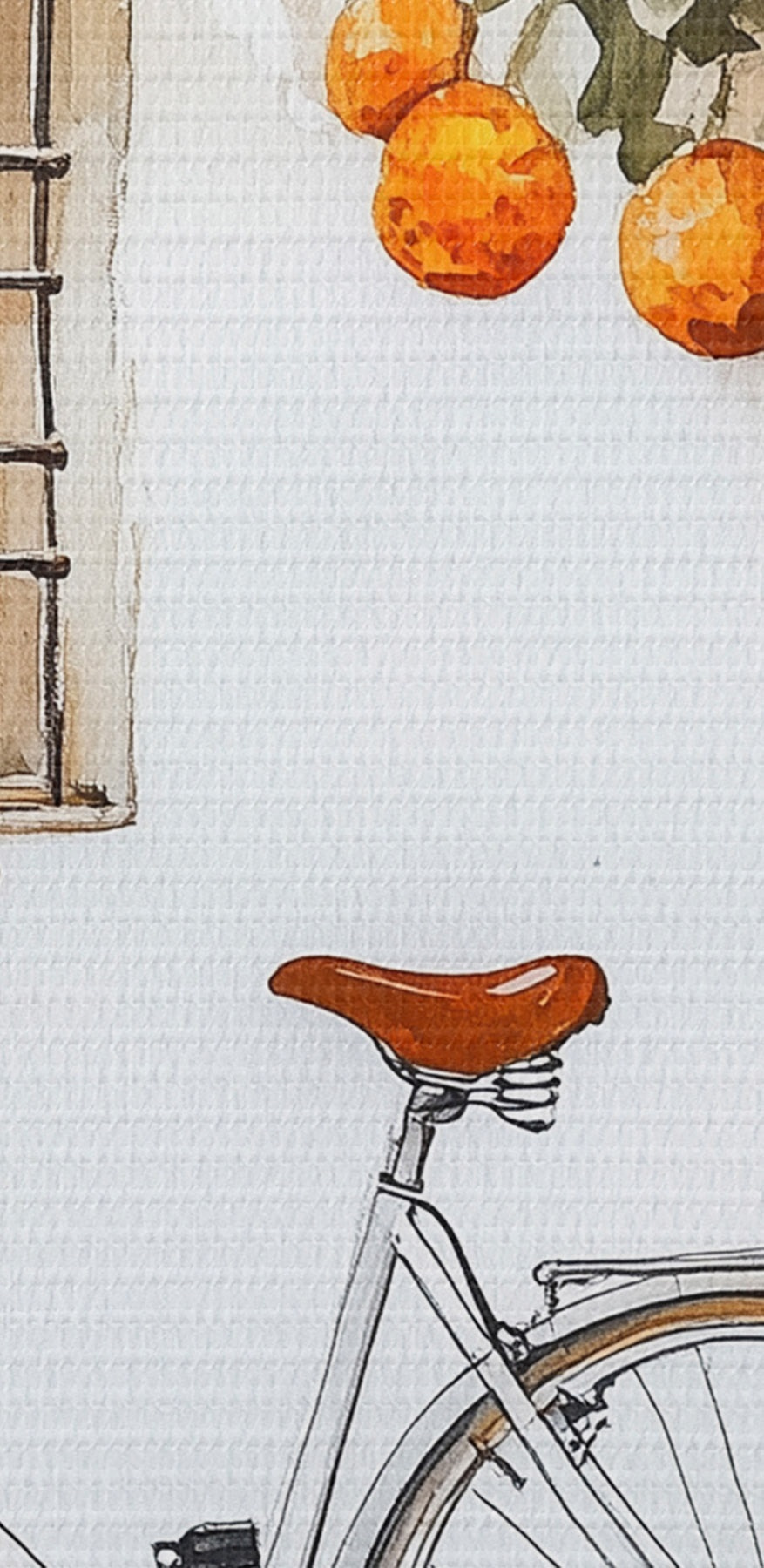 Nuotrauka Viduržemio jūros regiono baltas namas su apelsinmedžiu ir dviračiu Nr r44610