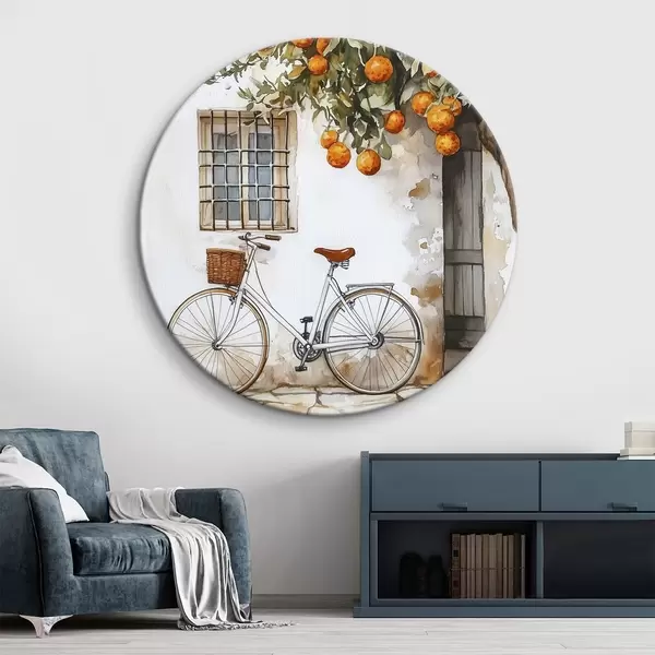 Nuotrauka Viduržemio jūros regiono baltas namas su apelsinmedžiu ir dviračiu Nr r44610