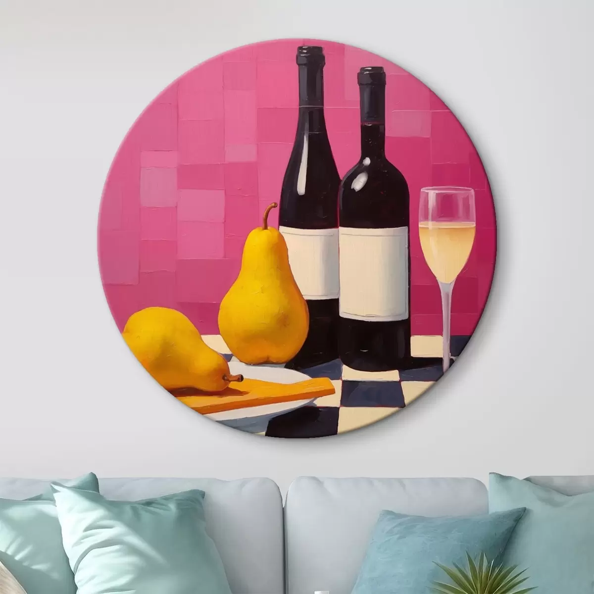 Nuotrauka Kriaušės, taurė vyno ir du buteliai vyno Nr r44683