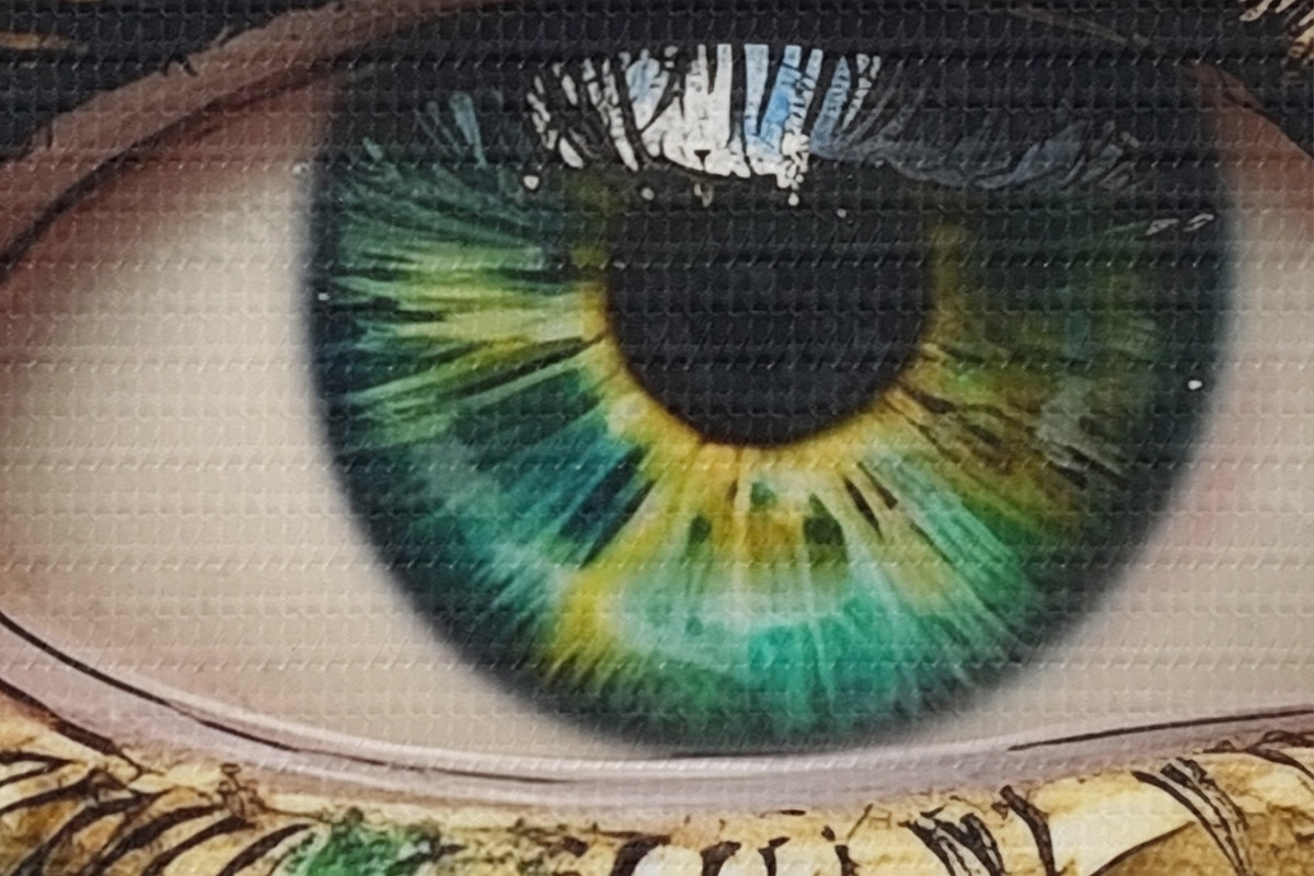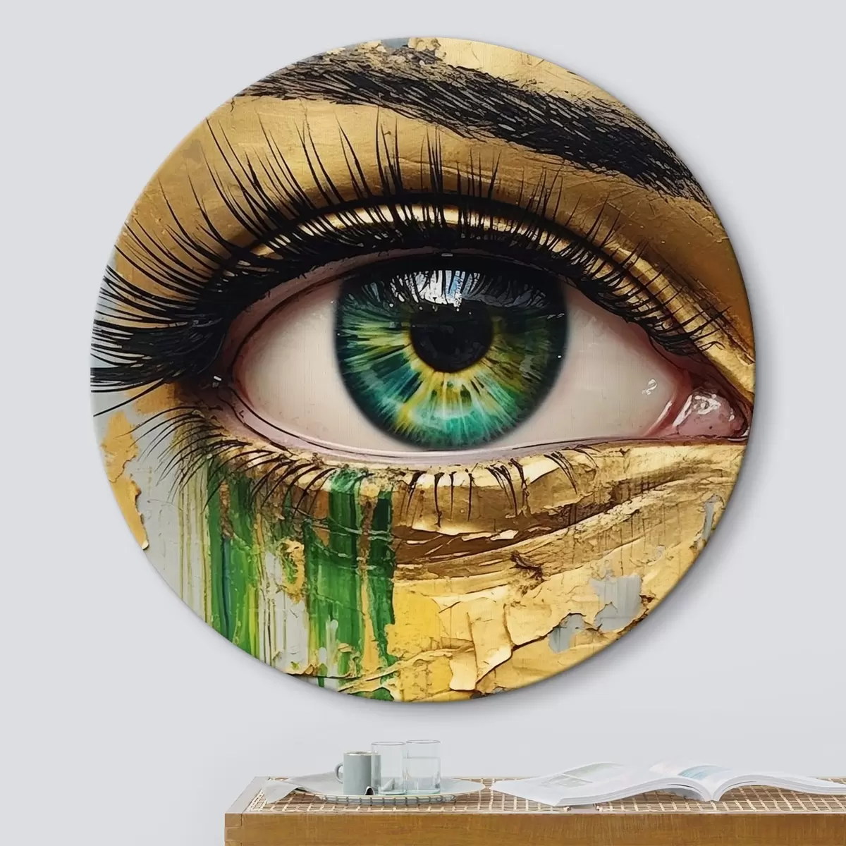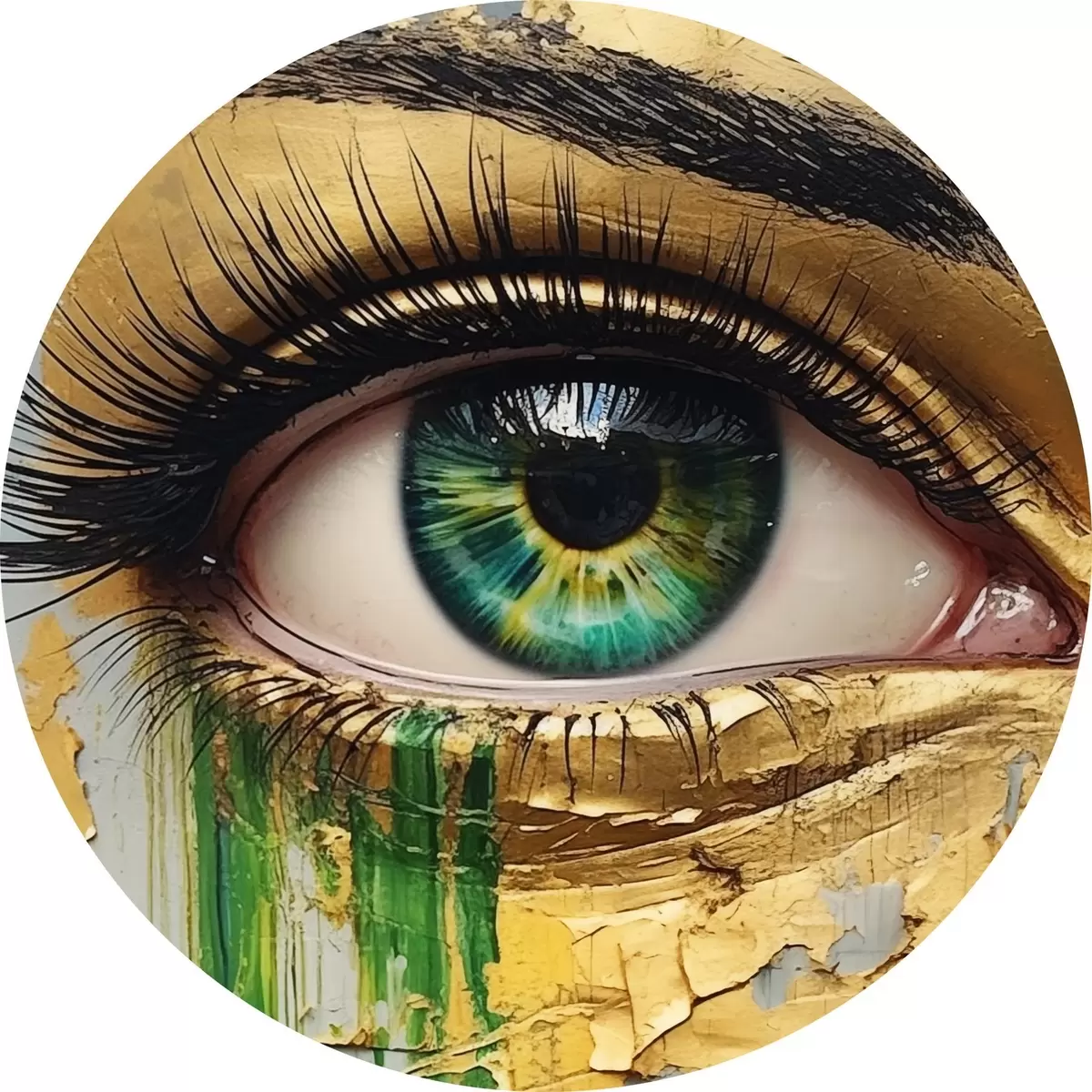 Nuotrauka Žalia akis įtrūkusių dažų fone Nr r44690