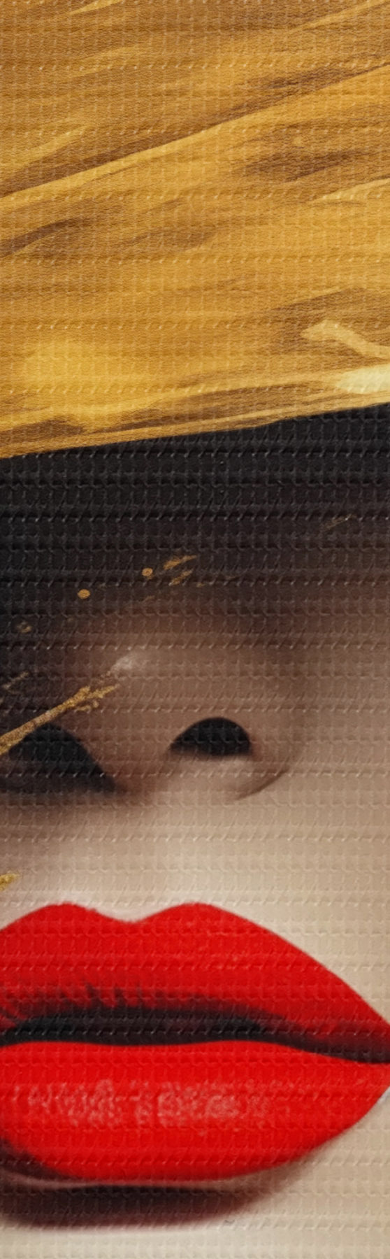 Apvalūs paveikslai Moteriškas veidas su raudonu lūpdažiu po plačia skrybėle r44691