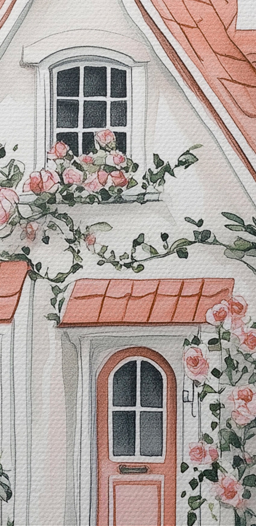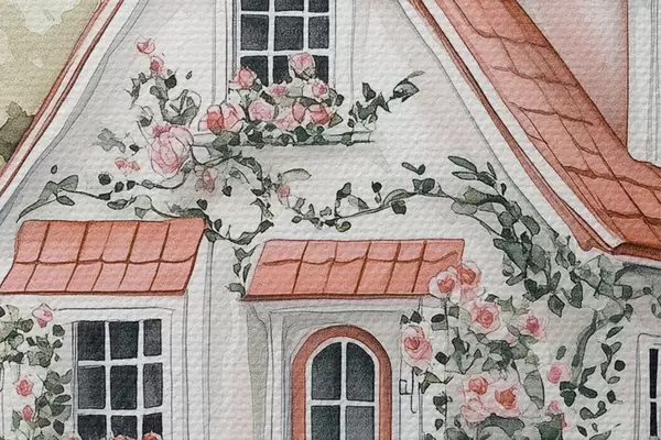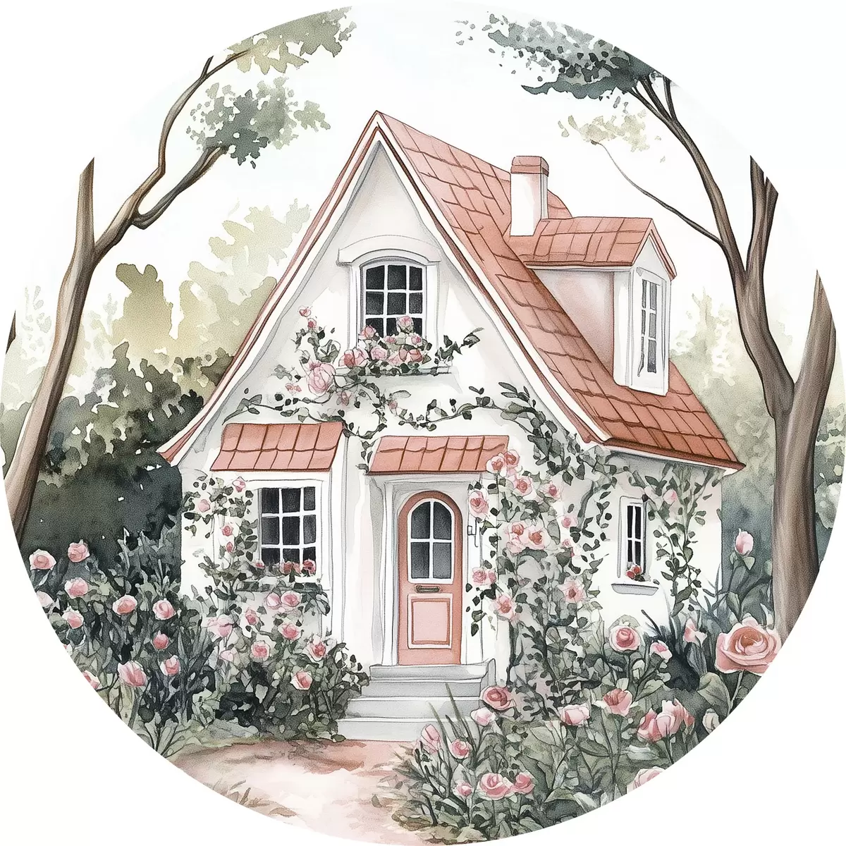 Nuotrauka Baltas namas su rožių sodu miške Nr r44716
