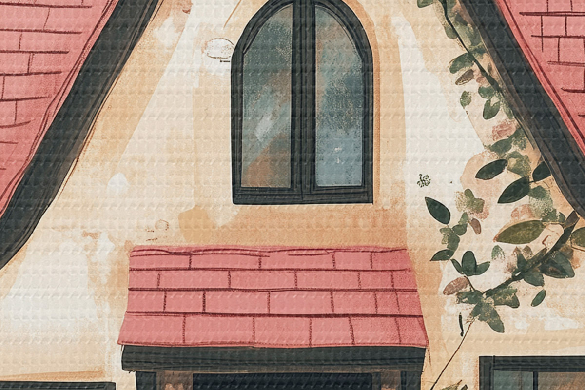 Nuotrauka Pasakų namelis miške, rožės, pastelinis stilius Nr r44718