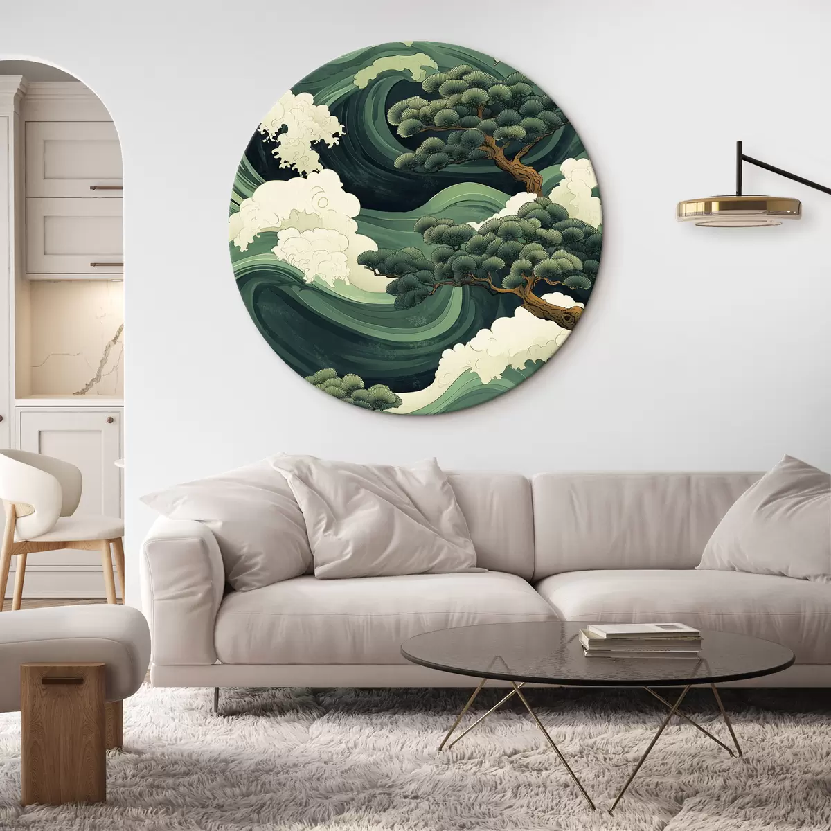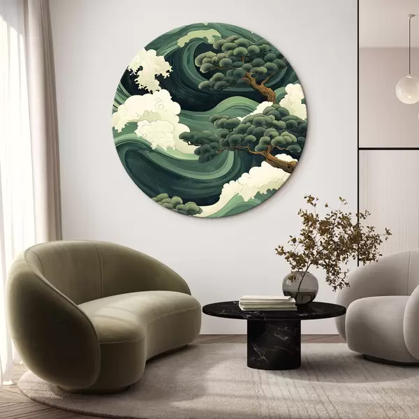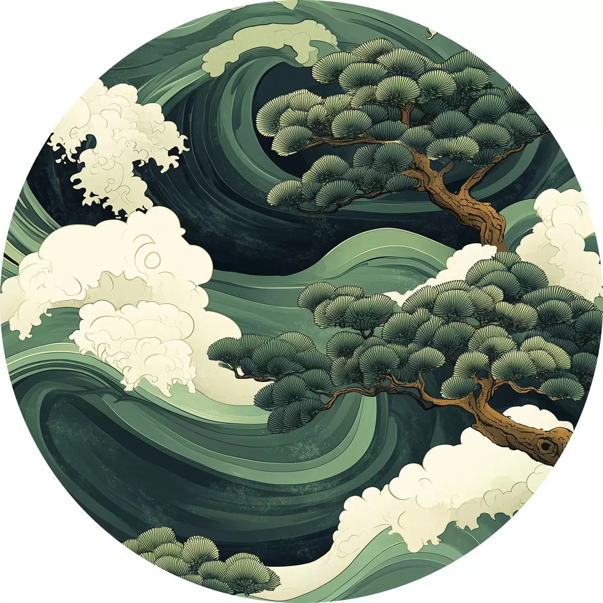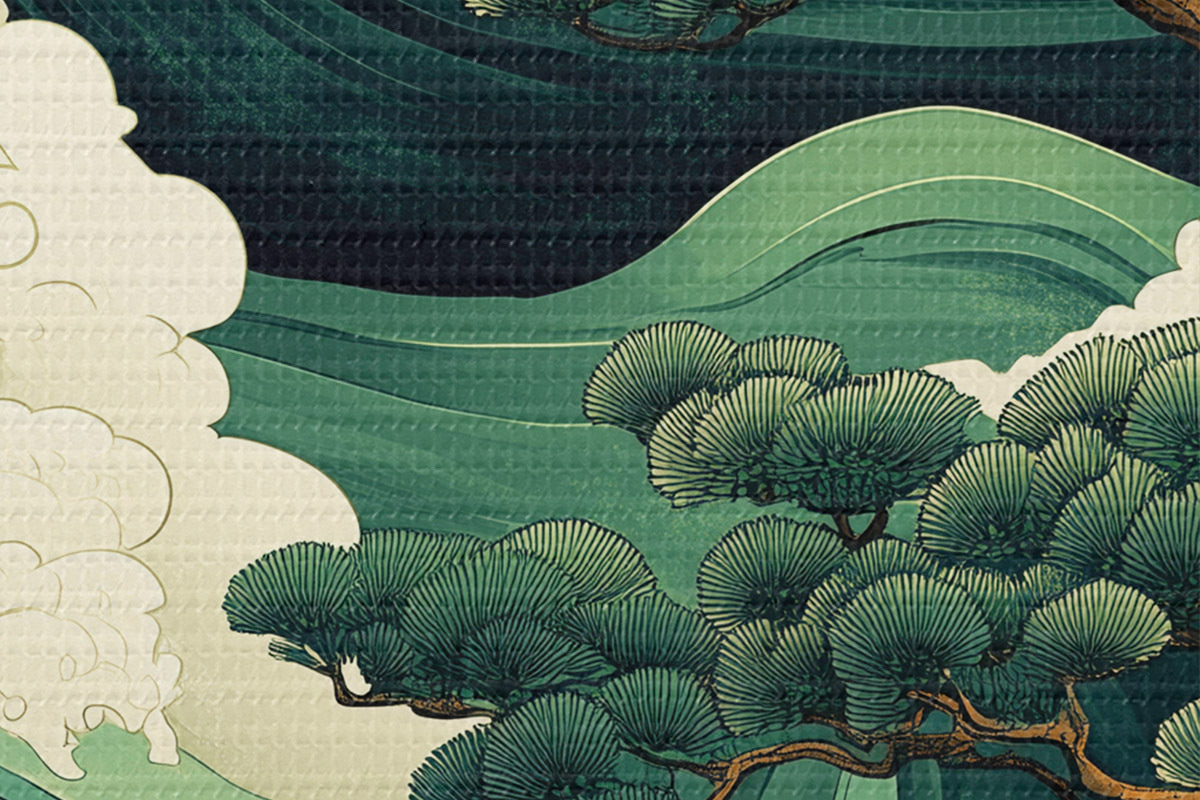 Nuotrauka Kiniško stiliaus piešinys su jūros bangomis ir pušimis Nr r44719