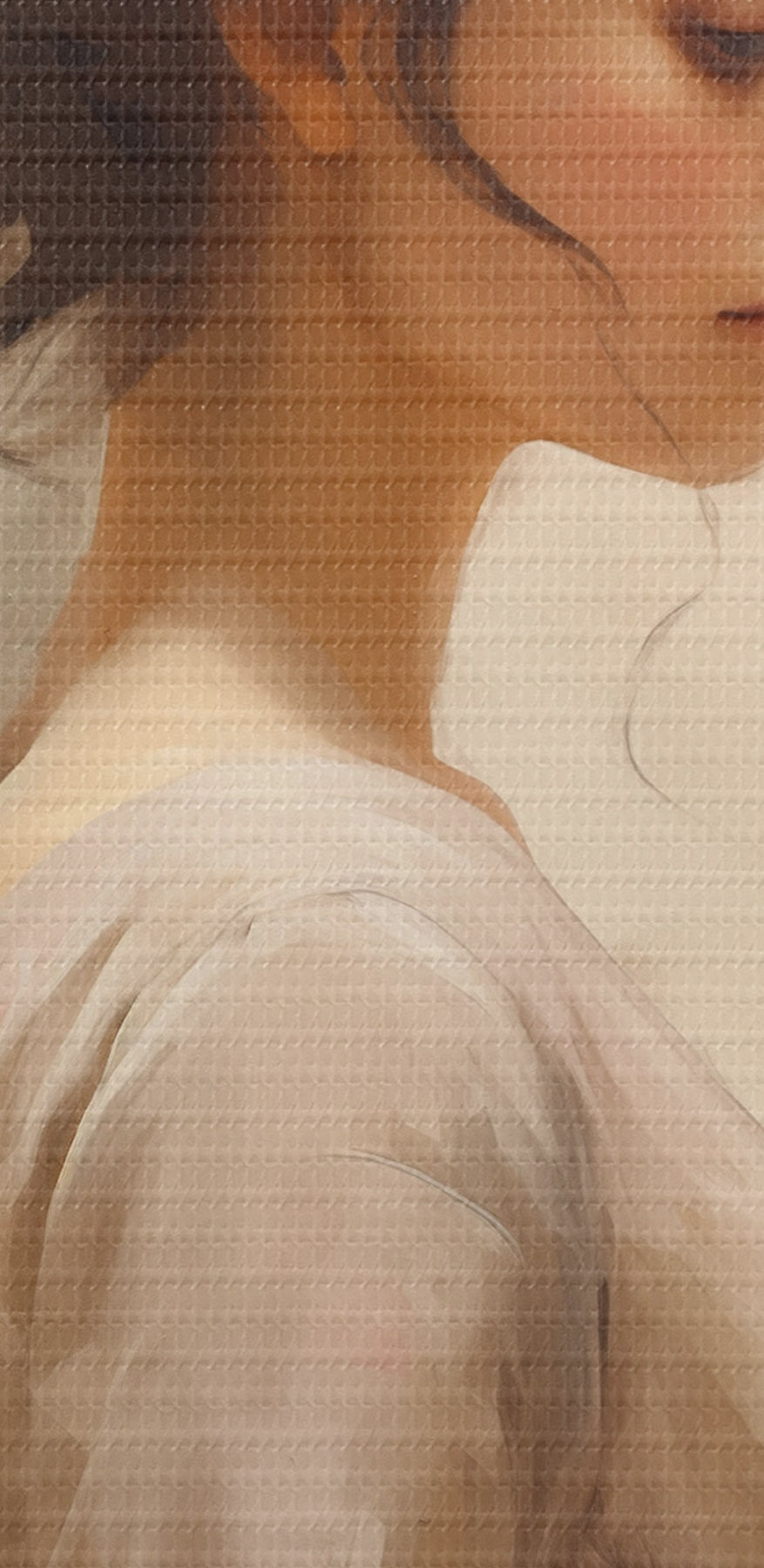 Galima užsakyti trijų rūšių medžiagą: "Economic Canvas" - tanki ir patvari medžiaga skaitmeninei spaudai, identiška dailininko drobės medžiagai, vandeniui atsparus paviršius, tikroviškas detalių atkūrimas, vidutinio grūdėtumo medžiaga. Premium Canvas - tekstūra primena dailininko drobę (susipynę smulkūs siūlai). Minkštas, detalus vaizdo atkūrimas ant matinio paviršiaus. Eco-Premium - aukštos kokybės 100 % medvilninis audinys. Dėl natūralių medvilnės pluoštų medžiaga yra patvari ir atspari nusidėvėjimui. Puikus spalvų atkūrimas ir detalumas.