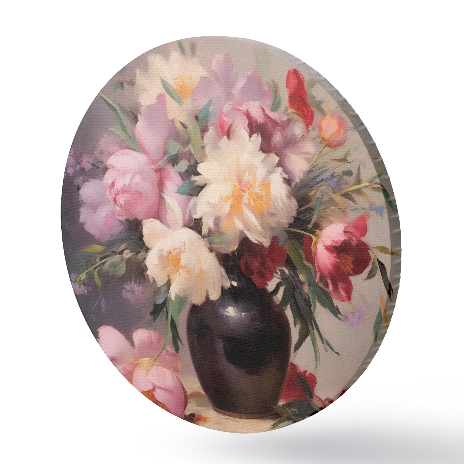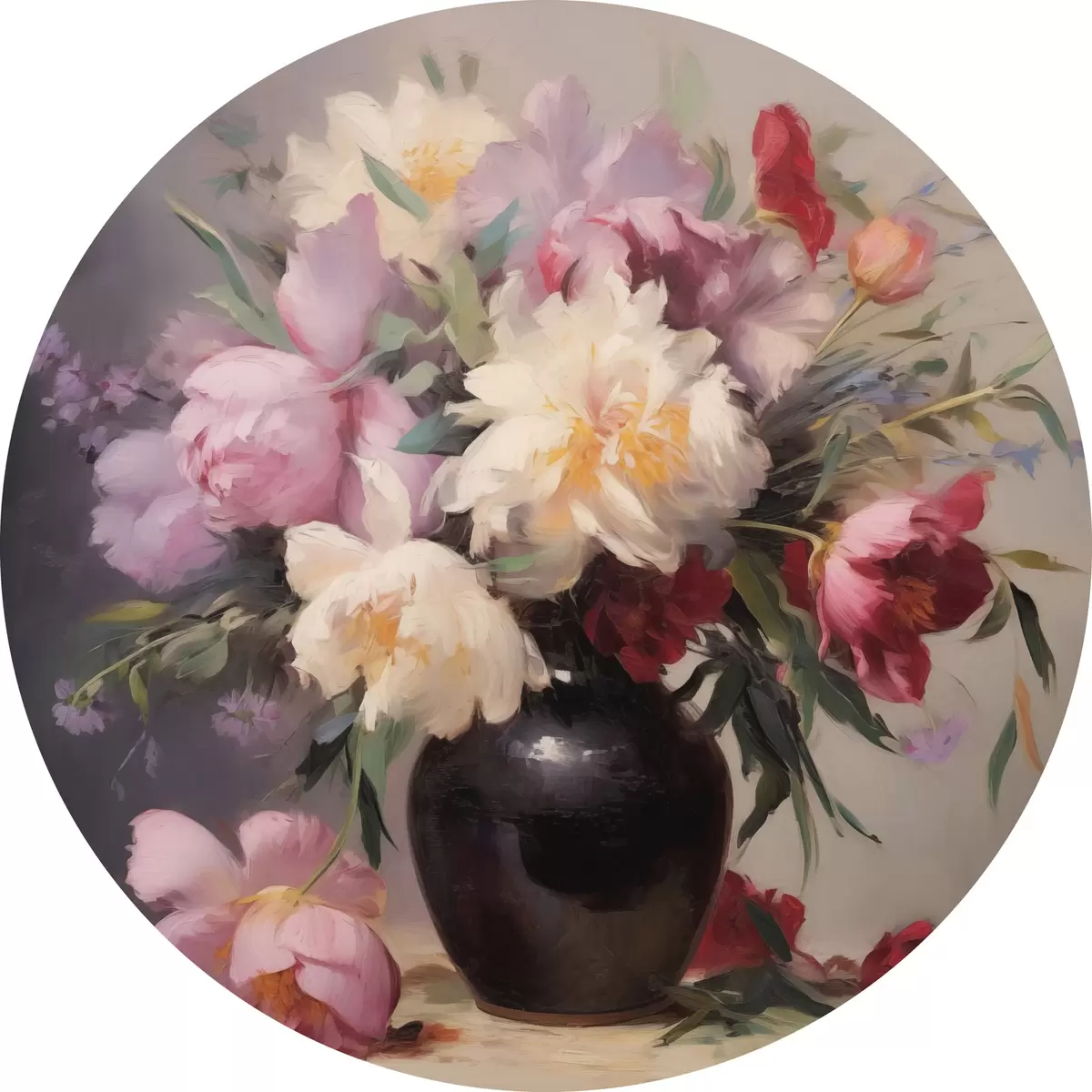 Apvalūs paveikslai Bijūnų puokštė tamsioje vazoje r44769