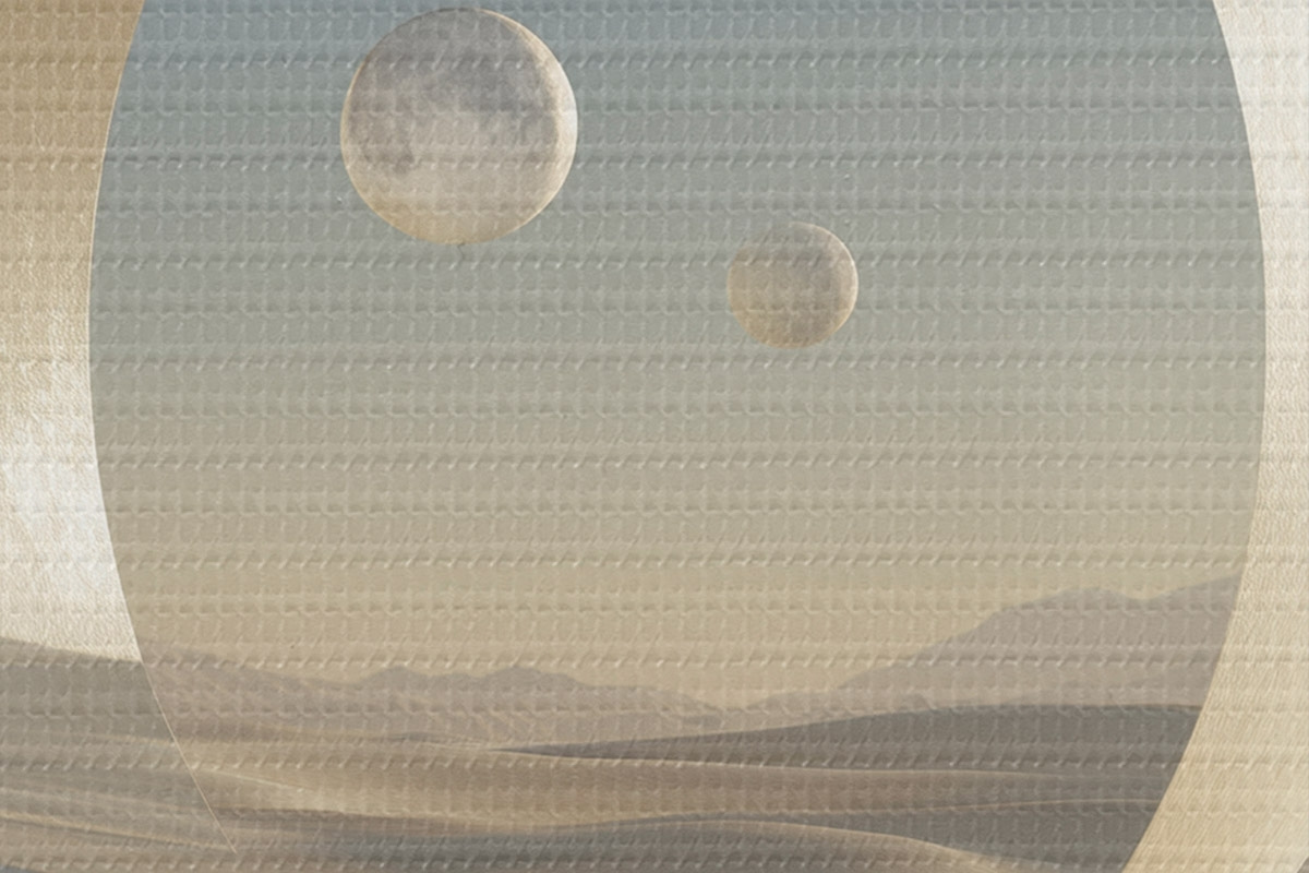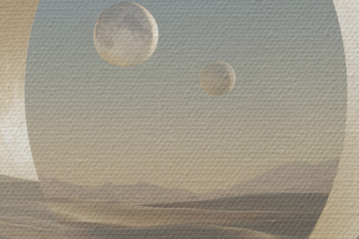 Nuotrauka Futuristinis kraštovaizdis su kopomis ir planetomis Nr r44791