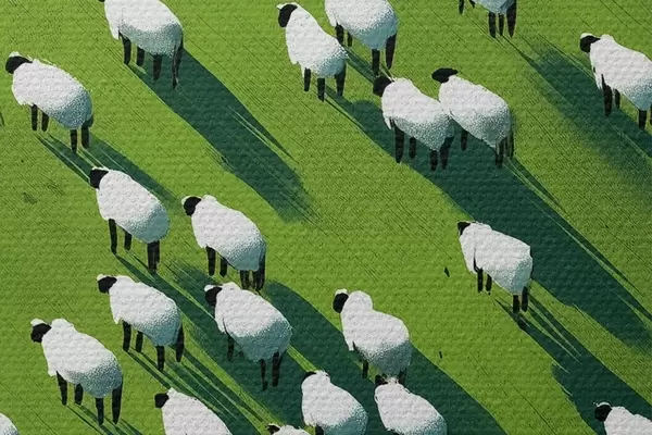 Nuotrauka Žalias laukas su avių banda, abstrakcija, vaizdas iš oro Nr r44793