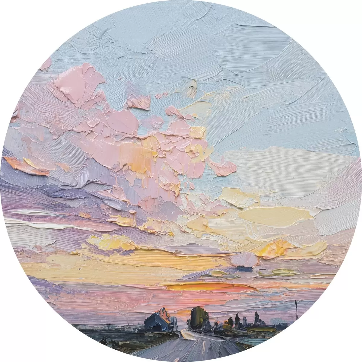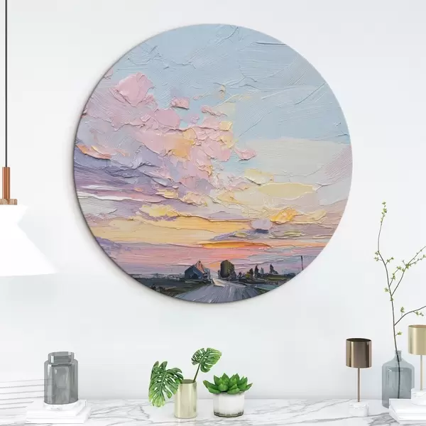 Nuotrauka Kaimo kraštovaizdžiai aliejinio stiliaus piešinys, saulėlydis Nr r44794