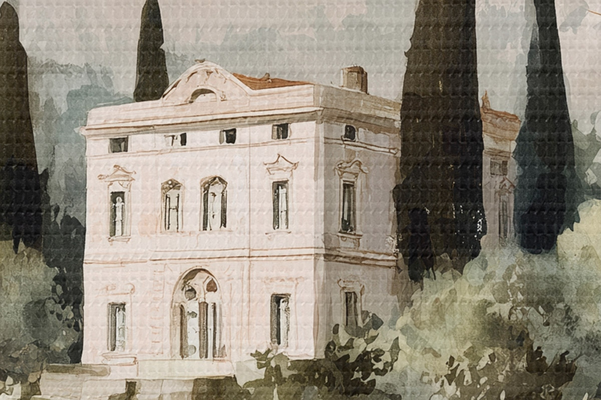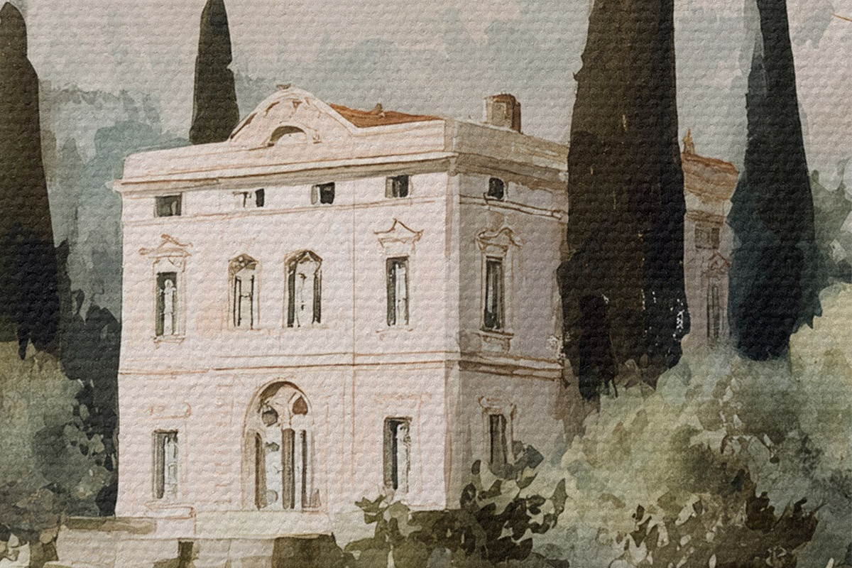 Nuotrauka Viduržemio jūros kaimas su baltu namu sodo apsuptyje Nr r44796