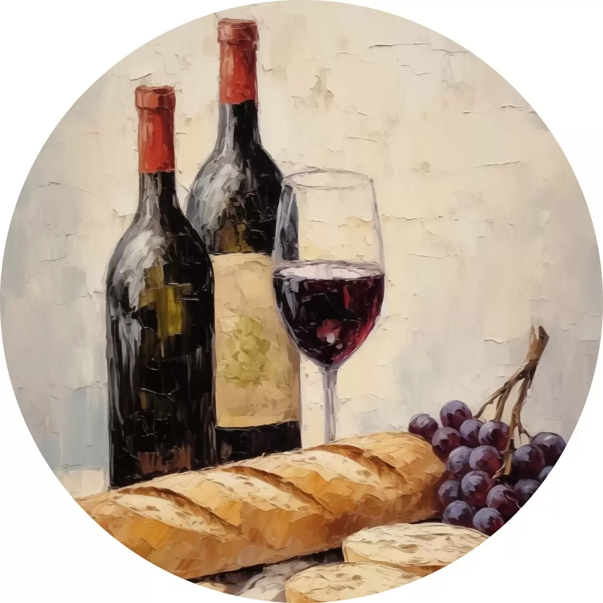 Nuotrauka Vynas, bagetė ir vynuogės Nr r44815