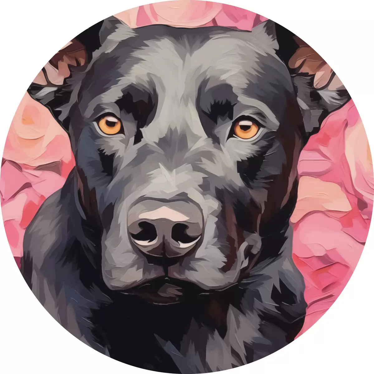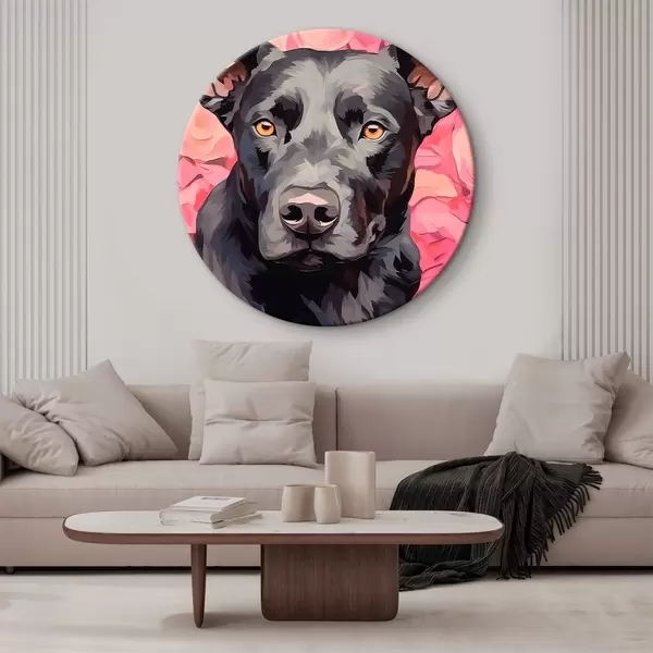 Nuotrauka Juodas šuo abstrakčių rožių fone Nr r44817