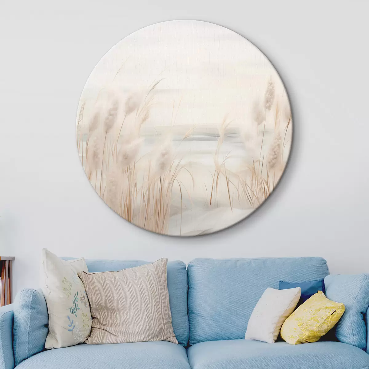 Nuotrauka Smėlio spalvos nendrės pirmame plane, su sėklų galvutėmis, minkštos ir švelnios, neryškus fonas ir šviesus dangus Nr r44851