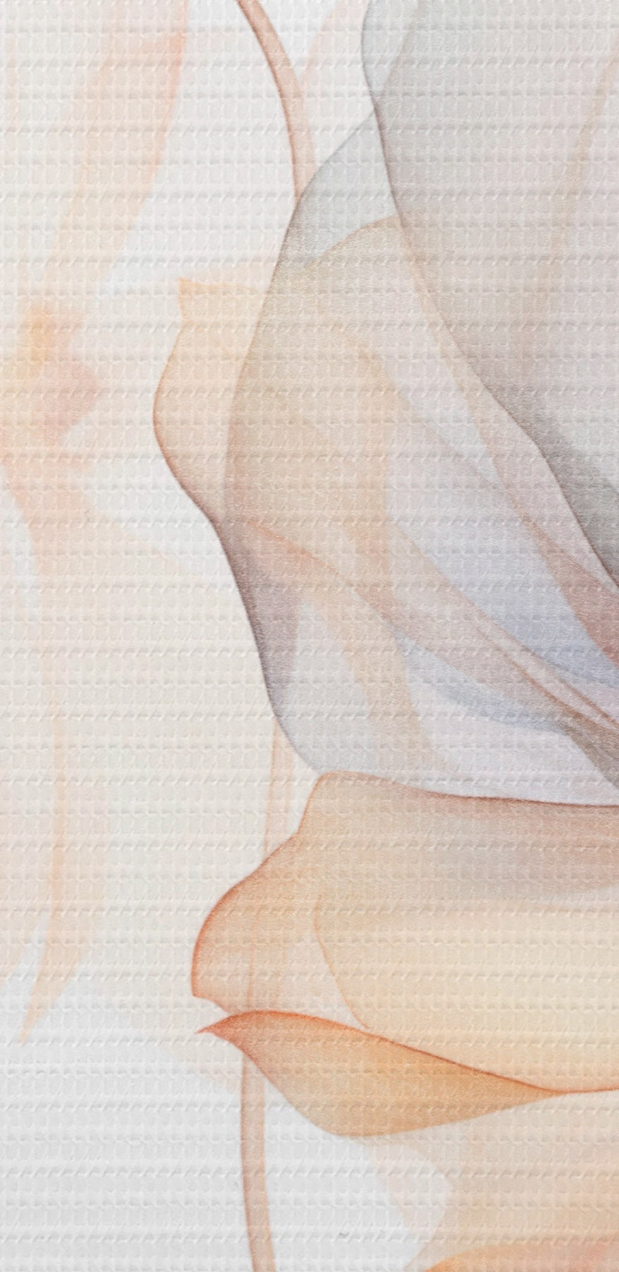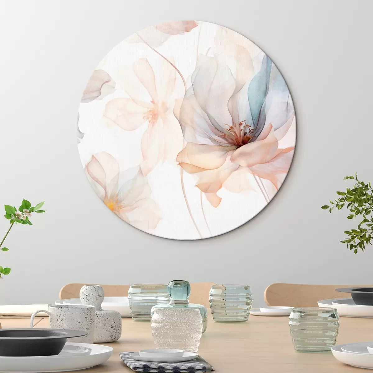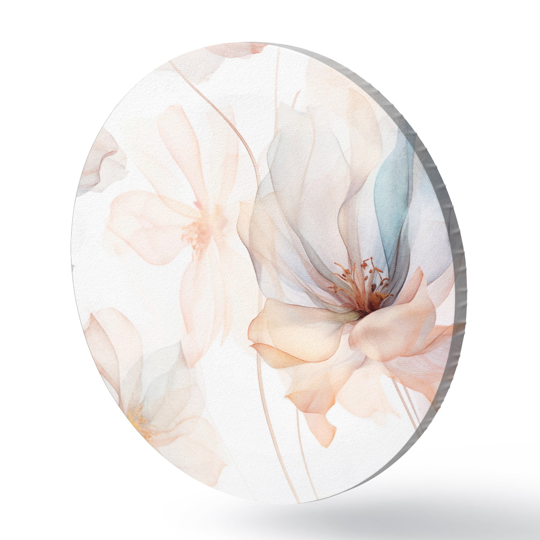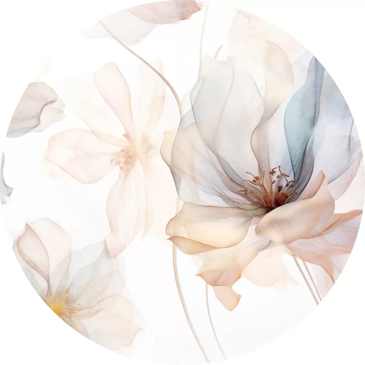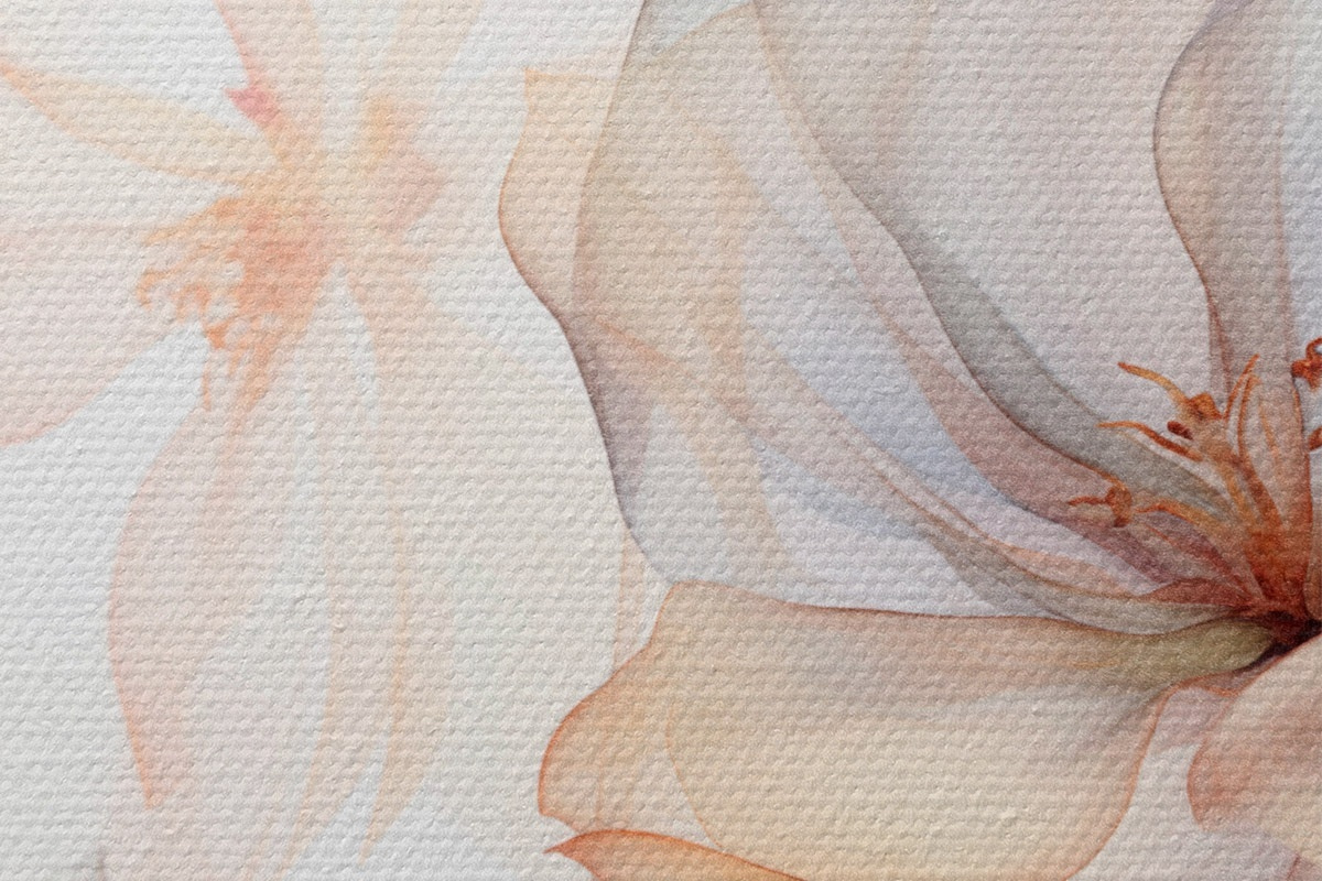 Nuotrauka Permatomos tekstūruotos pastelinių spalvų gėlės, subtilūs žiedlapiai, subtilios linijos baltame fone Nr r44855